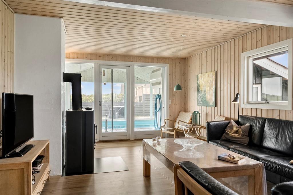 As you step into this bright and inviting holiday home, you’re greeted by a warm atmosphere that instantly makes you feel at home. The living room is furnished with comfortable seating where you can relax with a good book by the wood-burning stove or enjoy a cosy evening in front of the TV. The kitchen is well-equipped and openly connected to the living area, making it easy to prepare delicious meals while still being part of the social setting. The spacious bedrooms ensure a restful night’s sleep after a day full of adventures. The highlight indoors is undoubtedly the lovely pool area, where both children and adults can splash around and enjoy hours of fun regardless of the weather outside.