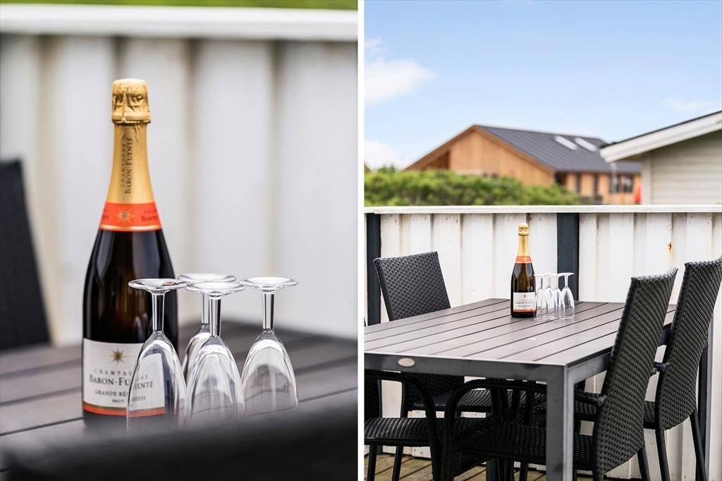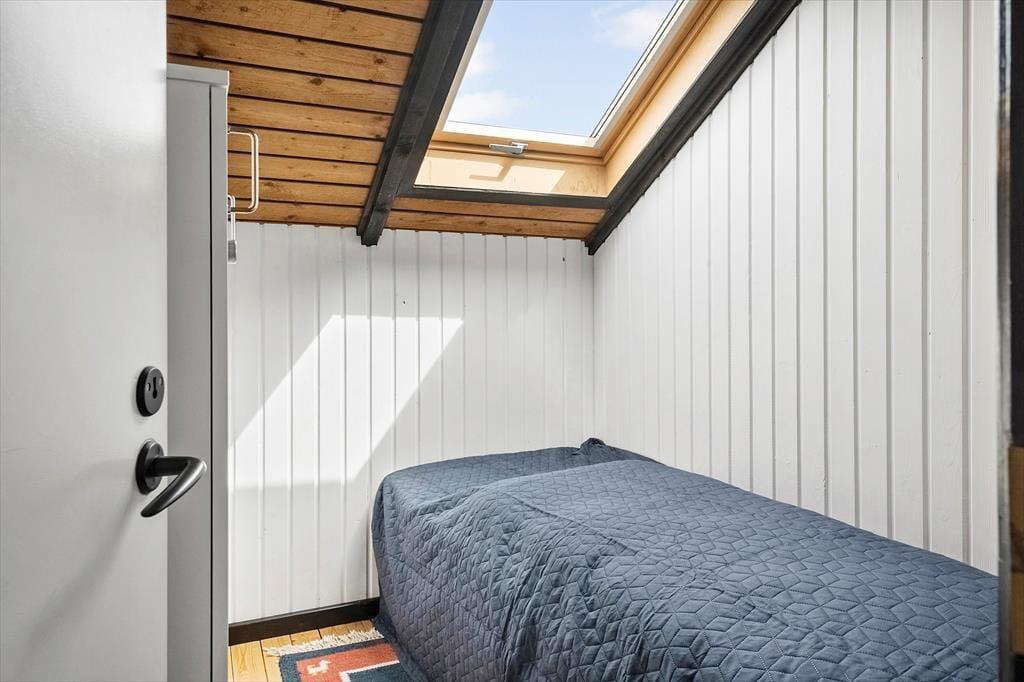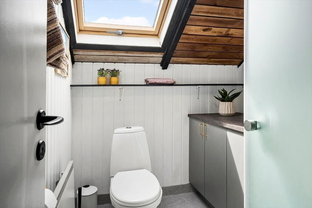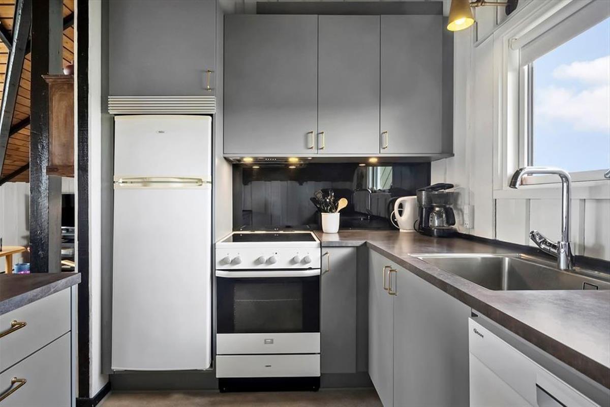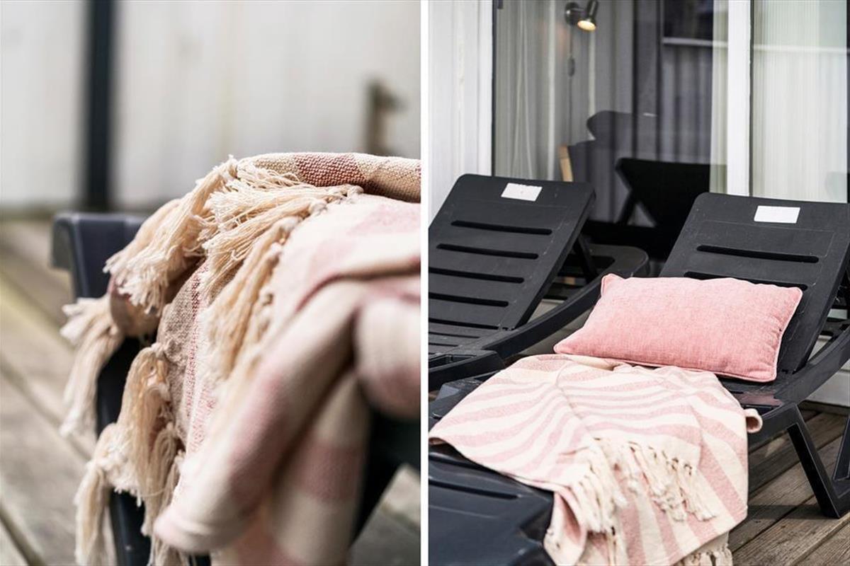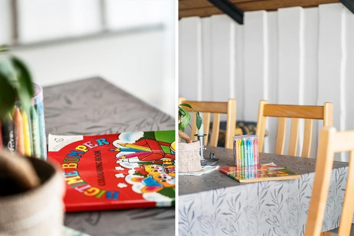 When you step into this cozy holiday home, you are greeted by a bright and inviting atmosphere. The living room and kitchen are combined in an open space, creating a spacious and pleasant living area. In the living room, you can relax in the comfortable sofa, enjoy meals at the dining table, or warm yourself by the wood-burning stove on cooler evenings. From the living room, you have direct access to the terrace, where you can enjoy your morning coffee in the fresh air. The holiday home features four bedrooms: two with double beds, one of which includes a baby cot, and two with single beds, providing flexible sleeping arrangements for family and friends. The bathroom is functional with a shower.