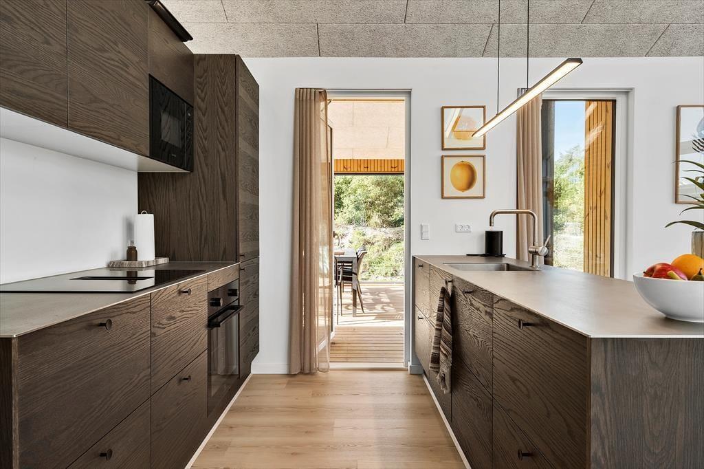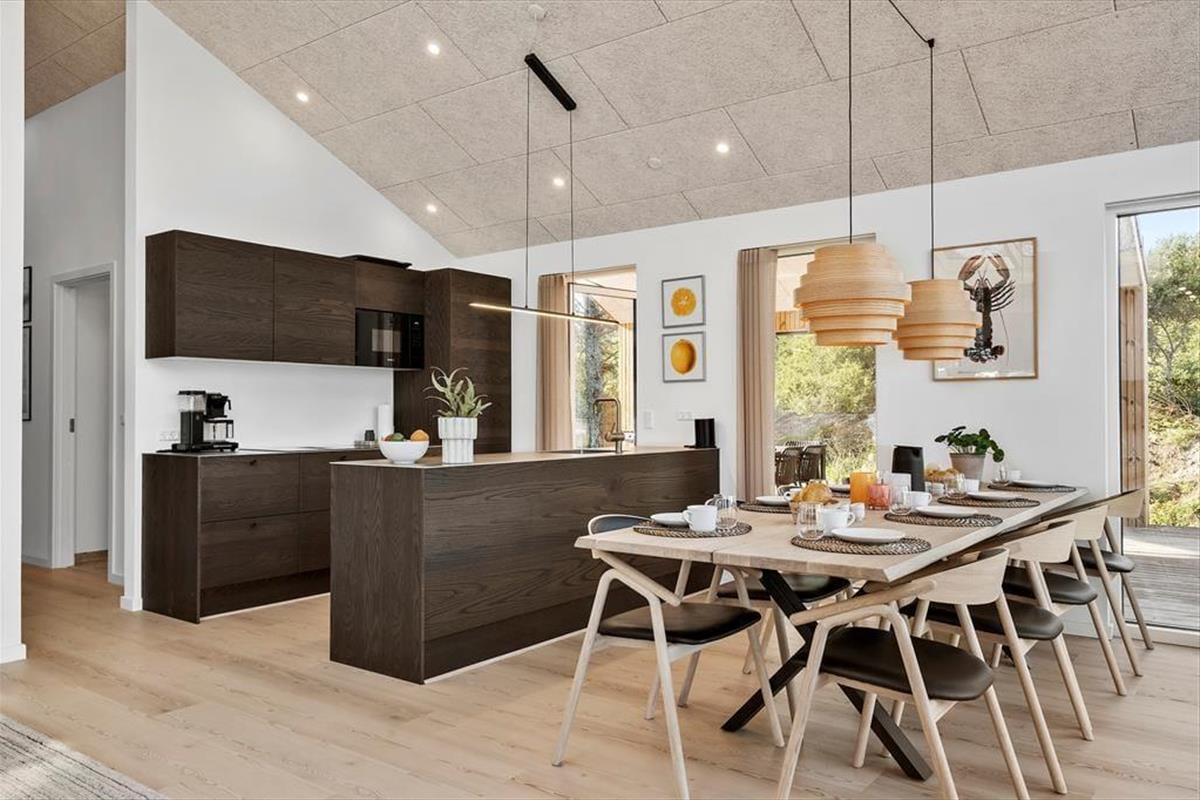 As you step inside, you’re greeted by a brand-new holiday home where everything is designed with both comfort and aesthetics in mind. Bright colours and modern materials create an inviting atmosphere with space for both relaxation and quality time. The open kitchen-living area becomes the natural gathering point of the house, and the spacious living room is perfect for movie nights and long board game sessions. When evening falls, you can look forward to retreating to one of the peaceful bedrooms, where the tranquil forest surroundings will lull you to sleep. The holiday home is ideal for both small families and couples looking to treat themselves to a modern and well-equipped holiday residence.