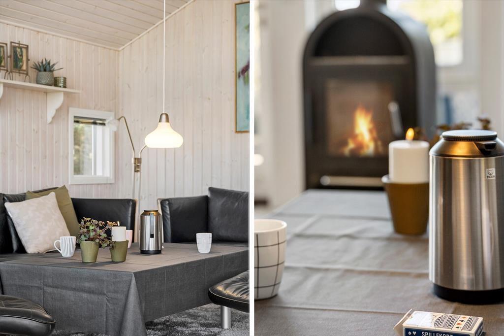 Inside, the holiday home features a bright and welcoming decor that will make you feel at home immediately. The living room and kitchen are connected in an open space, making it easy to gather for both cozy meals and fun game nights. The wood-burning stove is sure to be a hit when the weather turns cooler, creating a warm and inviting atmosphere where you can retreat and enjoy a cup of coffee in the comfortable furniture. The house has three spacious bedrooms, all providing room to rest after a day full of adventures, and for the little ones, there’s a loft that could quickly become their favorite spot for play and relaxation.