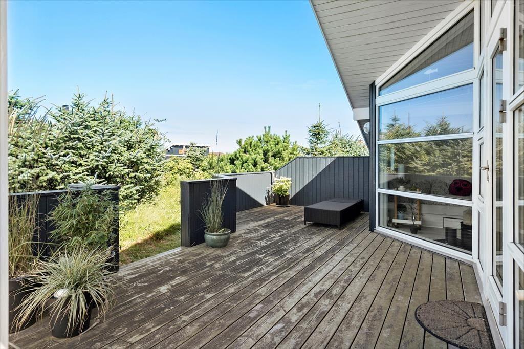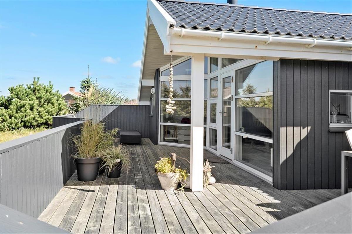 The enclosed terrace around the holiday home is perfect for enjoying outdoor living in a secure environment—children and dogs can run around freely while you sit back and enjoy the tranquility of the scenic surroundings. From the terrace, you have a view of the trees and the peaceful landscape, and if you’re lucky, you might even spot a deer wandering through the forest. The house’s grill is ready for those long summer evenings, where you can prepare meals in the open air. And when you're not basking in the sun, you can take a short walk to Vrist Beach, just 600 meters away—a quick stroll through the beautiful trails leads you directly to the sea, where the sand between your toes and the roar of the North Sea await.