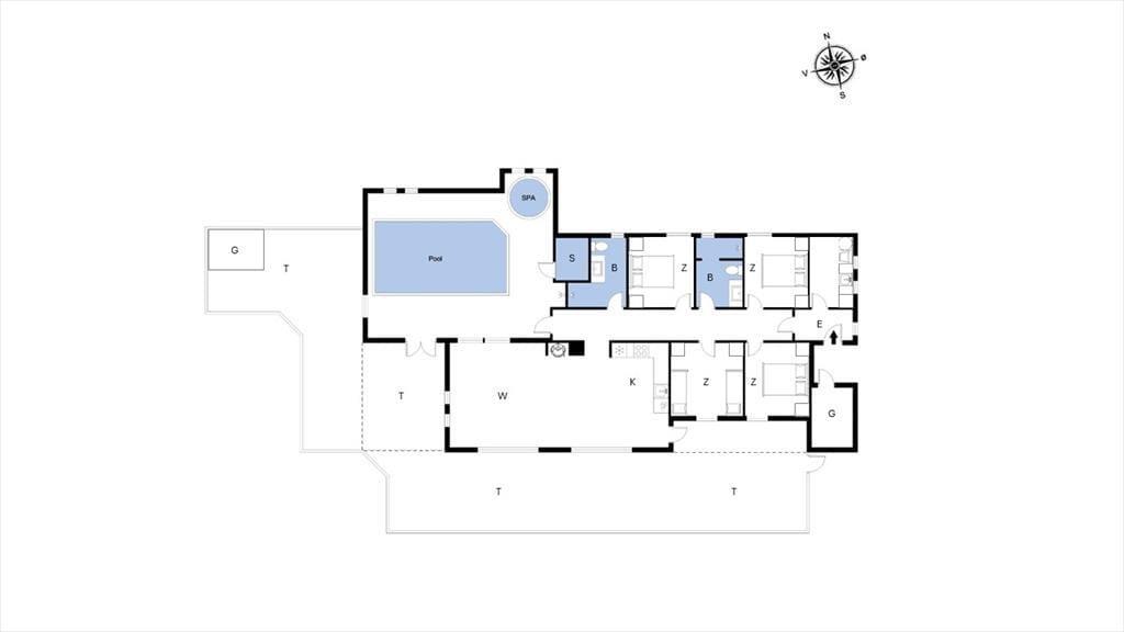 The holiday home offers modern comfort in bright and inviting surroundings. The layout has been carefully planned to allow everyone to gather together – and still find space for a quiet moment when needed. The open-plan living area combines the kitchen and lounge, making it easy to enjoy cosy moments together. Light the wood-burning stove, put your feet up on the sofa and relax – or watch the kids splash about in the indoor pool while you unwind in the spa or sauna. This home is ideal for large families or two groups of friends, and with room for up to 12 guests, you can easily share the experience with those you care about most.