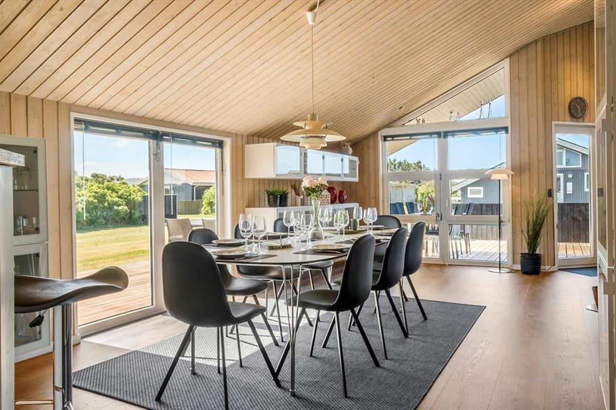 Imagine a holiday where you start the day with a cup of coffee on the terrace, feel the breeze from the North Sea, and hear birds chirping in the large garden. That’s exactly the kind of holiday you can enjoy at Neerlandiavej 44 in Vejlby Klit – and so much more. The setting is perfect for both relaxation and quality time, whether you’re a large family, two families travelling together, or a couple with dogs and a love for nature. The bright and cosy holiday home accommodates up to eight people and two dogs, and with its close proximity to both the sea and the lake, you’ll be drawn to spend your days outside – before rounding them off with wellness and warmth in the house’s spa and sauna.