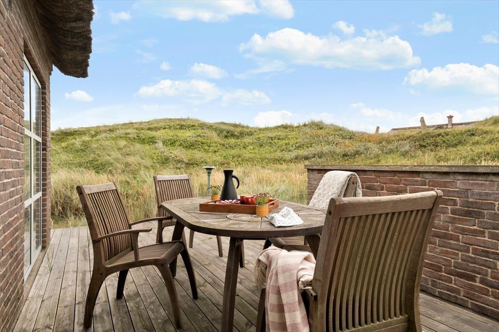 The spacious 1,500 m² dune plot provides a natural and scenic setting for the holiday home – with front-row access to the dramatic North Sea landscape. On the sheltered terrace, you can enjoy meals in the warmth of the sun while the wind dances through the tops of the dunes. This is a perfect spot to sit undisturbed with a good book or simply enjoy the sounds of birdsong and the distant roar of the sea. Children have plenty of space to play in the gently rolling terrain, and as the day winds down, you can light the barbecue and soak in the evening atmosphere while the sky turns golden over the dunes. The house's location makes it easy to immerse yourself in nature – without sacrificing comfort.