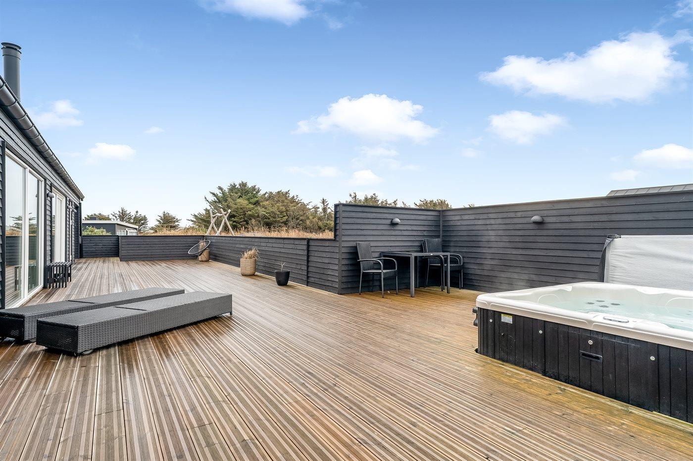 Het buitenbubbelbad (standwater) biedt ontspanning aan 6 personen.
