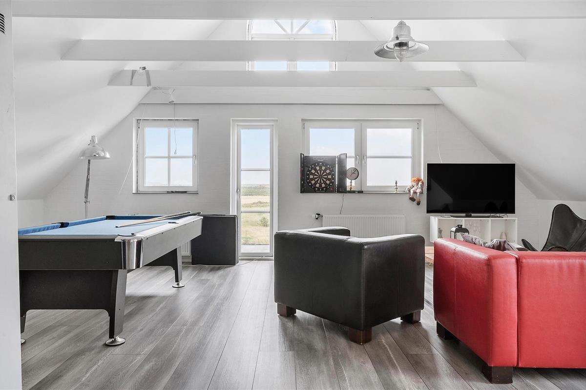 Ervaar de rust en schoonheid van de Deense westkust in dit ruime vakantiehuis, dat op slechts een korte wandeling van het pittoreske Vejlby Klit strand ligt. Dit huis biedt je de ideale plek voor een ontspannen vakantie. De lichte, vrolijk ingerichte kamers creëren een gastvrije sfeer waarin je je meteen thuis zult voelen. De goed uitgeruste keuken heeft alles wat je nodig hebt om je favoriete gerechten te bereiden, waarvan je kunt genieten in de gezellige eethoek met uitzicht op de tuin. Speel een potje pool of darts voordat je naar het strand gaat.