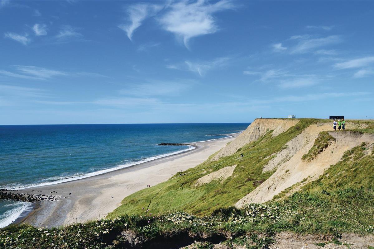 Geniet van dit rietgedekte vakantiehuis met zwembad en sauna vlakbij het strand en met uitzicht op de duinen.