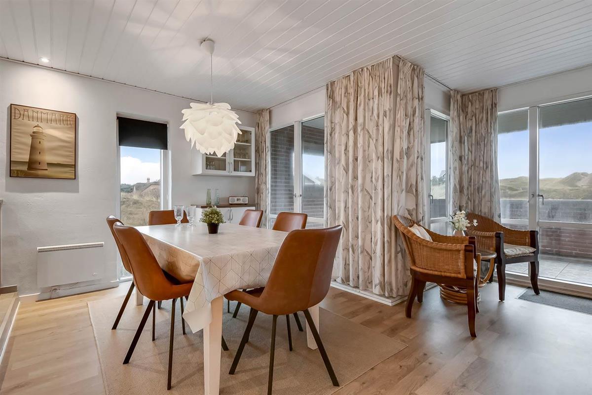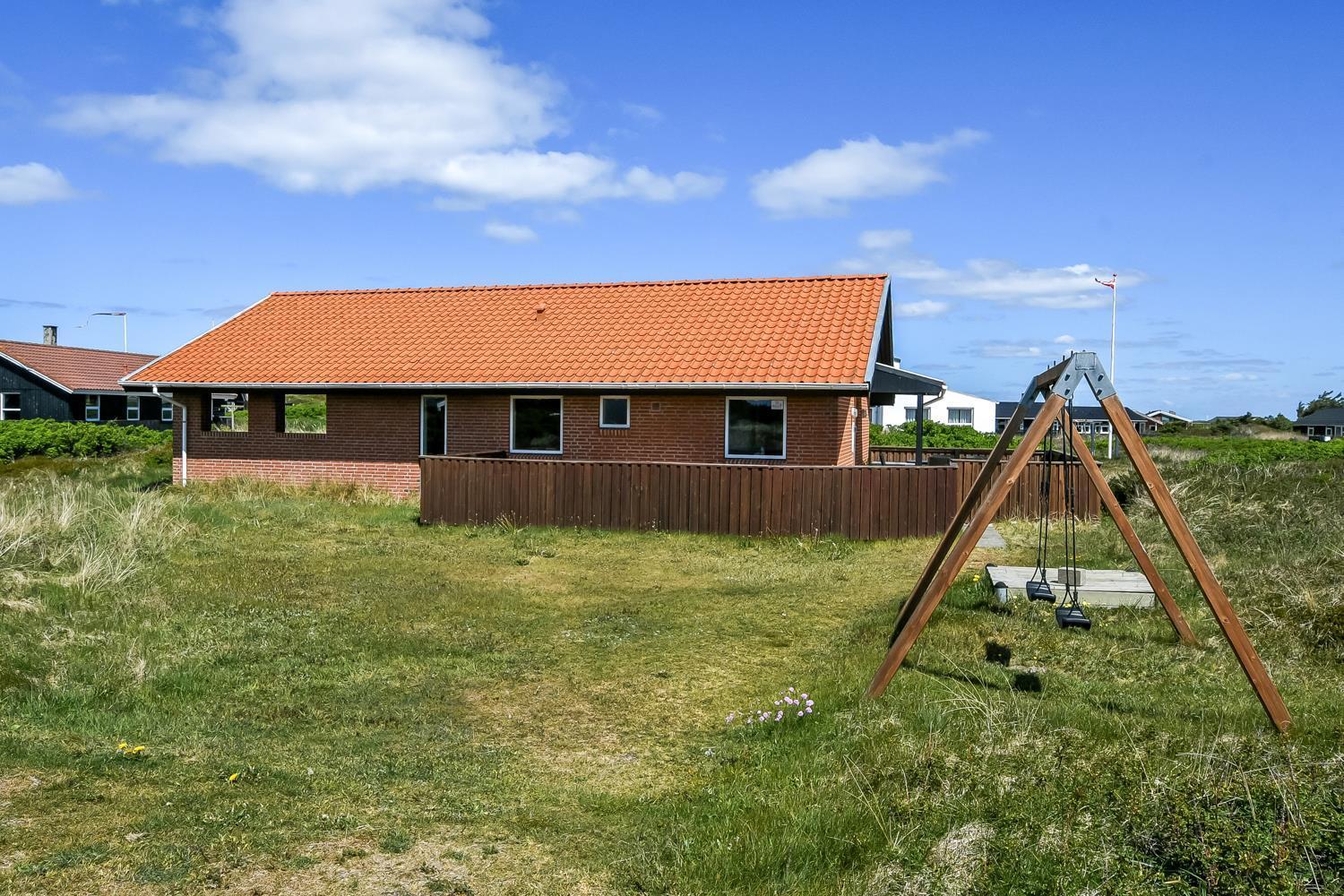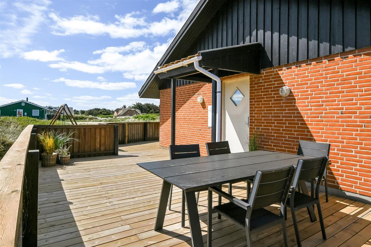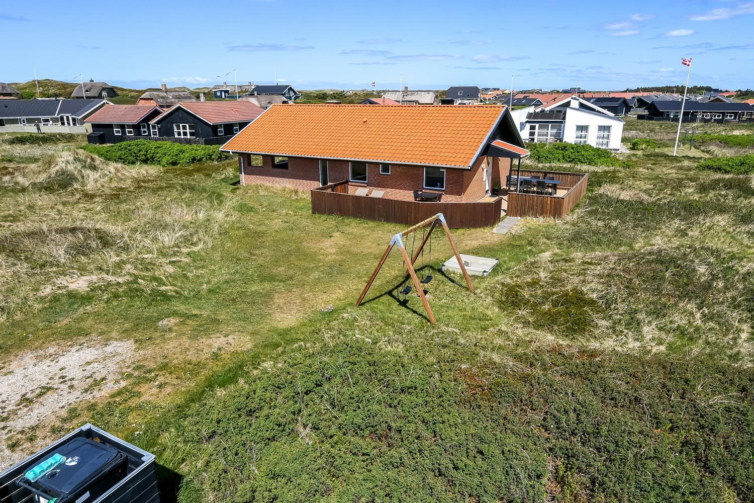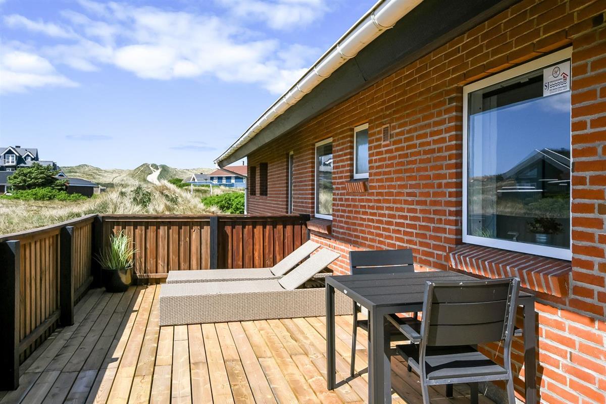Das Haus ist auf einem etwa 1.358 qm schönen Grundstück gelegen. Vom Wohnraum gibt es einen Ausgang zu einer tollen, überdachten Terrassenanlage mit guten Gartenmöbeln, Sonnenliegen, Polstern und Grill. Eine Terrasse, auf der es immer Windschutz gibt, auch an windigen Tagen; von hier aus haben Sie auch ein tollen Blick zu den hohen Dünen. Genießen Sie einen Grillabend, egal bei welchem Wetter oder die Sonne und die Lage des Hauses. Das Haus verfügt auch über eine schöne Morgenterrasse, wo Sie Ihr Frühstück genießen können. Ein offenes Naturgrundstück mit vielen Möglichkeiten und nur 250 m Entfernung zur Nordsee. Bleiben Sie in Form oder erkunden Sie die Umgebung. Dieses ganz besondere und sehr charmante Ferienhaus bietet unabhängig von der Jahreszeit ein Urlaubserlebnis der Sonderklasse.