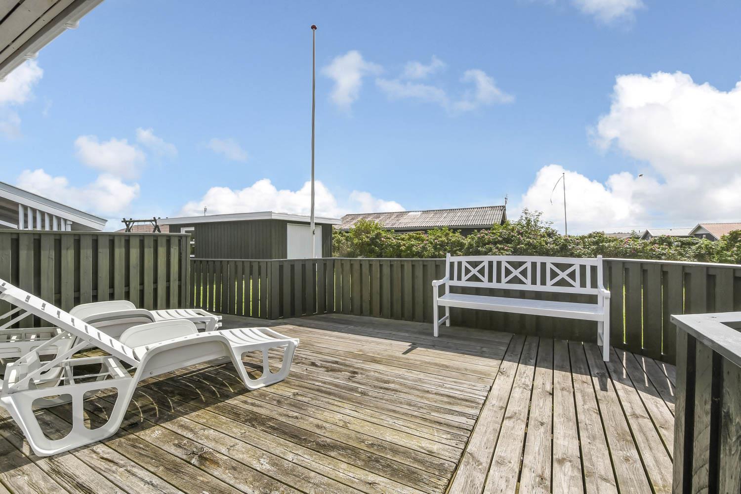 Das Haus befindet sich auf einem rd. 900 m² großen gepflegten Grundstück. Vom Wohnzimmer aus haben Sie Zugang zu einer schönen, abgeschirmten Westterrasse mit Gartenmöbeln, Sonnenliegen und Grill. Für die Kinder gibt es einen Sandkasten. Darüber hinaus gibt es eine Garage. In Vejlby Klit und Umgebung gibt es wirklich gute Möglichkeiten zum Radfahren, Wandern oder Laufen. In der Saison können Sie nur 150 m vom Haus entfernt Frühstück und Lebensmittel einkaufen oder die Familie zum Essen einladen. Nur ca. 400 m sind es zur Nordsee und ca. 550 m zum Ferring Lake. Genießen Sie die Sonne, einen guten Grillabend oder gehen Sie mit dem Hund in der Umgebung spazieren. Dieses Haus ist zu jeder Jahreszeit einen Besuch wert. Innerhalb einer kurzen Autofahrt erreichen Sie sowohl die aktive Handelsstadt Lemvig mit mehreren Fachgeschäften, als auch das einzigartige Fischerdorf Thyborøn, das neben dem aktiven Fischerhafen auch einen Strand und verschiedene Aktivitäten bietet, die alle einen Besuch wert sind.