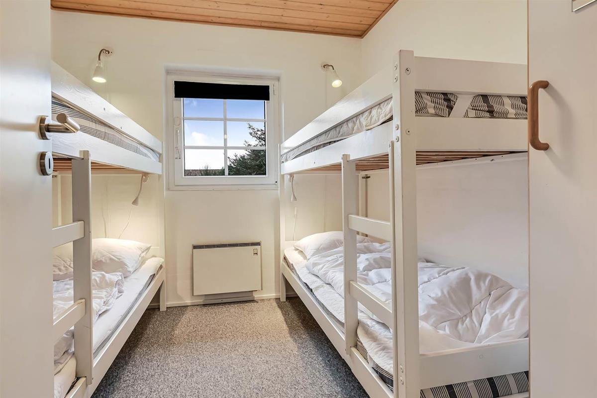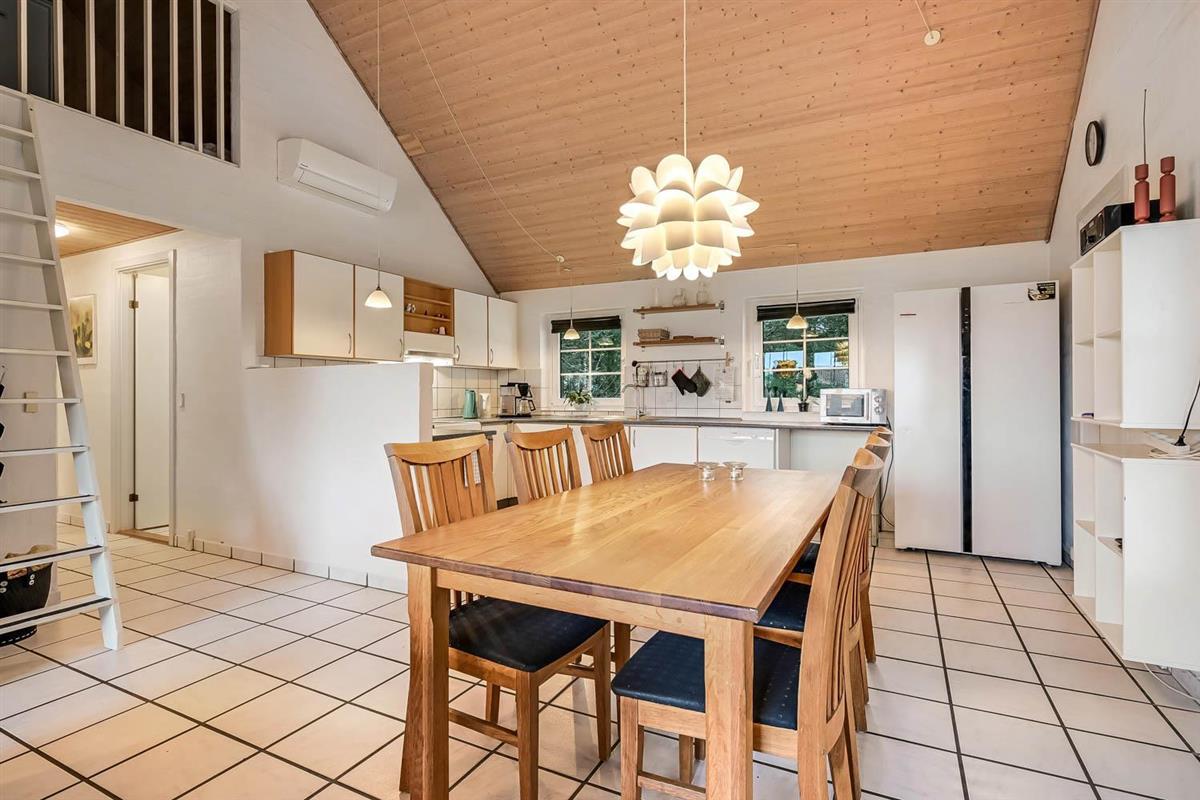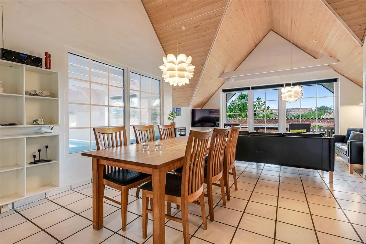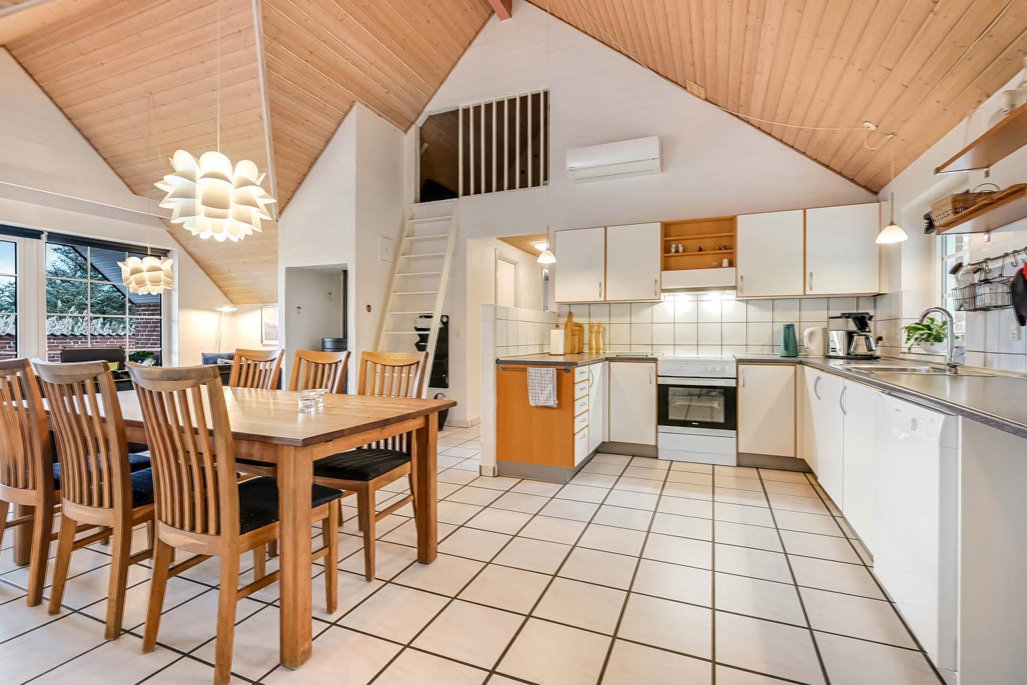 Das Haus ist 165 qm groß und verfügt über 4 schöne Schlafzimmer (1x Doppelbett, 1x Doppelbett, 2x Einzelbetten und 4x Stockbett), sowie einen Dachboden mit 2 Schlafplätzen zur Begeisterung vieler Kinder und Kinderseelen. Im Herzen des Hauses befindet sich eine gut ausgestattete Wohnküche mit schrägen Decken und Sprossenfenstern, die zur gemütlichen Urlaubsatmosphäre beitragen. Hier ist alles in weißer Ware; Herd mit Cerankochfeld, Dunstabzugshaube, Geschirrspüler, Mikrowelle, großer amerikanischer Kühlschrank mit Gefrierfach und sogar ein Weinkühlschrank. Genießen Sie das Essen am Esstisch oder entspannen Sie in den bequemen Möbeln. Fernseher im Wohnzimmer mit dänischen und deutschen Sendern und der Möglichkeit, Chromecast zu verwenden. Es gibt extra TV und DVD auf dem Dachboden, wo Sie Ihr eigenes kleines Kino machen können. Sollte es zu kalt werden oder die Atmosphäre aufflammen, zünden Sie einfach den Holzofen des Hauses an, wo Sie die Flammen und die intensive Wärme genießen können. Im Wohn- und Küchenbereich gibt es Fliesenböden mit Fußbodenheizung und Teppiche in den Schlafzimmern. Der Wellness-Poolbereich des Hauses umfasst neben Pool, Whirlpool und Sauna auch 3 Bäder, mit WC, Dusche, Waschbecken und Fußbodenheizung. Im Poolbereich gibt es eine Luft zu Wasser Wärmepumpe. Waschmaschine und Trockner sind selbstverständlich und befinden sich im Eingangsbereich des Hauses. Vom Wohnzimmer aus hat man Zugang zur großen und teilweise überdachten und eingezäunten Terrasse des Hauses. Auf der Terrasse gibt es Gartenmöbel, Sonnenschirm, Sandkasten, Rutsche, Tisch-/Bankgarnitur für die Kleinen etc. Im Haus befindet sich ein Kinderbett, das für die Kleinen hochgeklappt werden kann. Das Haus ist ein "Nichtraucherhaus". Max. 2 Haustiere sind erlaubt. Im Haus ist eine Wärmepumpe installiert, wodurch Sie als Gast viel Strom sparen können - die Wärmepumpe liefert bis zu 4-mal so viel Strom wie sie verbraucht. Das Haus wird nicht an Jugendgruppen vermietet. Wenn Sie ein Elektroauto oder einen Plug-In-Hybrid besitzen, verfügt das Haus über 3 Ladesteckdosen mit Kraftsteckdose, die Lade Box liegt nördlich auf dem Hausgiebel. Kaution: Wintersaison EUR 400,- / Sommersaison EUR 300,-.