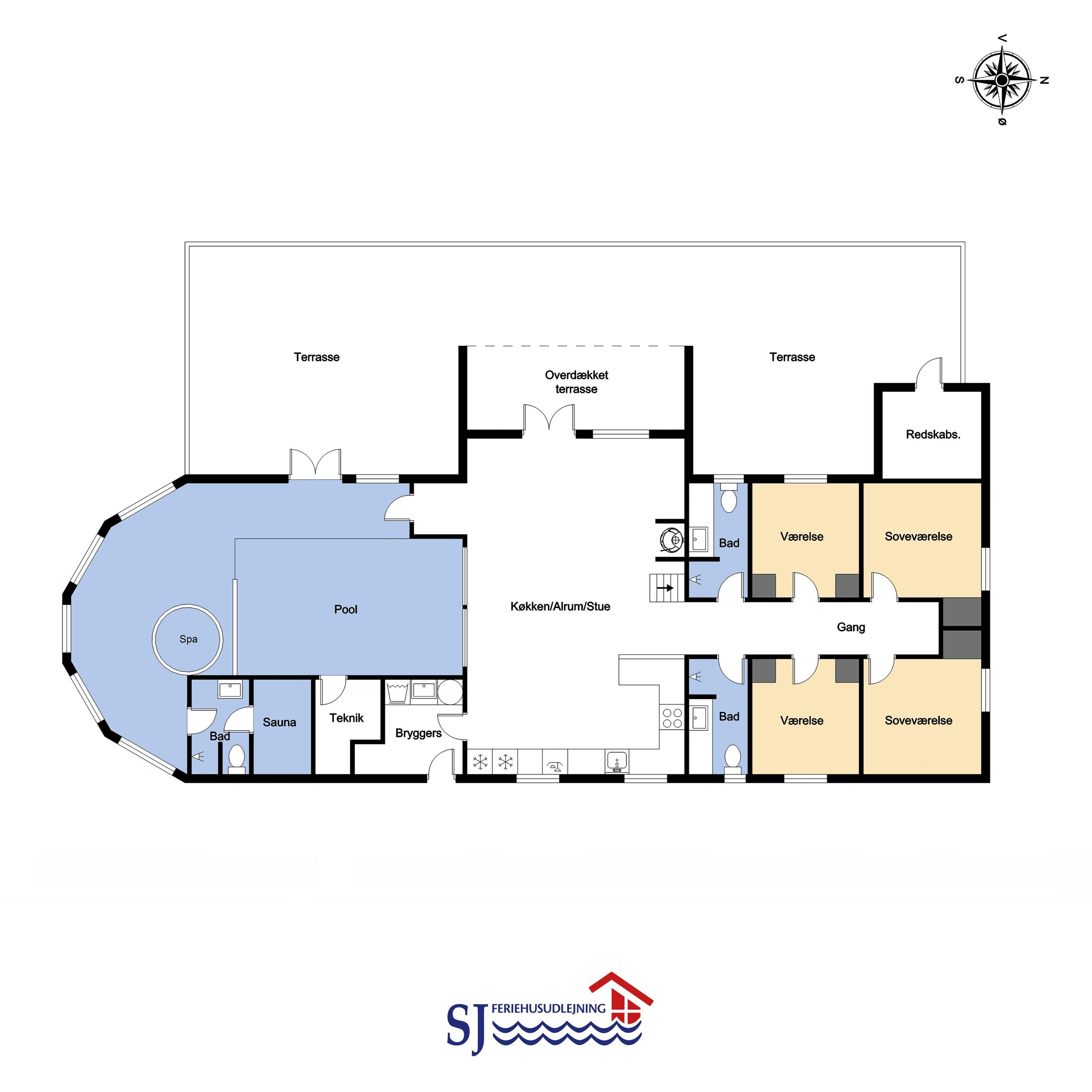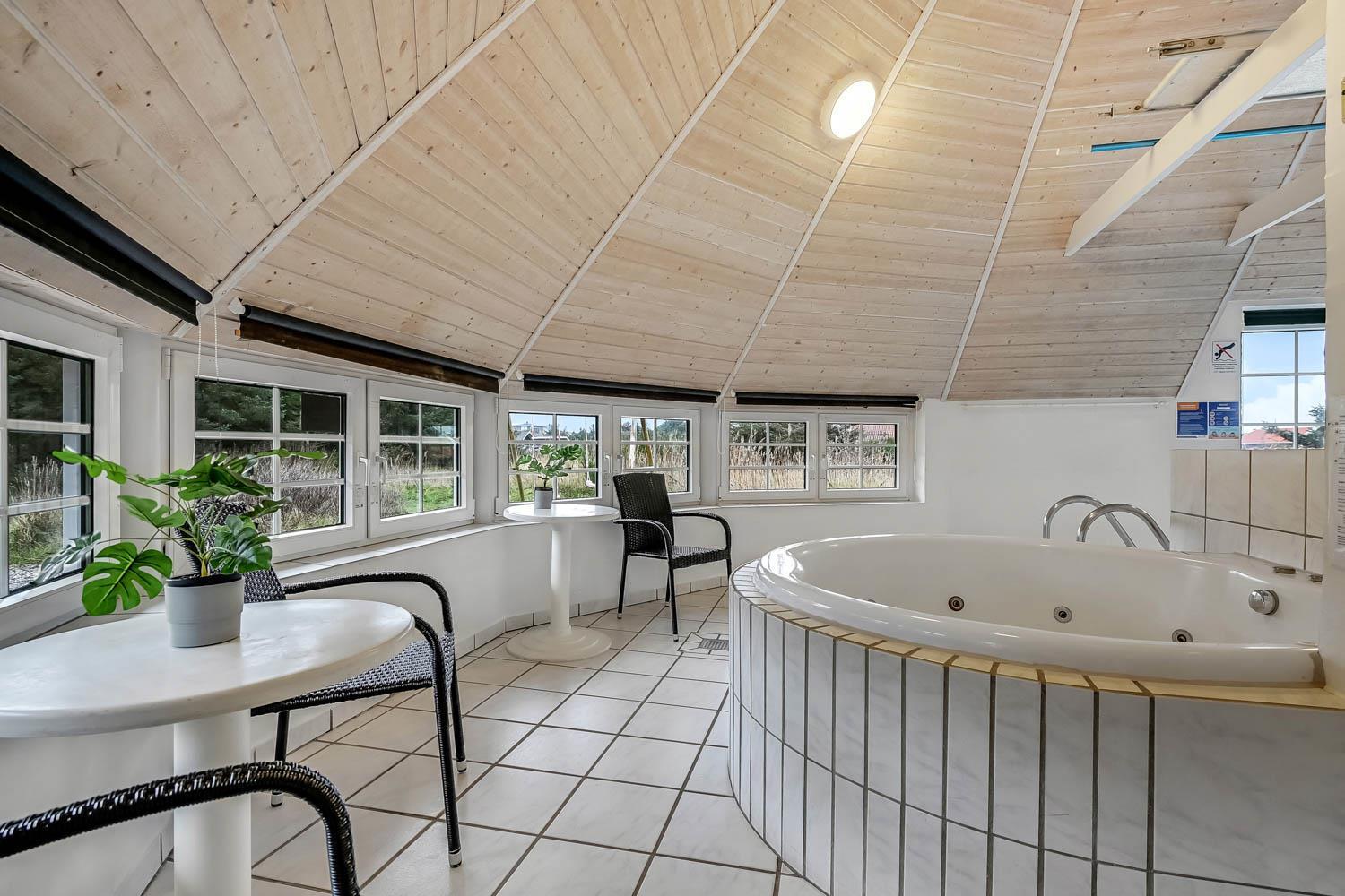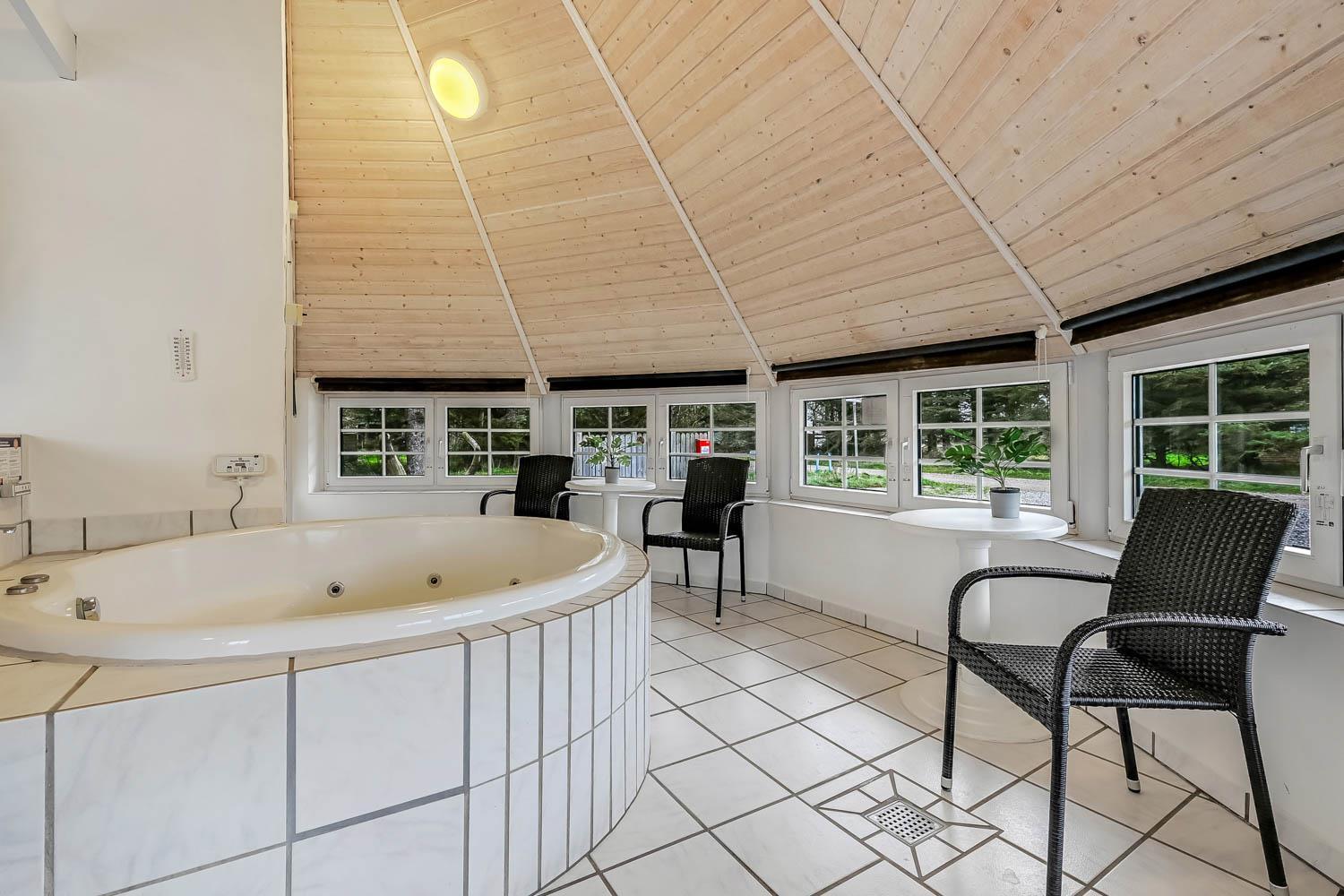 Das Haus ist 165 qm groß und verfügt über 4 schöne Schlafzimmer (1x Doppelbett, 1x Doppelbett, 2x Einzelbetten und 4x Stockbett), sowie einen Dachboden mit 2 Schlafplätzen zur Begeisterung vieler Kinder und Kinderseelen. Im Herzen des Hauses befindet sich eine gut ausgestattete Wohnküche mit schrägen Decken und Sprossenfenstern, die zur gemütlichen Urlaubsatmosphäre beitragen. Hier ist alles in weißer Ware; Herd mit Cerankochfeld, Dunstabzugshaube, Geschirrspüler, Mikrowelle, großer amerikanischer Kühlschrank mit Gefrierfach und sogar ein Weinkühlschrank. Genießen Sie das Essen am Esstisch oder entspannen Sie in den bequemen Möbeln. Fernseher im Wohnzimmer mit dänischen und deutschen Sendern und der Möglichkeit, Chromecast zu verwenden. Es gibt extra TV und DVD auf dem Dachboden, wo Sie Ihr eigenes kleines Kino machen können. Sollte es zu kalt werden oder die Atmosphäre aufflammen, zünden Sie einfach den Holzofen des Hauses an, wo Sie die Flammen und die intensive Wärme genießen können. Im Wohn- und Küchenbereich gibt es Fliesenböden mit Fußbodenheizung und Teppiche in den Schlafzimmern. Der Wellness-Poolbereich des Hauses umfasst neben Pool, Whirlpool und Sauna auch 3 Bäder, mit WC, Dusche, Waschbecken und Fußbodenheizung. Im Poolbereich gibt es eine Luft zu Wasser Wärmepumpe. Waschmaschine und Trockner sind selbstverständlich und befinden sich im Eingangsbereich des Hauses. Vom Wohnzimmer aus hat man Zugang zur großen und teilweise überdachten und eingezäunten Terrasse des Hauses. Auf der Terrasse gibt es Gartenmöbel, Sonnenschirm, Sandkasten, Rutsche, Tisch-/Bankgarnitur für die Kleinen etc. Im Haus befindet sich ein Kinderbett, das für die Kleinen hochgeklappt werden kann. Das Haus ist ein "Nichtraucherhaus". Max. 2 Haustiere sind erlaubt. Im Haus ist eine Wärmepumpe installiert, wodurch Sie als Gast viel Strom sparen können - die Wärmepumpe liefert bis zu 4-mal so viel Strom wie sie verbraucht. Das Haus wird nicht an Jugendgruppen vermietet. Wenn Sie ein Elektroauto oder einen Plug-In-Hybrid besitzen, verfügt das Haus über 3 Ladesteckdosen mit Kraftsteckdose, die Lade Box liegt nördlich auf dem Hausgiebel. Kaution: Wintersaison EUR 400,- / Sommersaison EUR 300,-.