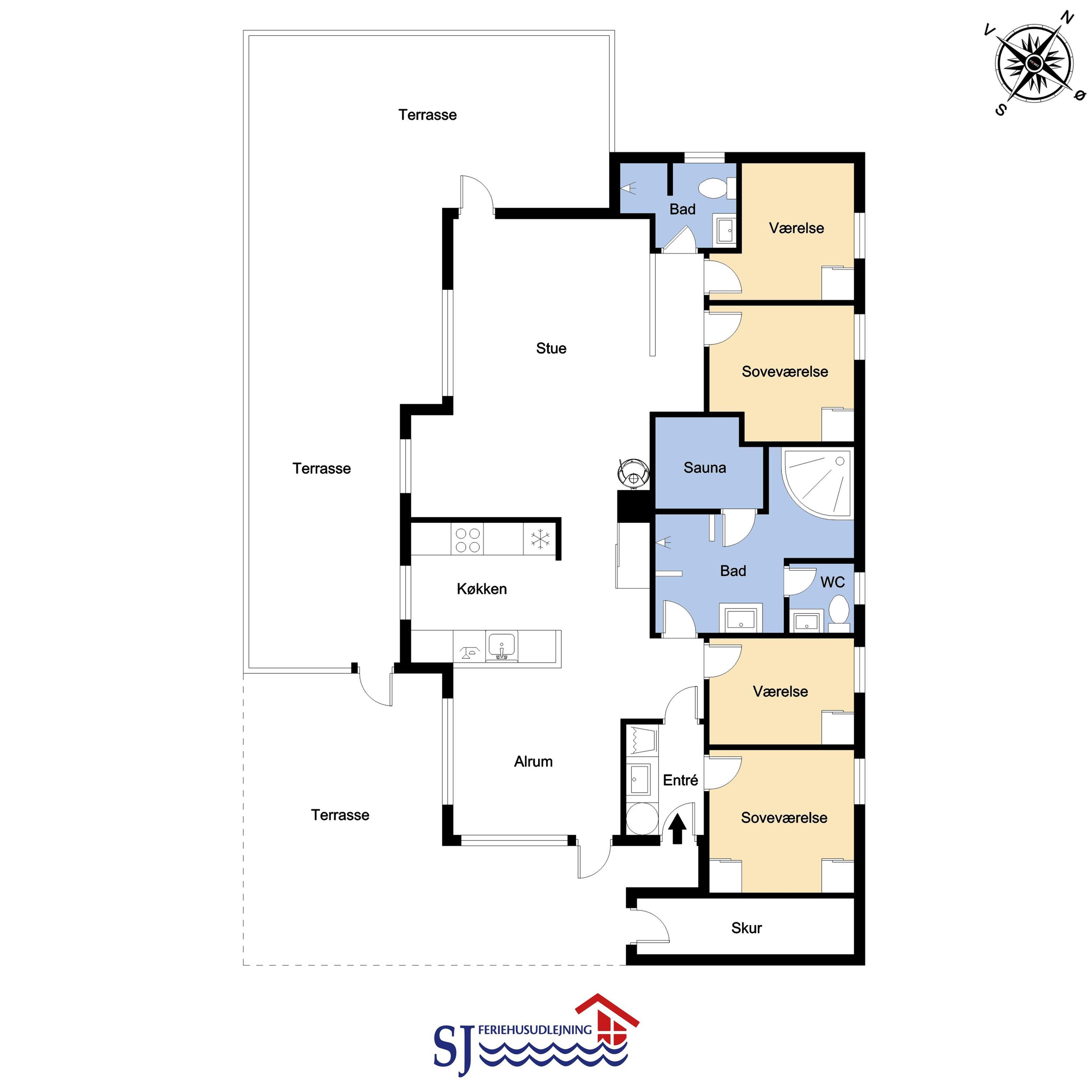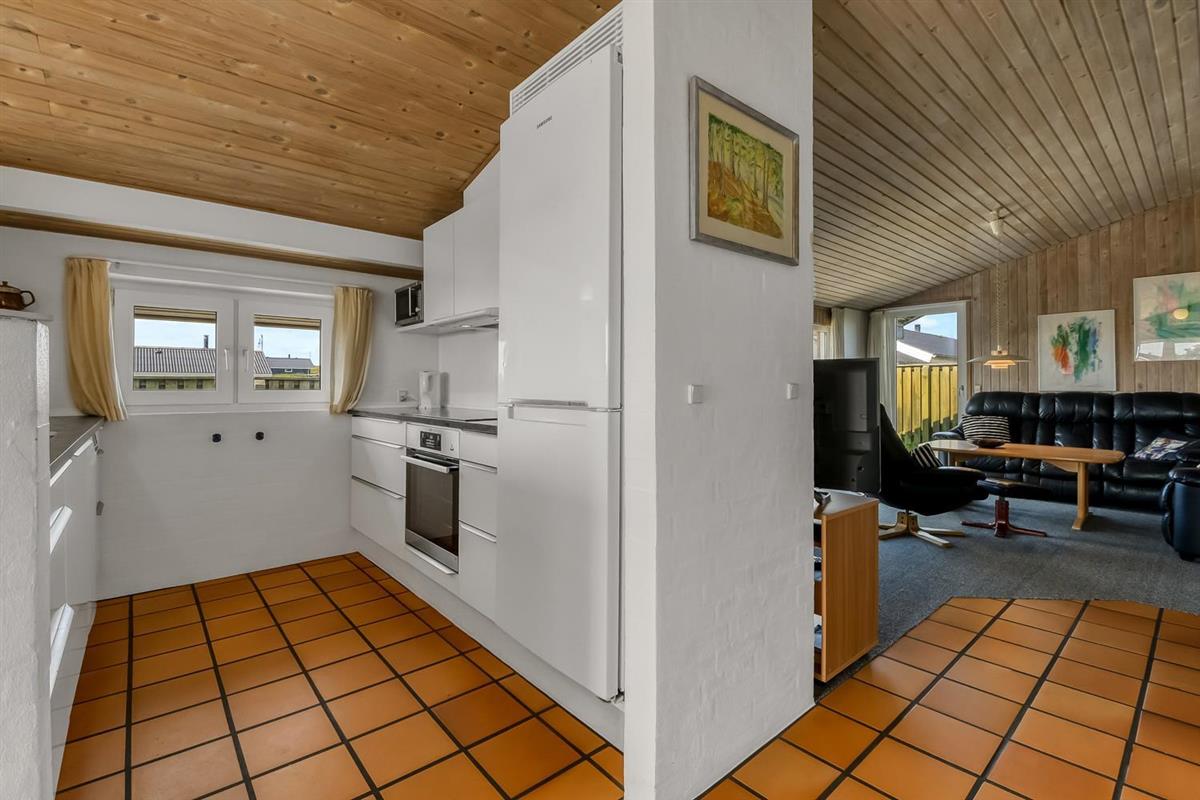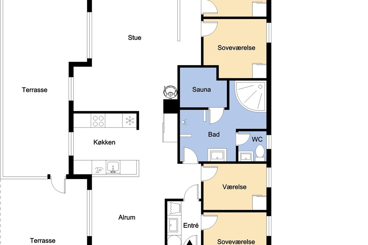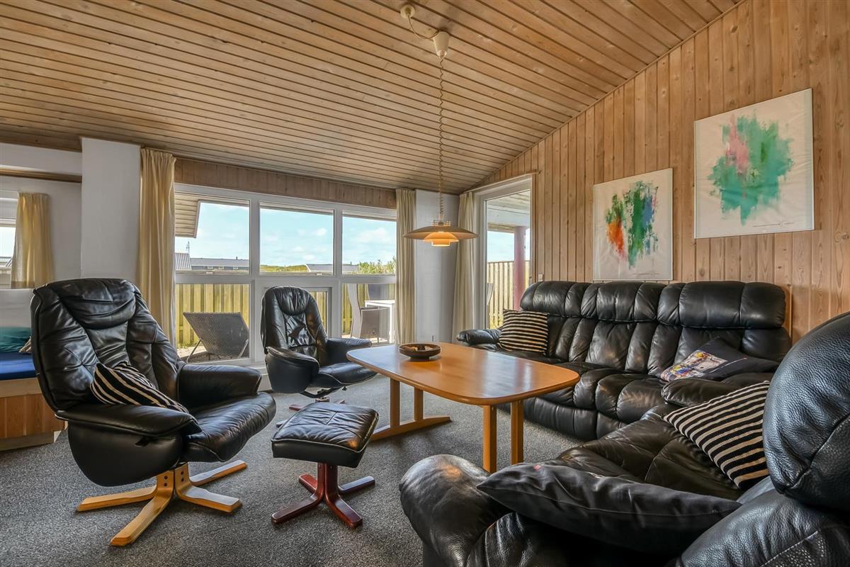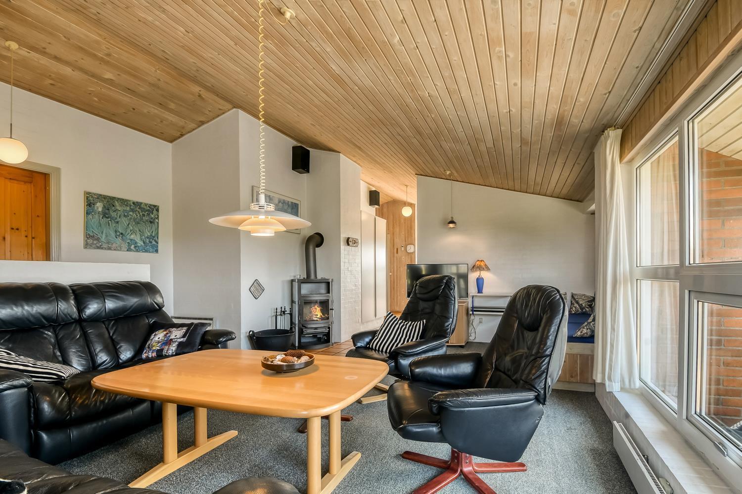 Der Wohnraum ist warm und gemütlich mit Teppich und teilweiser Holzbekleidung an den Wänden eingerichtet. Es gibt eine gemütliche Sitzecke mit Kaminofen. Ausserdem gibt es Fernseher mit dänischen und deutschen Programmen, DVD-Player und Stereoanlage mit CD. Die Küche ist gut ausgestattet und hat E-Herd, Mikrowelle, Geschirrspüler, Kühl/Gerfrierschrank und eine separate Gefriertruhe mit 90 l. Ausserdem gibt es eine Ecke mit grossen Fensterpartien und einem Esstisch. 2 Badezimmer, wo von eins mit Toilette, Waschbecken, Dusche, Whirlpool, Sauna, Waschmaschine und Trocker eingerichtet ist und das andere mit Toilette, Waschbecken und Dusche. 4 Schlafräume: 1DB + 1DB + 1DB + 1E. Im Haus ist eine Wärepumpe installiert und das bedeutet, Sie als Gast sparen an die Heizkosten - die Wärmepumpe liefert bis zu 4-mal so viel Strom. Für die Anwender bedeutet dies, dass jede Kilowattstunde, die die Pumpe verbraucht, als Wärme auf ca. 4 kW Energie ausgenutzt werden kann.