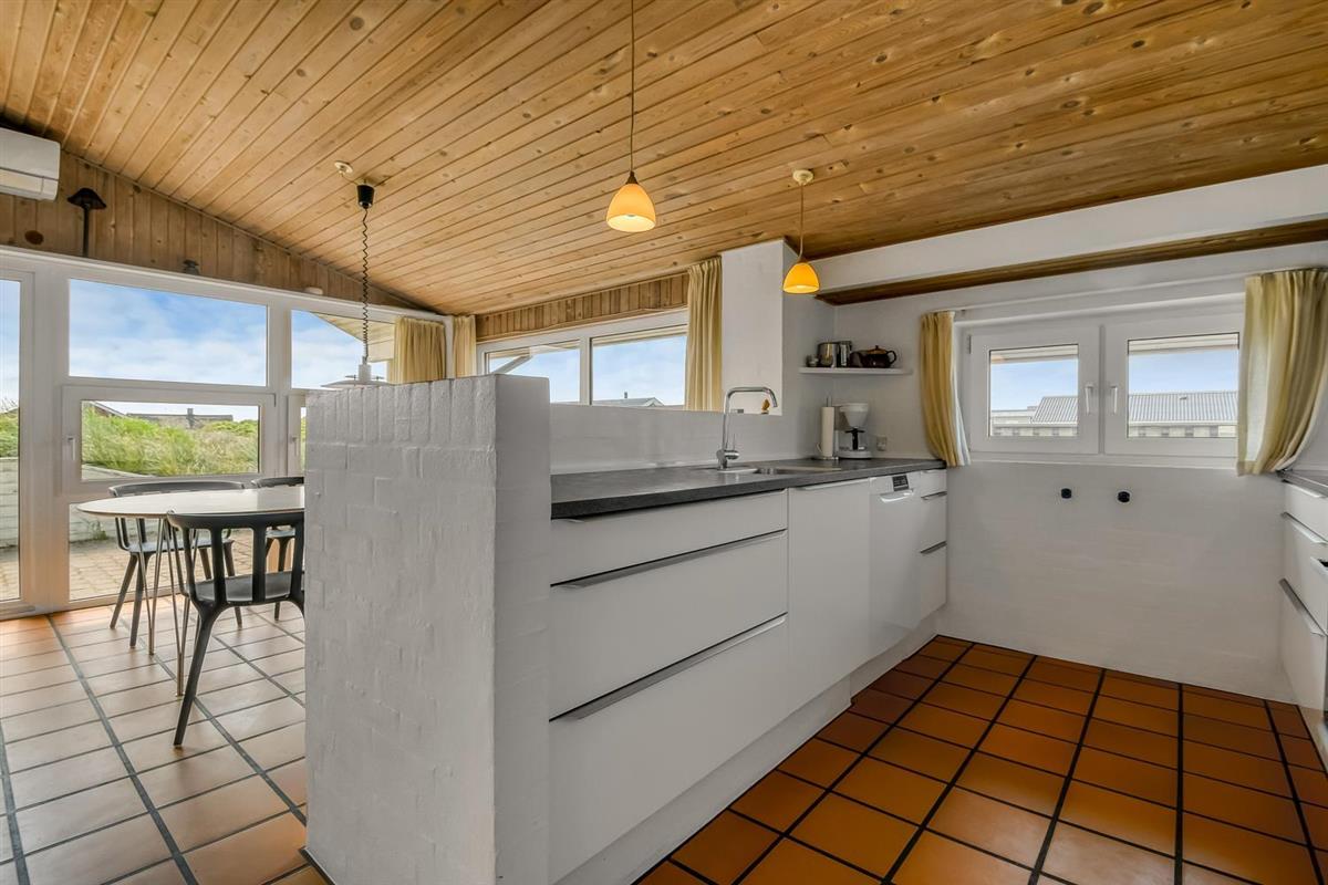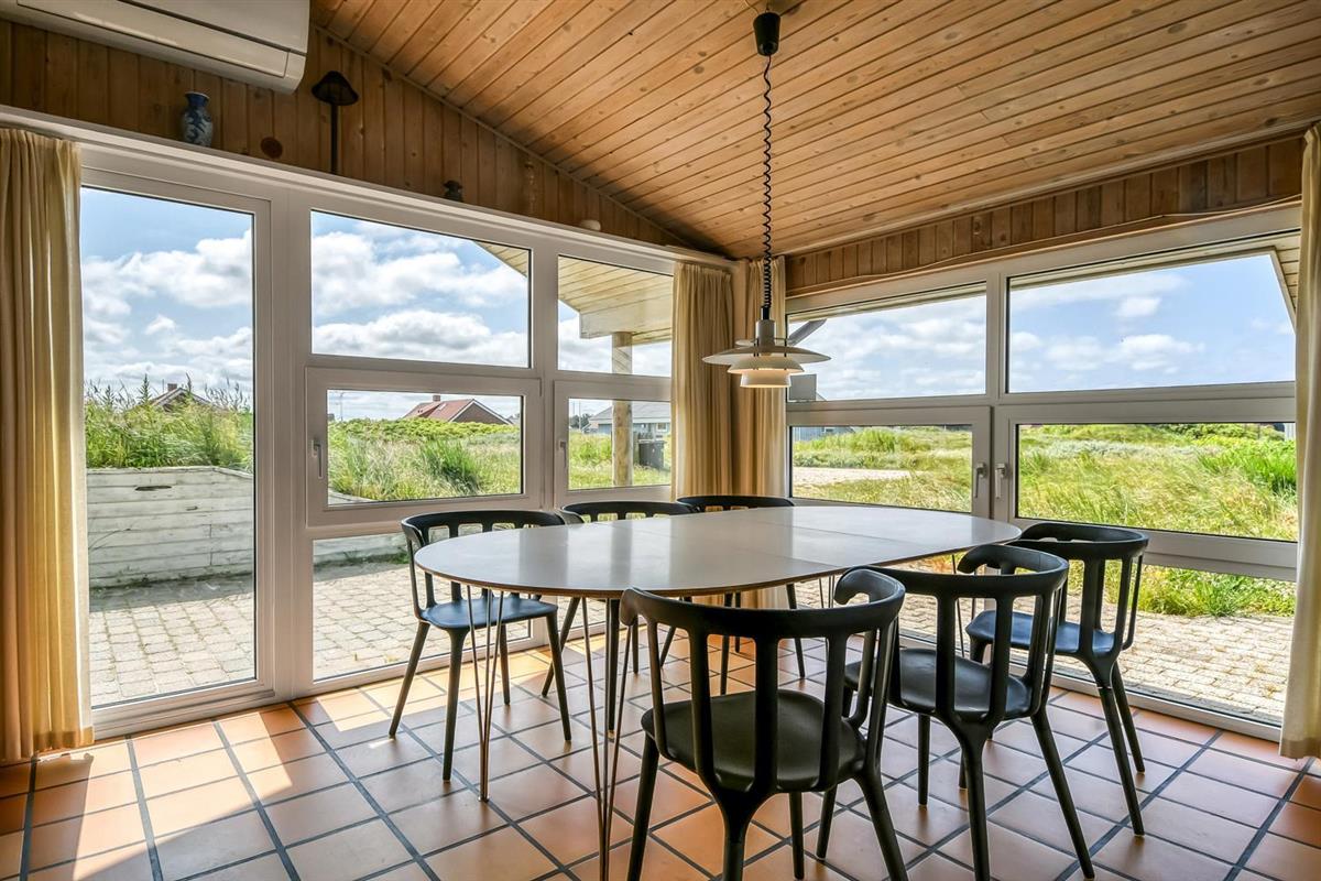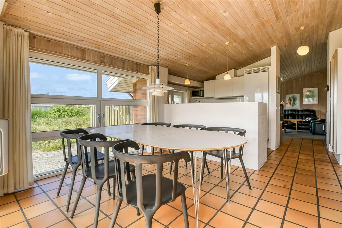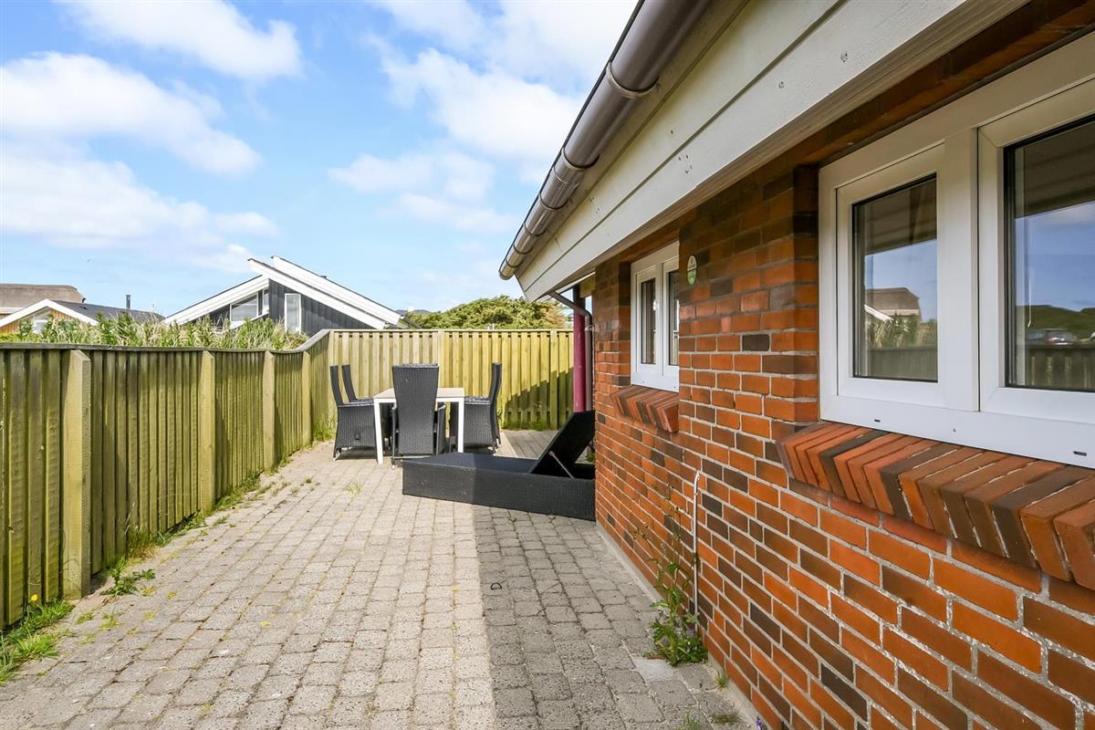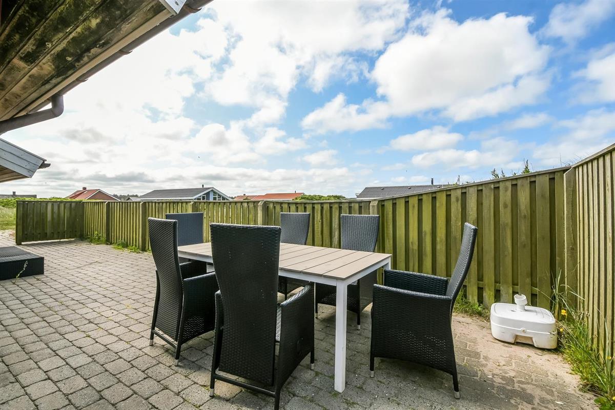 Die Terrassen vom Haus liegen Richtung Süd und West und haben natürlich Gartenmöbel und Grill. Hier können Sie wenn das Wetter es zulässt eine schöne Zeit verbringen und den Blick über die Dünenlandschaft geniessen. Auf dem Grundstück gibt es Schaukel. Die Nordsee erreichen Sie leicht zu Fuss. Hier können Sie baden, angeln, Drachen fliegen lassen oder bloss am Wasser entlang spazieren gehen. Es gibt gute Möglichkeiten Familienausflüge zu unternehmen. Thyborøn liegt nur 18 km entfernt und hat z.b. Kystcentret, Seawarmuseum und Jyllandsakvarium. In Thyborøn gibt es auch den besten Badestrand. Richtung süd ca.11 km entfernt liegt Bovbjerg Fyr, der über 70 m Höhe vom Bovbjerg Klint liegt. Sie können in den Leuchtturm hoch gehen und den schönen Blick über die Nordsee und die Umgebung von hier aus erleben. Es gibt auch ein kleines Café, wo Sie lokale Spezialitäten von der Umgebung bekommen können, ebenso Kaffee mit selbstgebackenem Kuchen. Hier gibt es eine ganz spezielle Stimmung die man einfach erleben sollte.