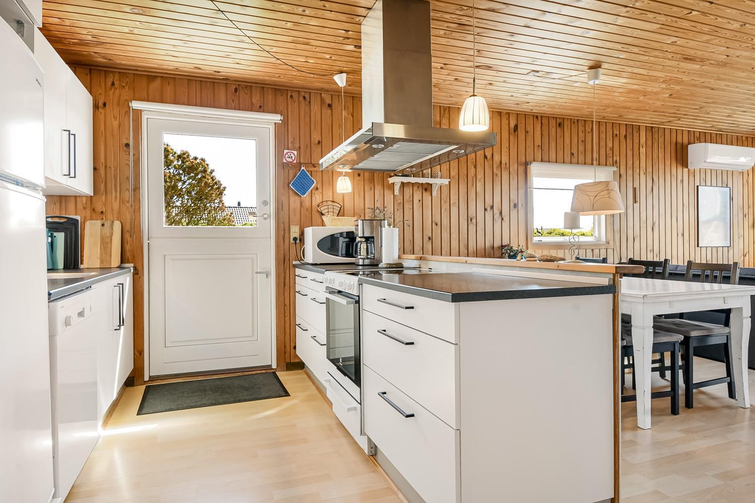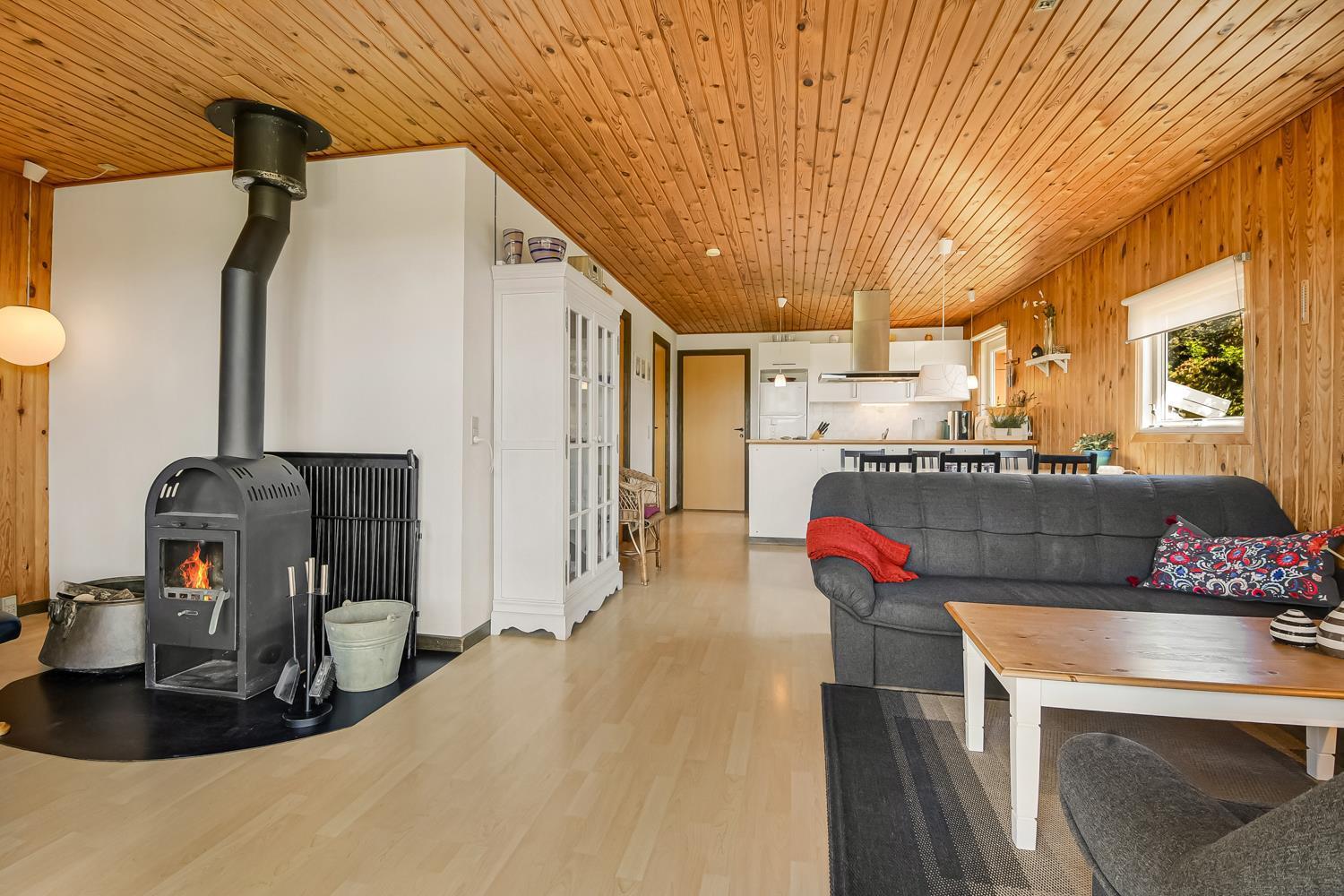 Holzhaus mit gemütlicher Möblierung. Holz und Teppichböden, Wände und Decken aus Holz. Küche mit Spülmaschine, Mikrowelle und 15 Liter Gefrierfach. Wohnzimmer mit Kamin, DVD, Sat-TV und Stereoanlage mit CD 3 Schlafräume: (DB) + (DB) + (4K). Waschmaschine. Das Haus hat Kostenlosen Internetanschluss.(selber Computer mitbringen) Badezimmer mit Dusche, Fussbodenheizung und Waschmaschine und direkt zugang zu Sauna. Off. und überdachte Terrasse mit Gartenmöbeln. Kinderbett und Hochstuhl. 1 Haustier erlaubt.;. Nichtraucher-haus.
