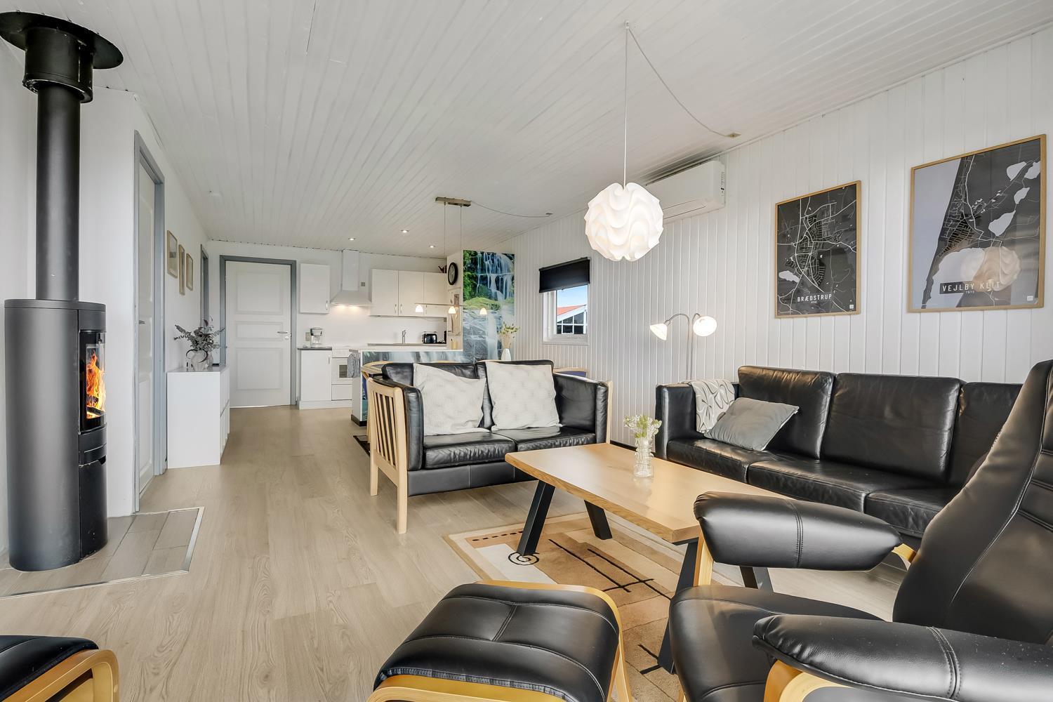 Ein hell und freundlich eingerichtetes Ferienhaus mit 3 Schlafzimmern (1 DB, 2 EB, 1 EB), schönen Möbeln, Holzofen und TV mit deutschem Programm.Wärmepumpe. Küche mit Geschirrspüler und Mikrowelle. Bad mit WC, Dusche und Fußbodenheizung. Waschmaschine und Wäschetrockner vorhanden.