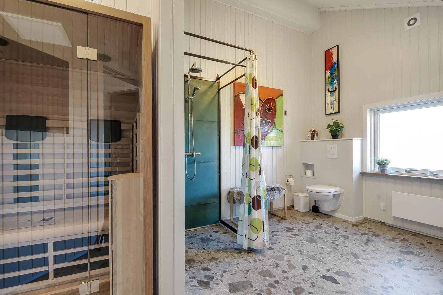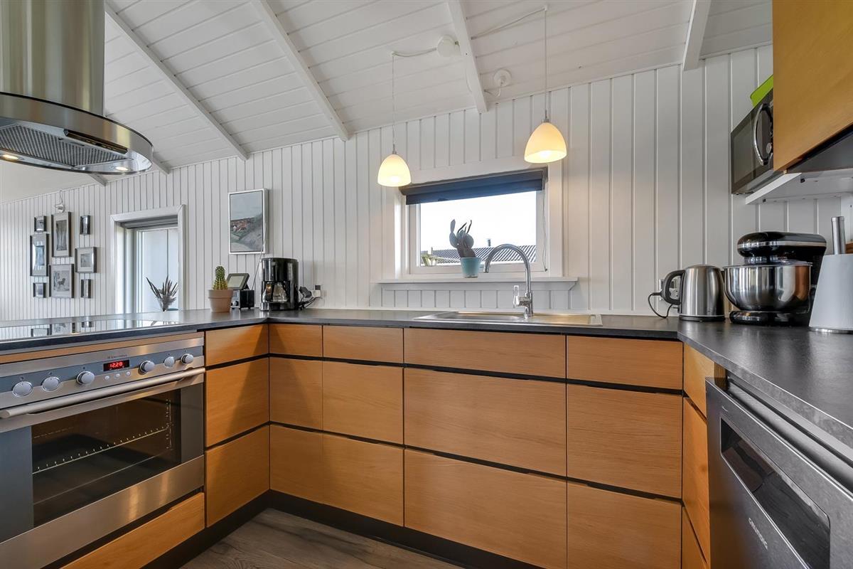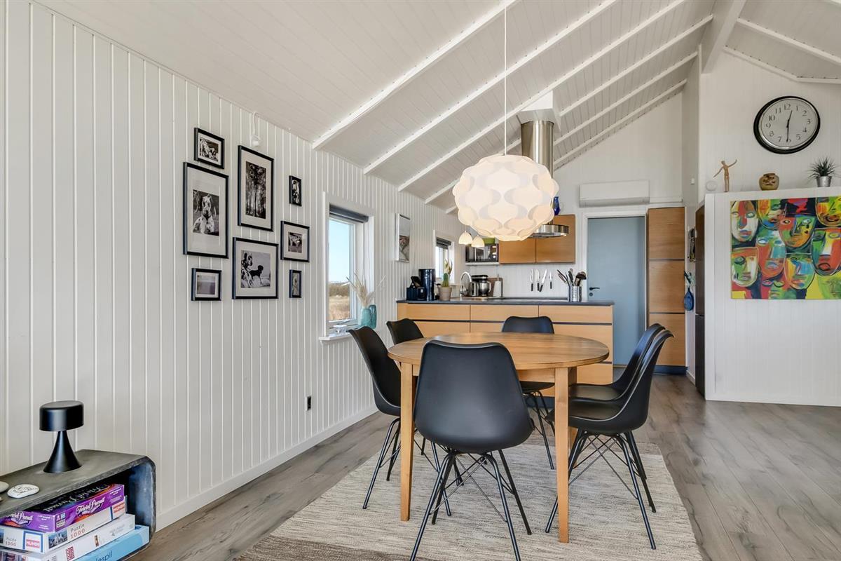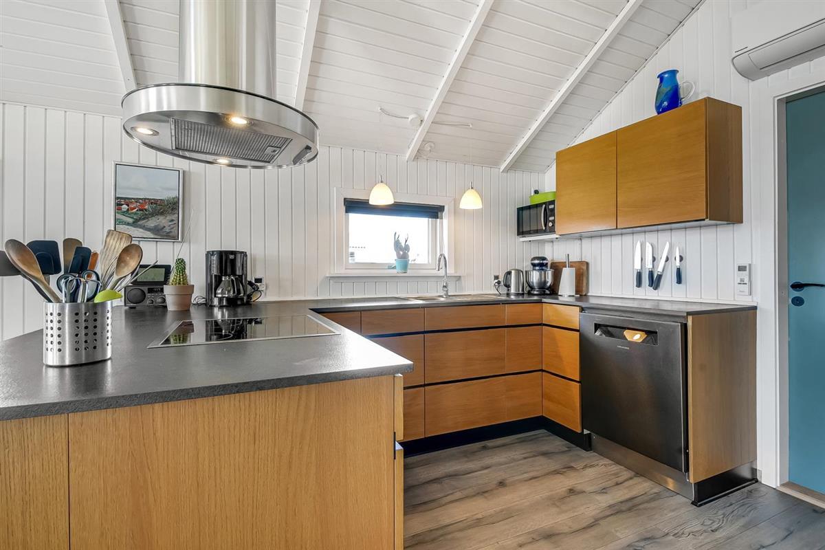 Sehr schönes, neu renoviertes und sehr gepflegtes Ferienhaus aus Holz mit kombinierter Küche/Wohnraum und mit offener Decke. Das Haus ist in hellen Farben gehalten und zusammen mit der großen Fensterpartie gibt es einen guten Lichteinfall. Der Wohnraum ist mit guten Ledermöbeln und einem Esstisch eingerichtet und außerdem gibt es F-TV mit DR-Kanälen und deutschen Kanälen über eine Parabolantenne und Radio. Außerdem gibt es einen ganz neuen Brennofen, der zusammen mit der Wärmepumpe für eine angenehme und gute Wärme sorgt, egal zu welcher Jahreszeit. Die Nebenkosten lassen sich so niedriger halten. Offene Küche mit E-Herd mit Ceranfeld-Kochplatte, Abzugshaube, Kühlschrank mit Gefrierfach, Geschirrspüler. Im Wohnraum und der Küche gibt es Linoleumfußboden. Großes und ganz neu renoviertes Badezimmer mit Toilette, Waschbecken, Dusche und Infra-Rot Saunakabine. 3 schöne Schlafräume: 1DB + 1DB + 1DB. Für die kleinsten Gästen gibt es einen Kinderstuhl. Es gibt natürlich auch eine Waschmaschine und einen Trockner im Haus. 2 Haustiere sind erlaubt. Nichtraucher-Haus.