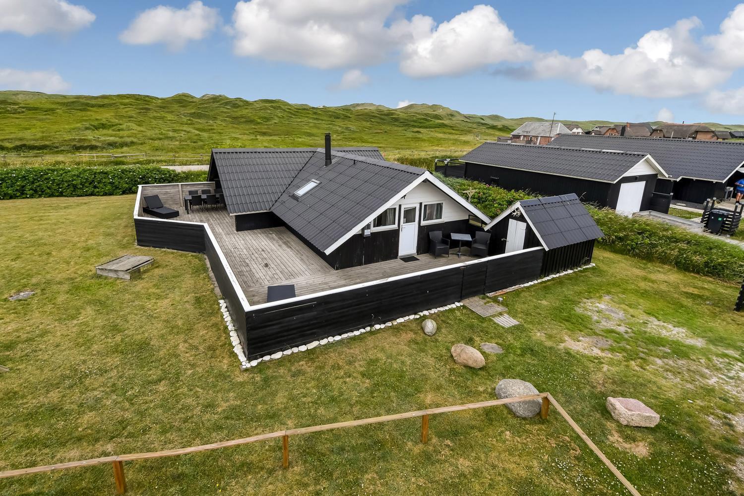 Gut eingerichtetes Ferienhaus aus Holz mit grosser, eingezäunter (60m2) Terrassenanlage mit Panoramablick auf die Dünen bei der Nordsee. Auf einem Naturgrundstück bloss etwa 200 m von der Nordsee und dem Ferring See gelegen. Hier gibt es ausserdem auch freies WLAN. Vom Haus aus gibt es Blick zu den Dünen. Perfekt für ein Paar oder für die kleine Familie.