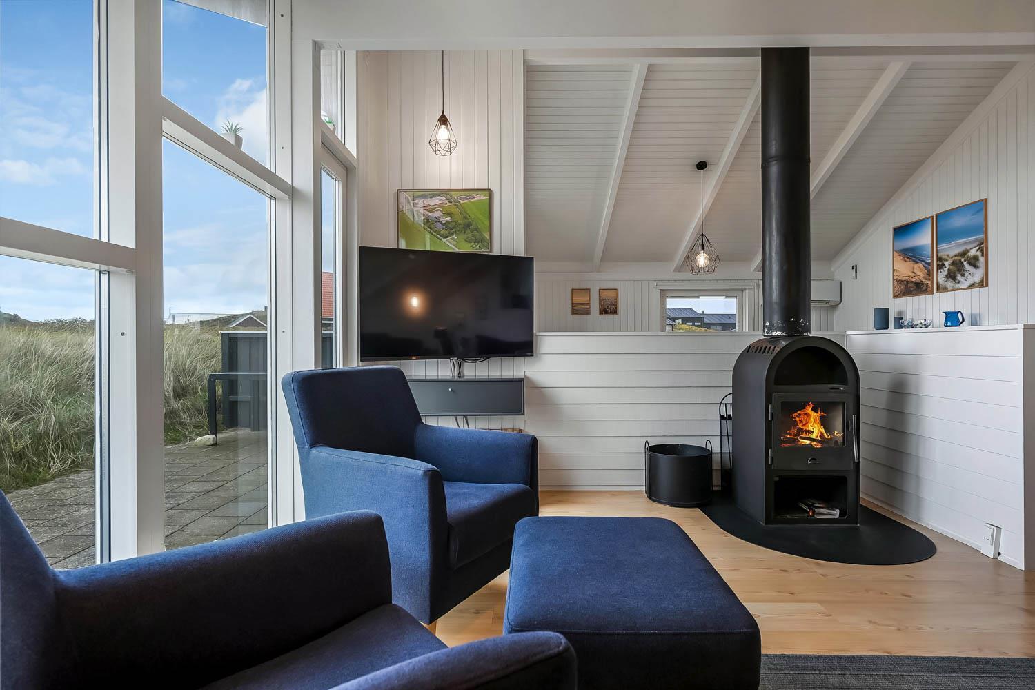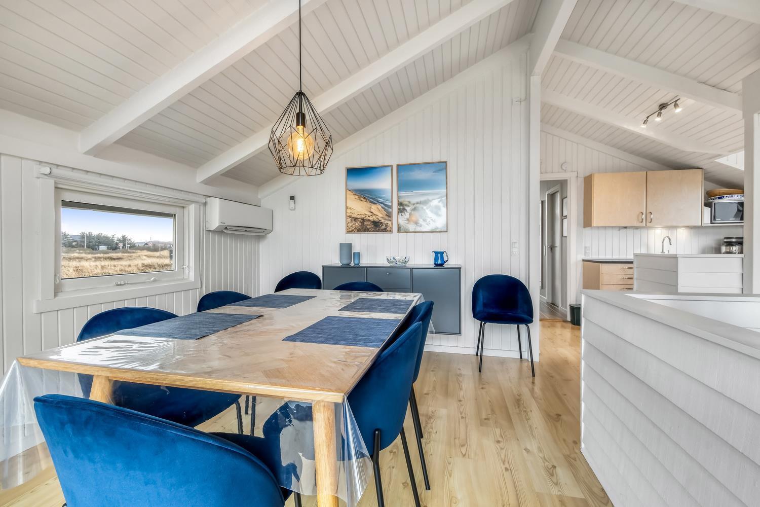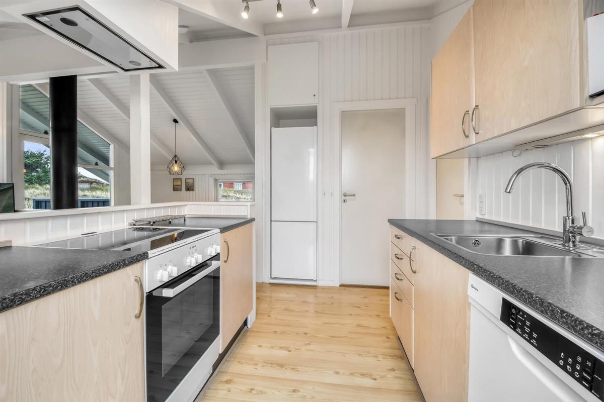 Gut eingerichtetes Holzhaus von 92 m2 mit Decke bis zum Dachfirst. Das Haus wurde 1986 gebaut und zuletzt im Frühjahr 2024 renoviert. Ein heller und praktischer Eingangsbereich mit Platz für Oberbekleidung und Schuhe heißt Sie willkommen. Drei Schlafzimmer (1DB, 1DB, 2EB), max. vier Personen. Küche, Esszimmer und Wohnzimmer des Hauses verschmelzen zu einem großen, fantastischen Raum, von dem aus man einen Blick auf die wunderschönen Dünengebiete rund um das Haus hat. Die Küche verfügt über einen Herd mit Glaskeramikkochfeld, Dunstabzugshaube, Mikrowelle, Geschirrspüler und Kühl-Gefrierkombination. Das abgesenkte Wohnzimmer verfügt über Ledermöbel und einen schönen Brennofen, der zusammen mit der Wärmepumpe dazu beitragen kann, die Heizkosten zu senken. Kostenloses Glasfasernetz. Fernseher mit dänischen und deutschen Programmen, DVD-Player, CD-Player sowie DAB-Radio mit integriertem Bluetooth zum Hören von z.B. Musik oder Hörbücher. Im Großteil des Hauses gibt es praktische Holzböden und in zwei von drei Schlafzimmern Teppiche. Das Haus verfügt über zwei Badezimmer, beide mit Toilette, Waschbecken und Dusche. Das neueste Badezimmer aus dem Jahr 2024 verfügt außerdem über einen Whirlpool, eine Sauna und Fußbodenheizung, während das andere Badezimmer über eine Waschmaschine verfügt. Das Haus verfügt über einen Abstellraum für die Dinge, die Sie verstecken möchten, aber dennoch schnellen und einfachen Zugriff benötigen. Im Schuppen links von der Eingangstür steht ein Grill, ein Sonnenschirm, ein Ascheeimer usw. zur Verfügung. Wenn Sie ein Elektroauto oder einen Plug-in-Hybrid haben, verfügt das Haus über eine Ladebox. Nichtraucherhaus. Keine Haustiere erlaubt.