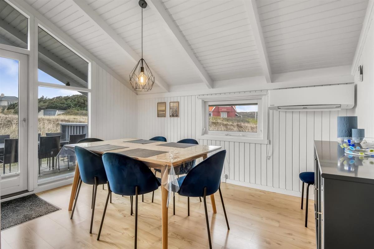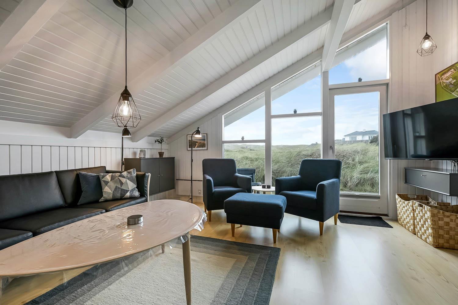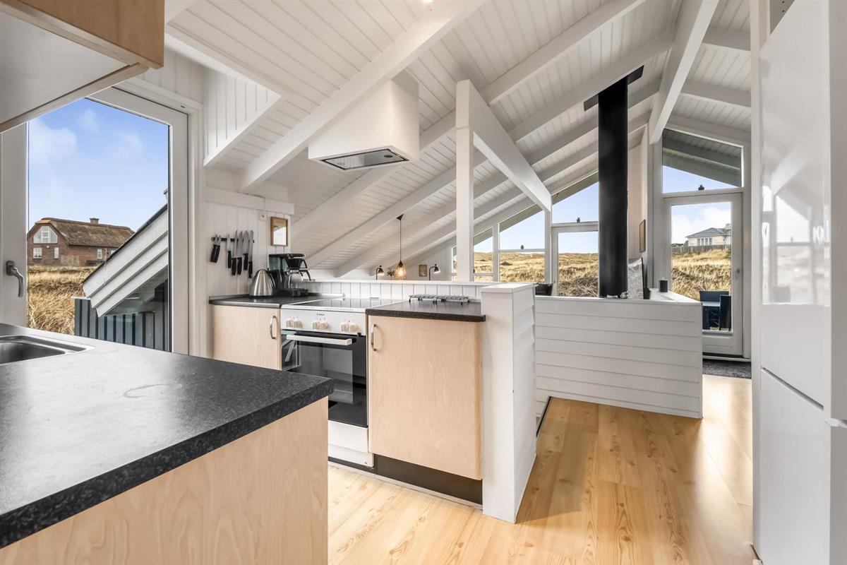 Gut eingerichtetes Holzhaus von 92 m2 mit Decke bis zum Dachfirst. Das Haus wurde 1986 gebaut und zuletzt im Frühjahr 2024 renoviert. Ein heller und praktischer Eingangsbereich mit Platz für Oberbekleidung und Schuhe heißt Sie willkommen. Drei Schlafzimmer (1DB, 1DB, 2EB), max. vier Personen. Küche, Esszimmer und Wohnzimmer des Hauses verschmelzen zu einem großen, fantastischen Raum, von dem aus man einen Blick auf die wunderschönen Dünengebiete rund um das Haus hat. Die Küche verfügt über einen Herd mit Glaskeramikkochfeld, Dunstabzugshaube, Mikrowelle, Geschirrspüler und Kühl-Gefrierkombination. Das abgesenkte Wohnzimmer verfügt über Ledermöbel und einen schönen Brennofen, der zusammen mit der Wärmepumpe dazu beitragen kann, die Heizkosten zu senken. Kostenloses Glasfasernetz. Fernseher mit dänischen und deutschen Programmen, DVD-Player, CD-Player sowie DAB-Radio mit integriertem Bluetooth zum Hören von z.B. Musik oder Hörbücher. Im Großteil des Hauses gibt es praktische Holzböden und in zwei von drei Schlafzimmern Teppiche. Das Haus verfügt über zwei Badezimmer, beide mit Toilette, Waschbecken und Dusche. Das neueste Badezimmer aus dem Jahr 2024 verfügt außerdem über einen Whirlpool, eine Sauna und Fußbodenheizung, während das andere Badezimmer über eine Waschmaschine verfügt. Das Haus verfügt über einen Abstellraum für die Dinge, die Sie verstecken möchten, aber dennoch schnellen und einfachen Zugriff benötigen. Im Schuppen links von der Eingangstür steht ein Grill, ein Sonnenschirm, ein Ascheeimer usw. zur Verfügung. Wenn Sie ein Elektroauto oder einen Plug-in-Hybrid haben, verfügt das Haus über eine Ladebox. Nichtraucherhaus. Keine Haustiere erlaubt.