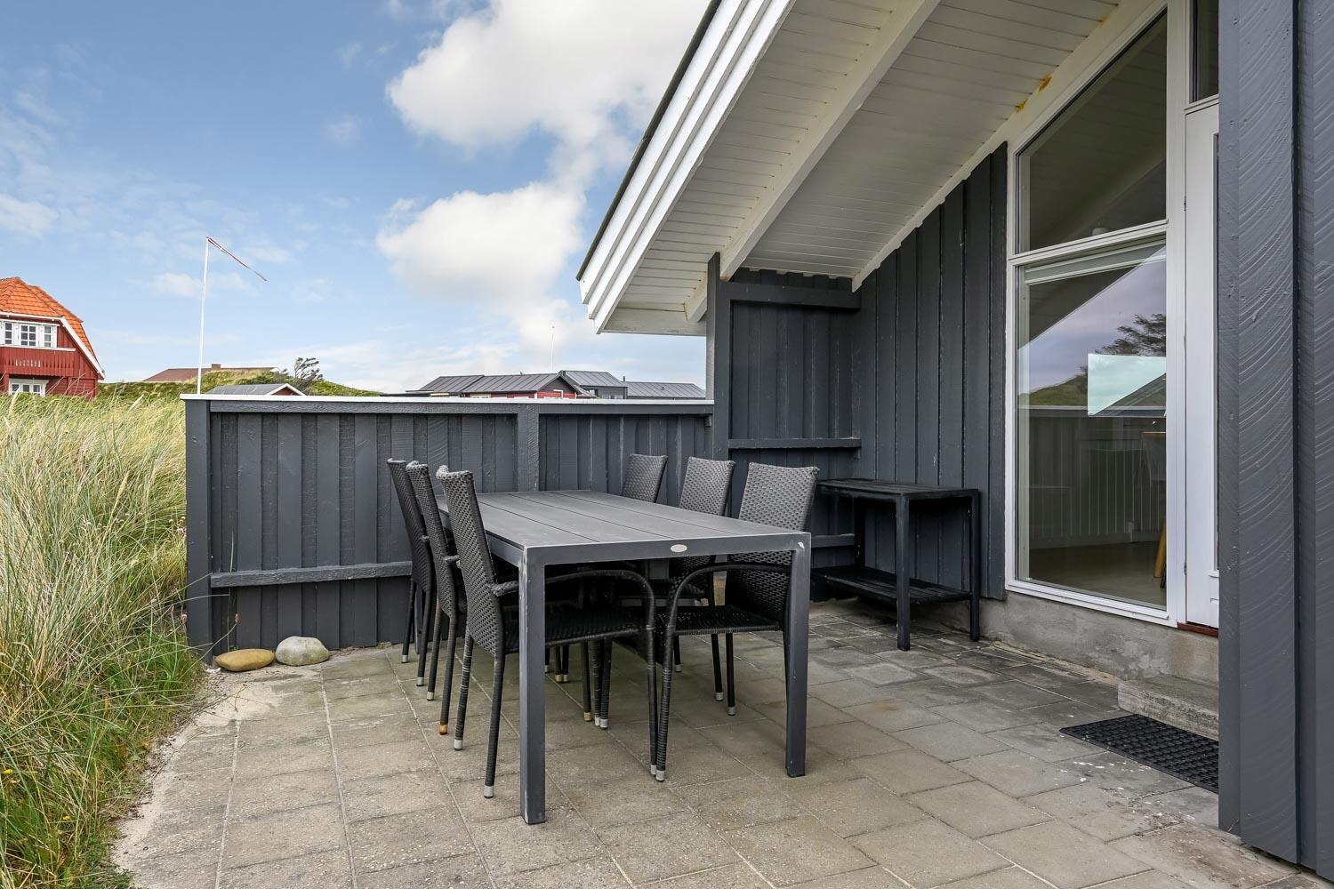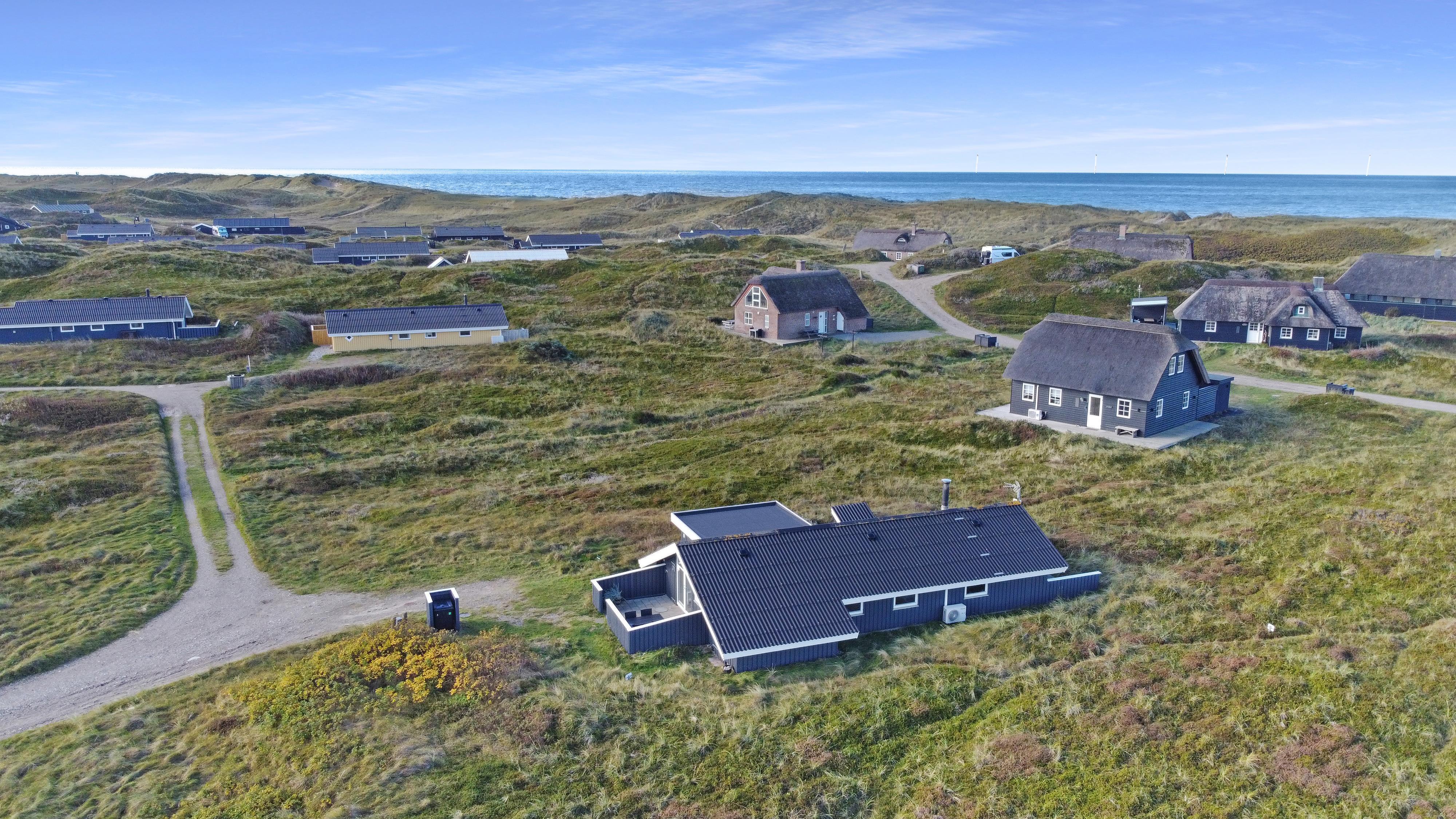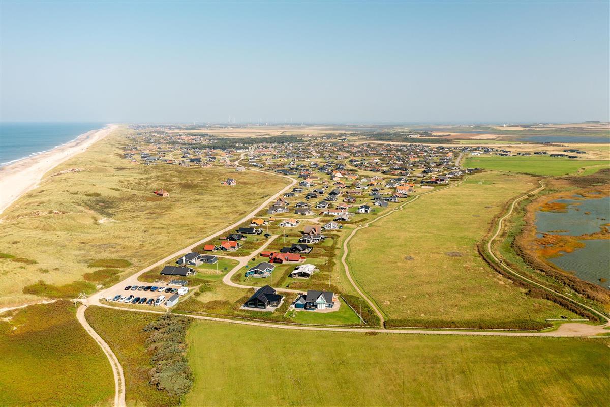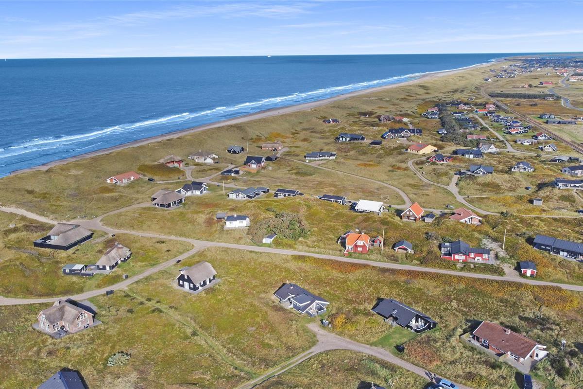 Das Haus liegt auf einem 1.354 m2 großen Dünengrundstück. Es gibt Zugang zu drei schönen Terrassen. Die größte Terrasse im Westen ist teilweise überdacht. Da sind Gartenmöbel und Sonnenliegen zur Verfügung. Von den Terrassen aus können Sie das Meeresrauschen hören, während Sie den Blick auf die hohen Dünen genießen. Ein unglaublich schönes Haus, in dem an das meiste gedacht wurde und mit vielen Möglichkeiten. Der Strand und die Nordsee sind nur 5 Gehminuten vom Haus entfernt und die Natur lädt immer zu einem erfrischenden Spaziergang oder Lauf ein. Alternativ können Sie ein Pausenbrot mitnehmen und die schöne 10 km lange Wanderung rund um Ferring Sø unternehmen. Der Lebensmittelladen in Vejlby Klit ist saisonal geöffnet und liegt 1,5 km mit dem Auto vom Haus entfernt (oder 1 km mit dem Fahrrad oder zu Fuß über einen Weg zum Viktoriavej). In der Saison bietet der Lebensmittelhändler frisches Frühstücksbrot an, auch der tägliche Einkauf kann hier erledigt werden. Gegenüber dem Lebensmittelgeschäft befindet sich das „Café John Wayne“, wo Sie draußen oder drinnen ein gutes Essen, ein Glas Bier oder Wein, eine Tasse Kaffee oder ein Eis genießen können. Kulturelle Sehenswürdigkeiten, Einkaufsmöglichkeiten und diverse Sportaktivitäten sind mit dem Auto in max. zirka 20 Minuten zu erreichen. Vom örtlichen Bahnhof „Victoria Street Station“ können Sie mit dem Zug entweder in Richtung Lemvig oder Thyborøn fahren und so eine der schönsten Zugstrecken Dänemarks erleben. Ob Sie einen aktiven Urlaub verbringen oder sich völlig entspannen möchten, dieses schöne Ferienhaus bietet sowohl in Bezug auf das Haus als auch auf die Lage und die Umgebung einen schönen Rahmen.