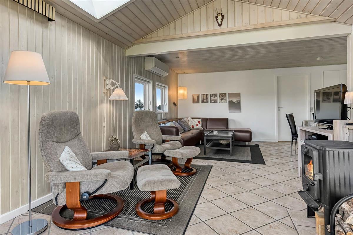 Gemütliches Ferienhaus bloss 100 m von der Nordsee entfernt. Das Haus ist hell und freundlich eingerichtet und hat eine neue Gartenstube bekommen, und die grossen Fenstern sorgen für einen schönen Lichteinfall im Haus. In der Küche und dem Wohnraum gibt es Fliesenboden und die Wände und Decken sind weiss gestrichen. Im Wohnraum gibt es Ledermöbel, Farb-TV mit dänischen und deutschen Programmen und einen CD-Spieler. Es gibt WLAN im Haus. Die Küche ist ausgestattet mit E-Herd, Kühlschrank mit Gefrierfach und Geschirrspüler. Es gibt 4 Schlafräume: 1DB + 1DB + 1DB +1DB. Das Badezimmer ist mit Toilette, Waschbecken und Dusche und hier haben Sie auch einen Zugang zur Sauna. Das Bad ist mit Fussbodenheizung ausgestattet. Waschmaschine und Trockner sind vorhanden. Es gibt ein Carport für Ihr Auto. Ausserdem ist eine Wärmepumpe installiert worden, die für eine schöne und günstigere Wärme sorgt. Haustiere sind nicht erlaubt.