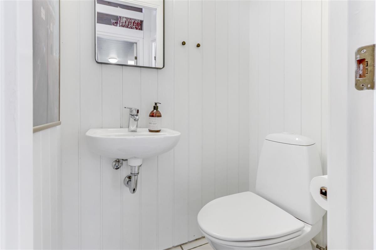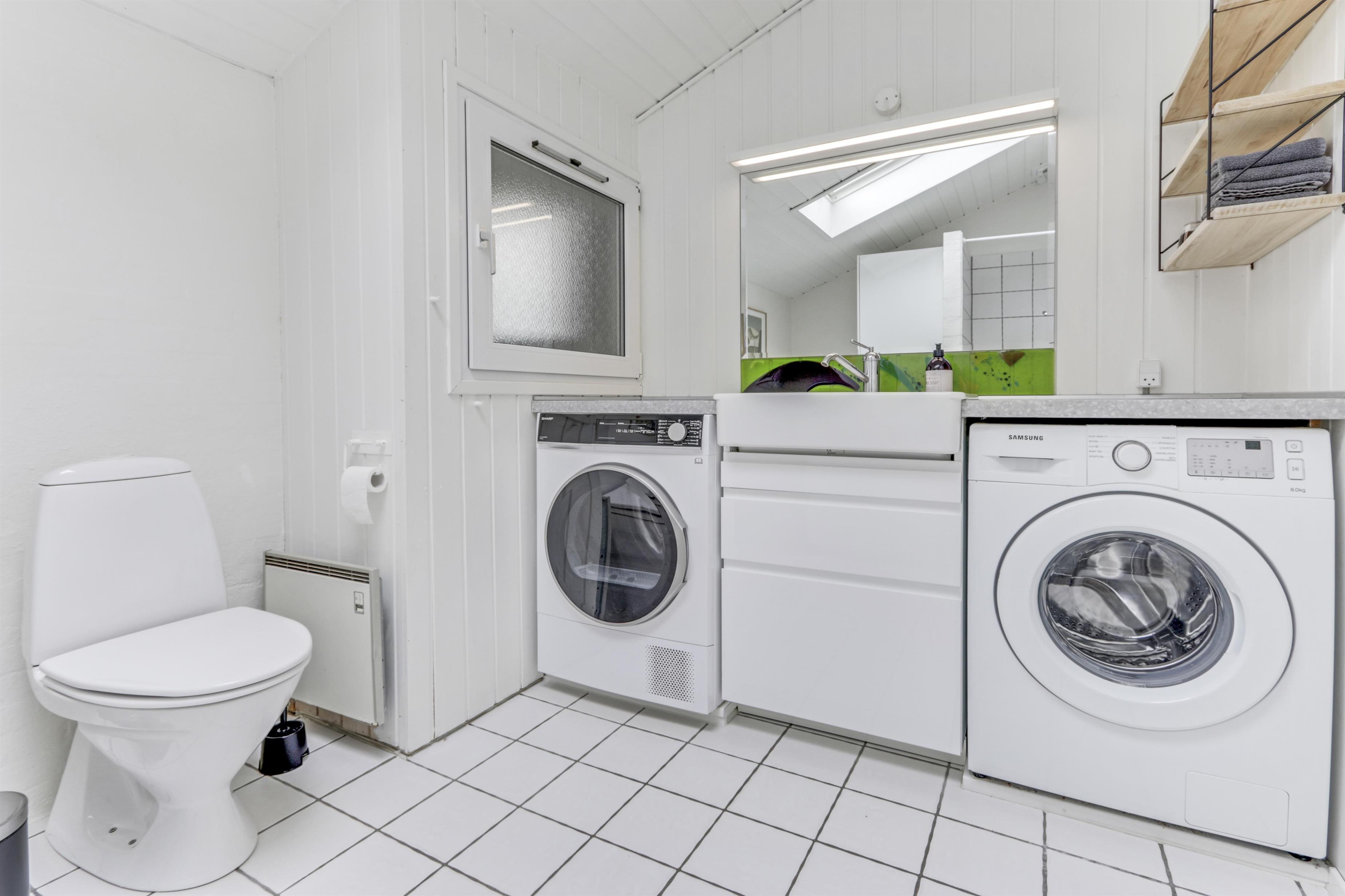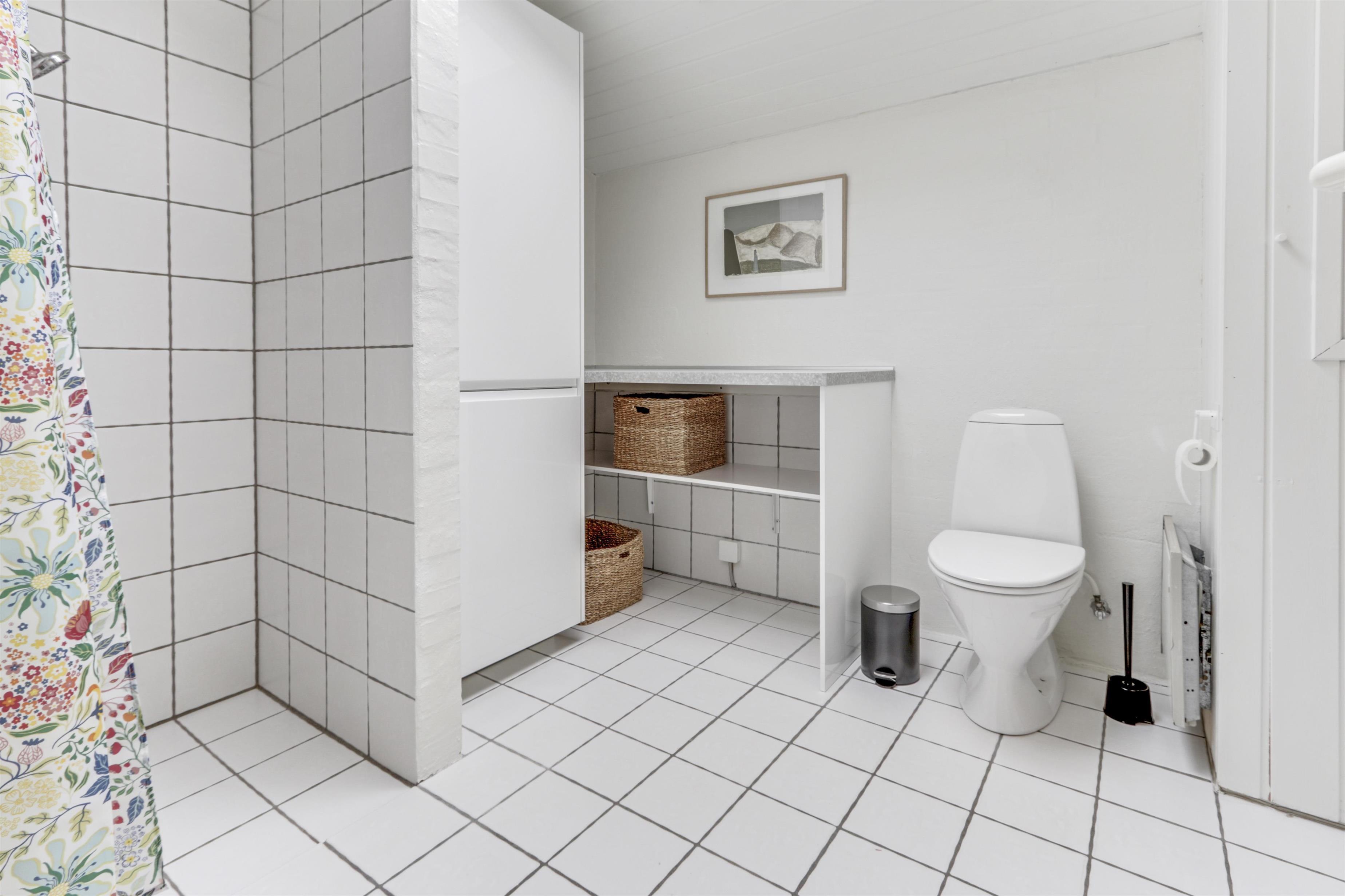 Das Haus verfügt über zwei moderne Badezimmer: das große Badezimmer ist mit Toilette, Waschbecken, Dusche und Fußbodenheizung ausgestattet. Zusätzlich gibt es ein Gäste-WC mit Waschbecken, Toilette und ebenfalls Fußbodenheizung. Im gesamten Haus befinden sich pflegeleichte Böden.