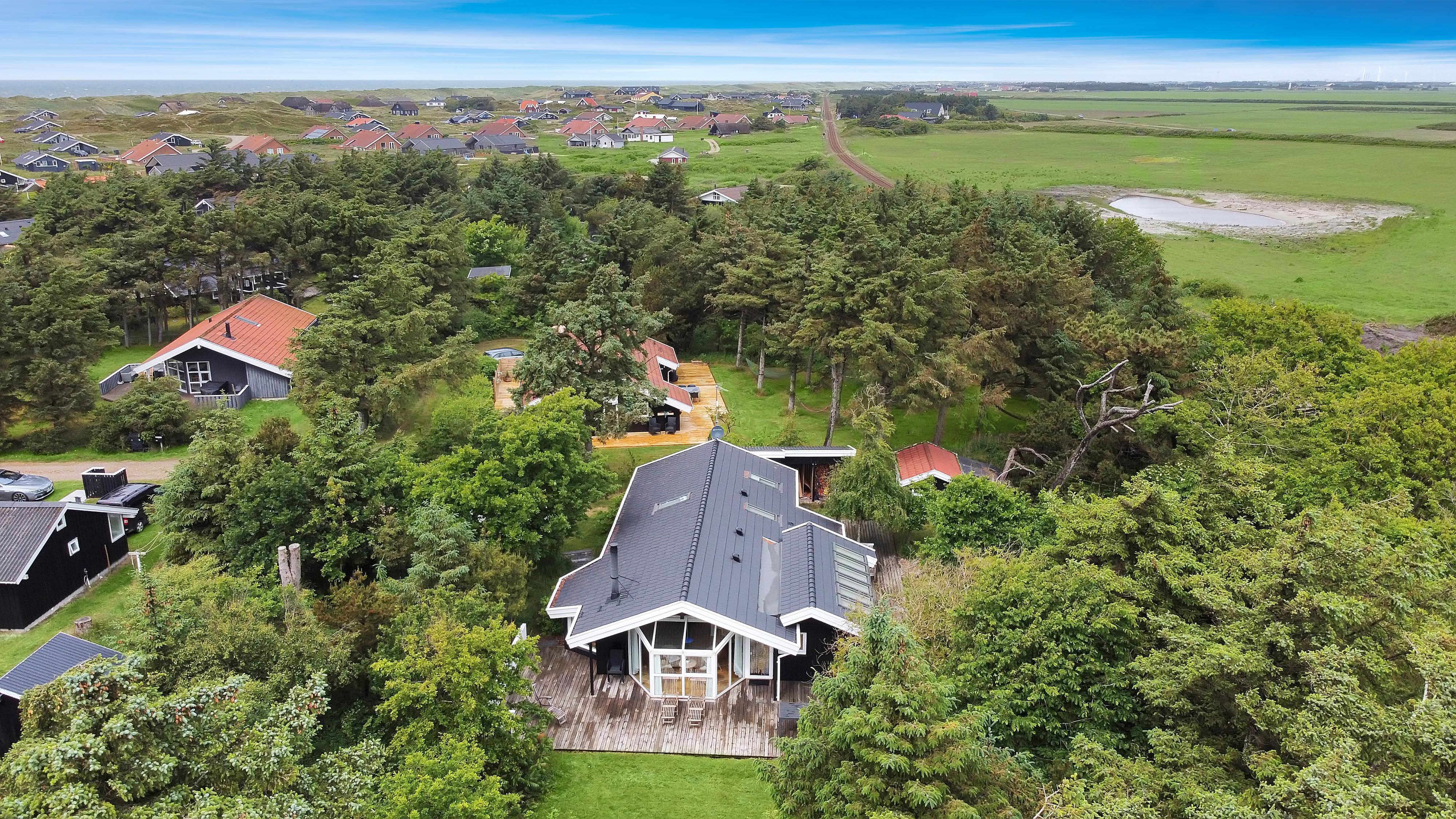 Die rauschenden Wellen der Nordsee sind nur 250 Meter entfernt – perfekt zum Baden, Sandburgen bauen, Drachen steigen lassen oder für lange Spaziergänge in der wunderschönen Natur. Auch der Ferring See ist zu Fuß erreichbar und bietet eine schöne Wanderroute rund um den See. Die Region verfügt außerdem über einige der besten Rad- und Wanderwege Westjütlands, auf denen Sie gleichzeitig See und Meer erleben können.