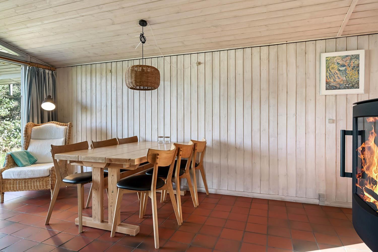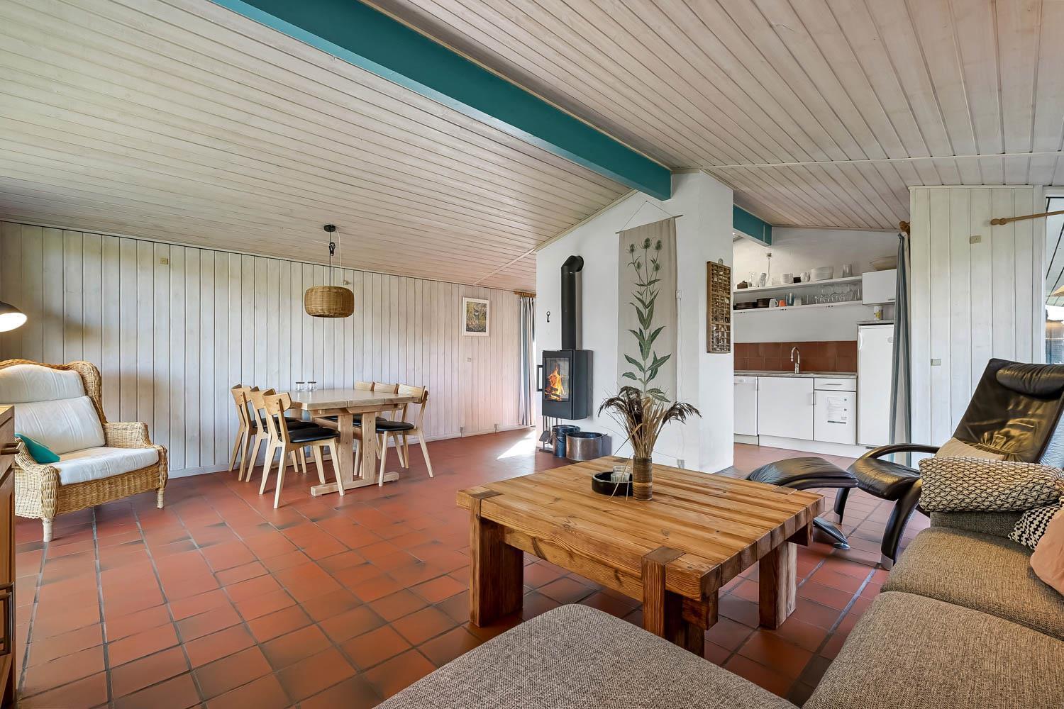 Gut genutztes Ferienhaus von etwa 90 m2 mit 3 Schlafzimmern (1DB, 1E, 1EB-120 x 200). Vom Wohnzimmer und von allen Schlafzimmern aus haben Sie einen Panoramablick auf die hohen Dünen an der Nordsee. Das Haus wurde zuletzt im Jahr 2013 renoviert und ist mit Polstermöbeln, Essbereich, Fernseher mit dänischen und deutschen Programmen und Chromecast ausgestattet, der das Streaming von TV / Radio / Apps und DVD-Player ermöglicht. Ein gemütlicher Kaminofen und eine Wärmepumpe sorgen für eine günstigere Stromrechnung und zusätzliche Gemütlichkeit und Wärme für die kühlerern Tage an der Nordsee. Praktische Küchenecke mit u.a. Geschirrspüler, Keramikkochfeld, eingebautem Backofen, Dunstabzugshaube und Kühlschrank mit Gefrierfach. Schönes Badezimmer mit Toilette, Waschbecken, Dusche und Fliesenboden mit Fußbodenheizung und Waschmaschine. Es gibt praktische Fliesenböden mit Fußbodenheizung im ganzen Haus. Haustier nicht erlaubt. Nichtraucher-Haus.