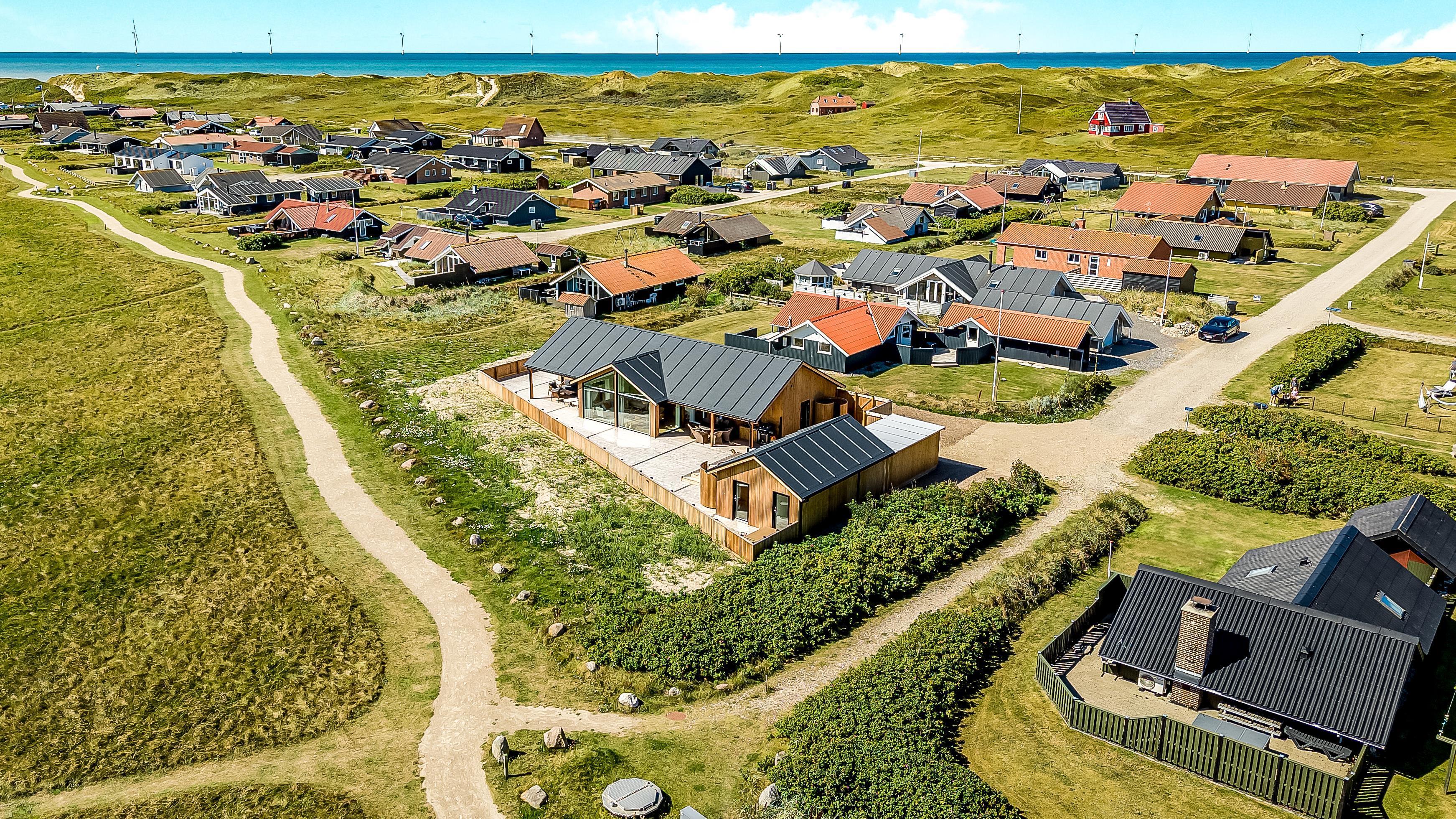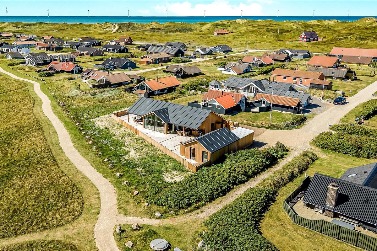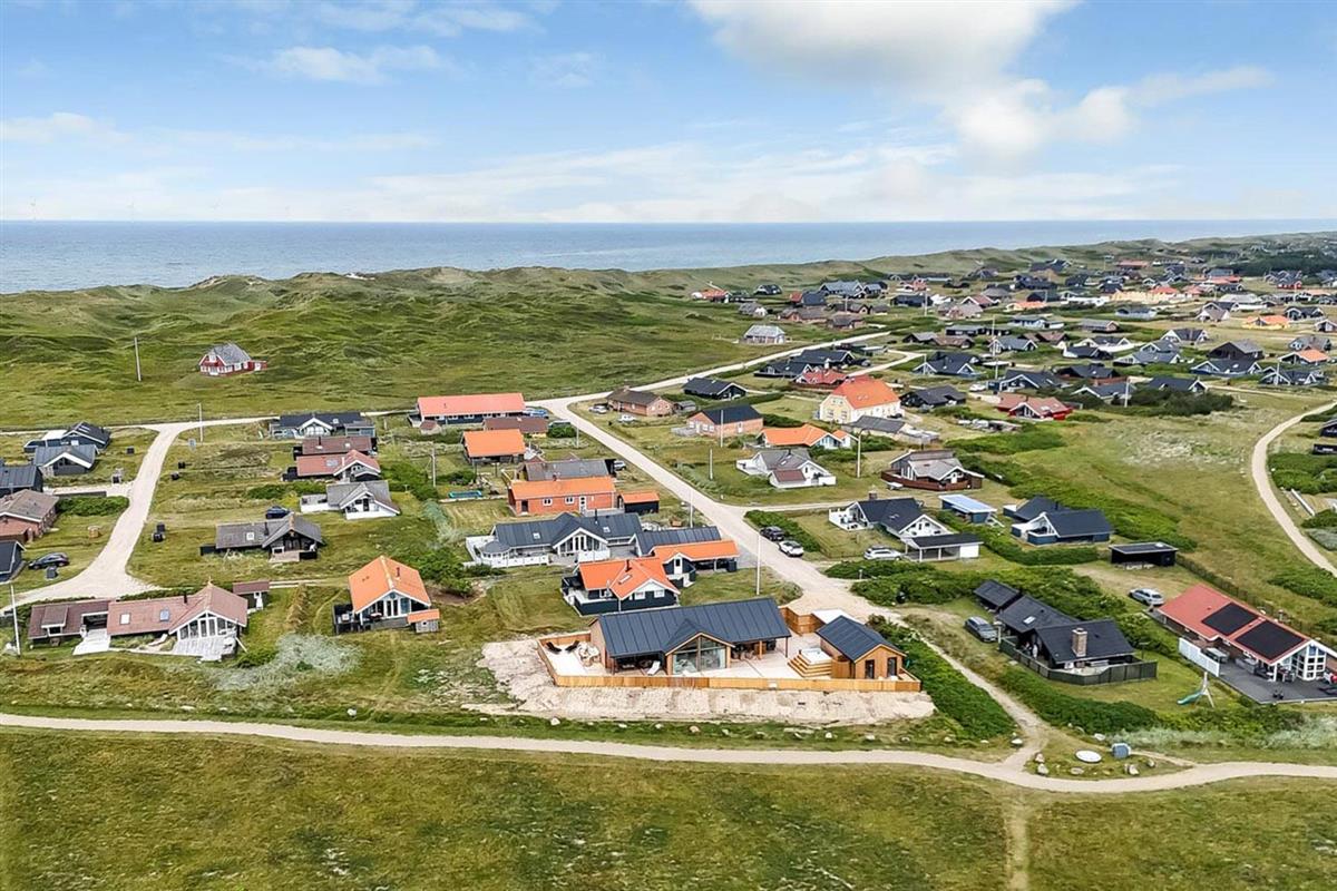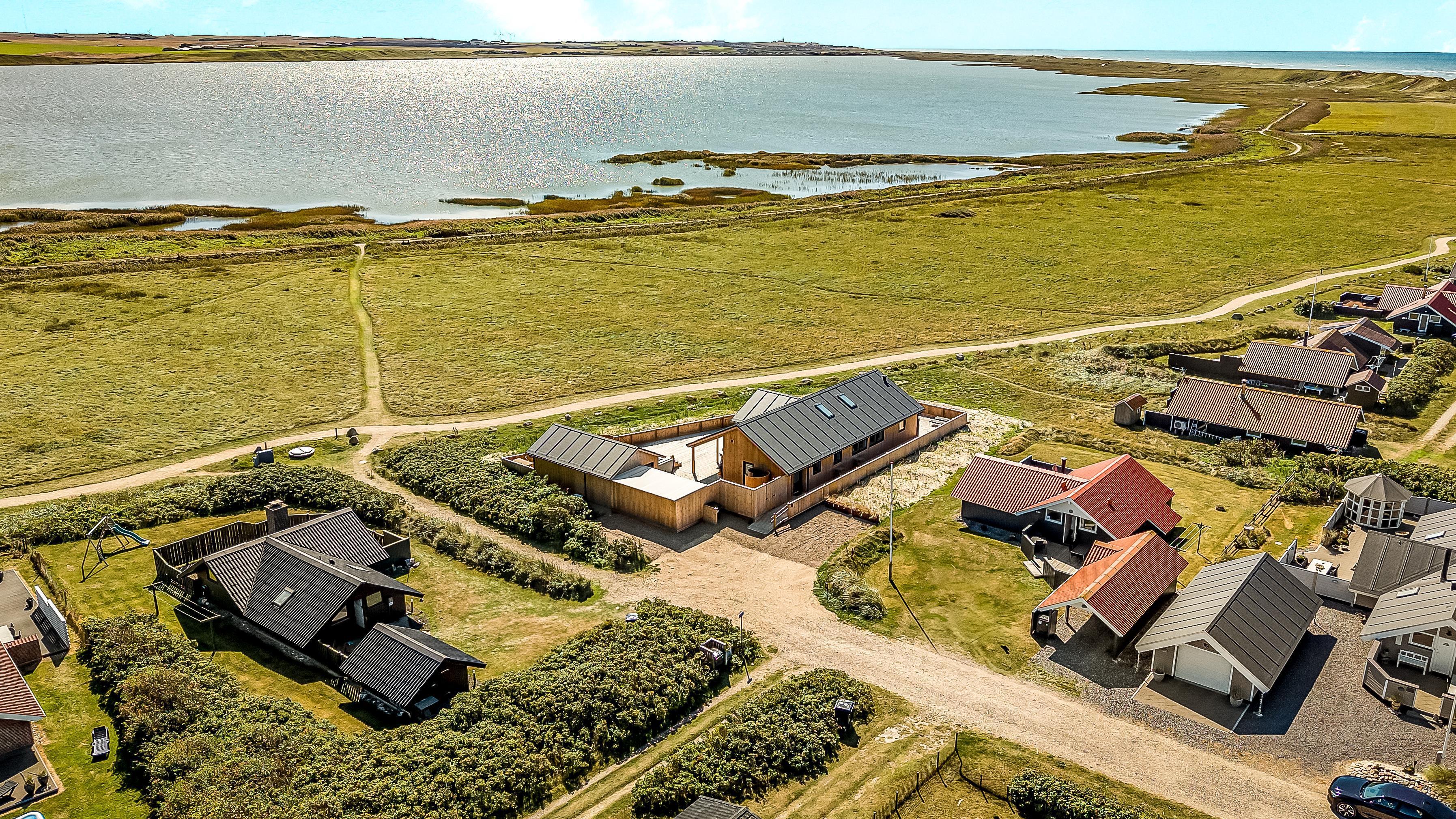 Es gibt viel Platz auf dem 1.000 qm großen, einzigartigen Naturgrund; auf der großartigen Terrassen-Anlage gibt es viele Möglichkeiten, einen Platz in der Sonne oder im Schatten zu finden. Die Außenbereiche sind ein Kapitel für sich. Die etwa 150 qm große, gepflegte und teilweise überdachte Terrasse ist mit einer Außen-Küche, Whirlpool und Gartenmöbeln ausgestattet. Auch von hier gibt es einen tollen Blick und es ist an das Meiste gedacht. Schöne Außen-Küche mit großem Grill, Waschbecken mit kaltem warmem Wasser, so dass die Möglichkeit besteht, auf der Terrasse das Essen zuzubereiten und gleichzeitig mit der Familie/Freunden zusammen zu sein; es gibt viele Gartenmöbel und Sonnenliegen. Ein Gang in den Außen-Whirlpool schafft ein besonderes Erlebnis, besonders am dunklen Abend mit klarem Sternenhimmel; außerdem gibt es auf der Terrasse 2 Außen-Duschen, wovon die eine am Anbau beim Whirlpool liegt, damit man direkt vor dem Besuch des Whirlpools duschen kann. Ein einzigartiges Erlebnis, die reinste Therapie für Körper und Seele. Das Haus ist auf einem der besten Grundstücke in Vejlby Klit gelegen, fast ganz ungestört und weit von der Straße entfernt. Im Anbau gibt es eine schöne Sauna und einen Aktivitätsraum mit z.B., Tischfussball, Dart und ein Heimtrainer, so dass es auch insoweit viele Aktivitätsmöglichkeiten im Urlaub gibt, es gibt auch im Anbau ein Abstellraum wo Sie abschliessen können. Von dem Grundstück aus können Sie auf einem kleinen Weg durch das Naturschutzgebiet einfach zum Ferring See gelangen, der bloß 80 m weit entfernt liegt. Um den Ferring See herum gibt es einen Wanderweg, wo Sie dicht an die Natur gelangen. Die Nordsee liegt bloß 300 m vom Haus entfernt, so dass es ist nicht weit ist zu Strandvergnügungen wie etwa Baden, Drachen steigen lassen, Angeln oder Wanderungen an der frischen Luft, wo Sie sich zwischendurch vom Wind durchblasen lassen können. Die Nordseewasserkante ist bloß 300 m vom Haus entfernt. Außerdem liegt das Haus in der Nähe der schönsten Fahrrad-Wanderrouten Westjütlands, wo Sie die Möglichkeit haben, See und Meer gleichzeitig zu sehen, und in der Nähe von Einkaufsmöglichkeiten und Restaurant. Das nächste saisonale Lebensmittelgeschäft ist nur 400 m entfernt am Vejlby Torv gelegen, wo es auch ein Café / Restaurant gibt. Wir empfehlen auch einen Besuch der Hafenstadt Thyborøn, 15 km nördlich des Sommerhauses, oder der alten Marktstadt Lemvig, 13 km östlich. Dieses Haus bietet eine einzigartige Lage und Aussicht und eignet sich für Paare oder Familien, die in Meeresnähe auf einem einzigartigen Grundstück wohnen und ein ganz besonderes Erlebnis wünschen, das sie nie vergessen werden.