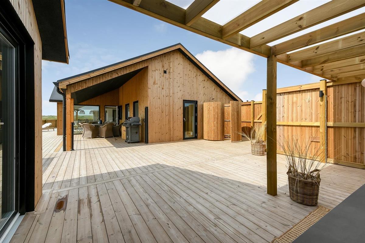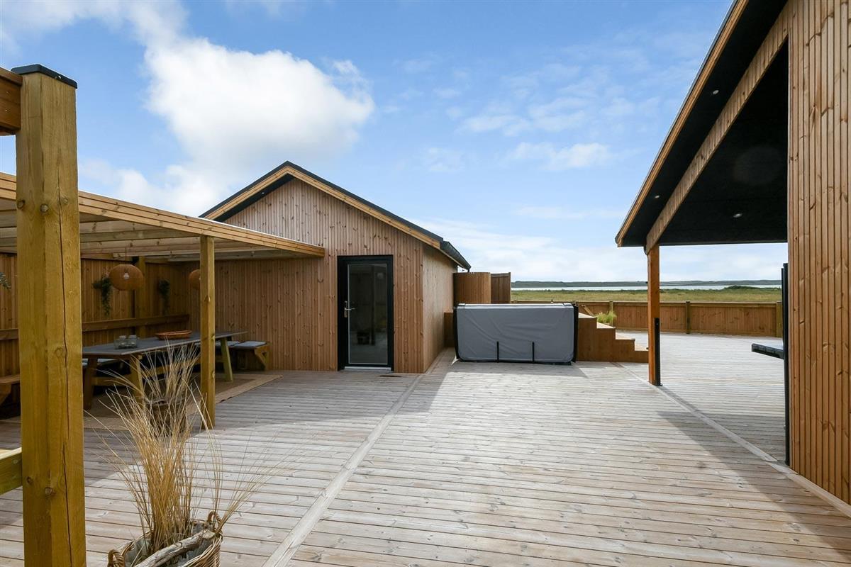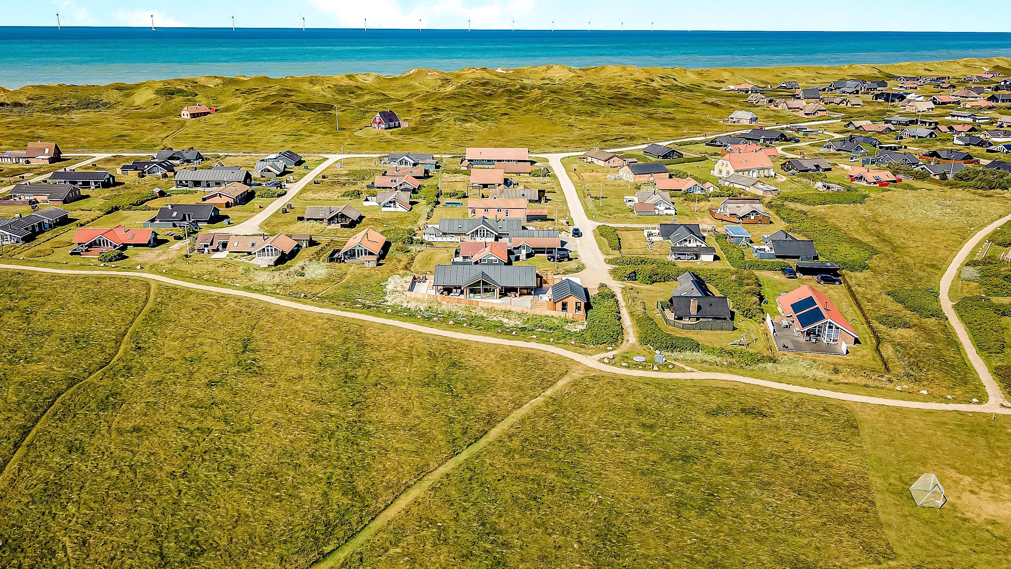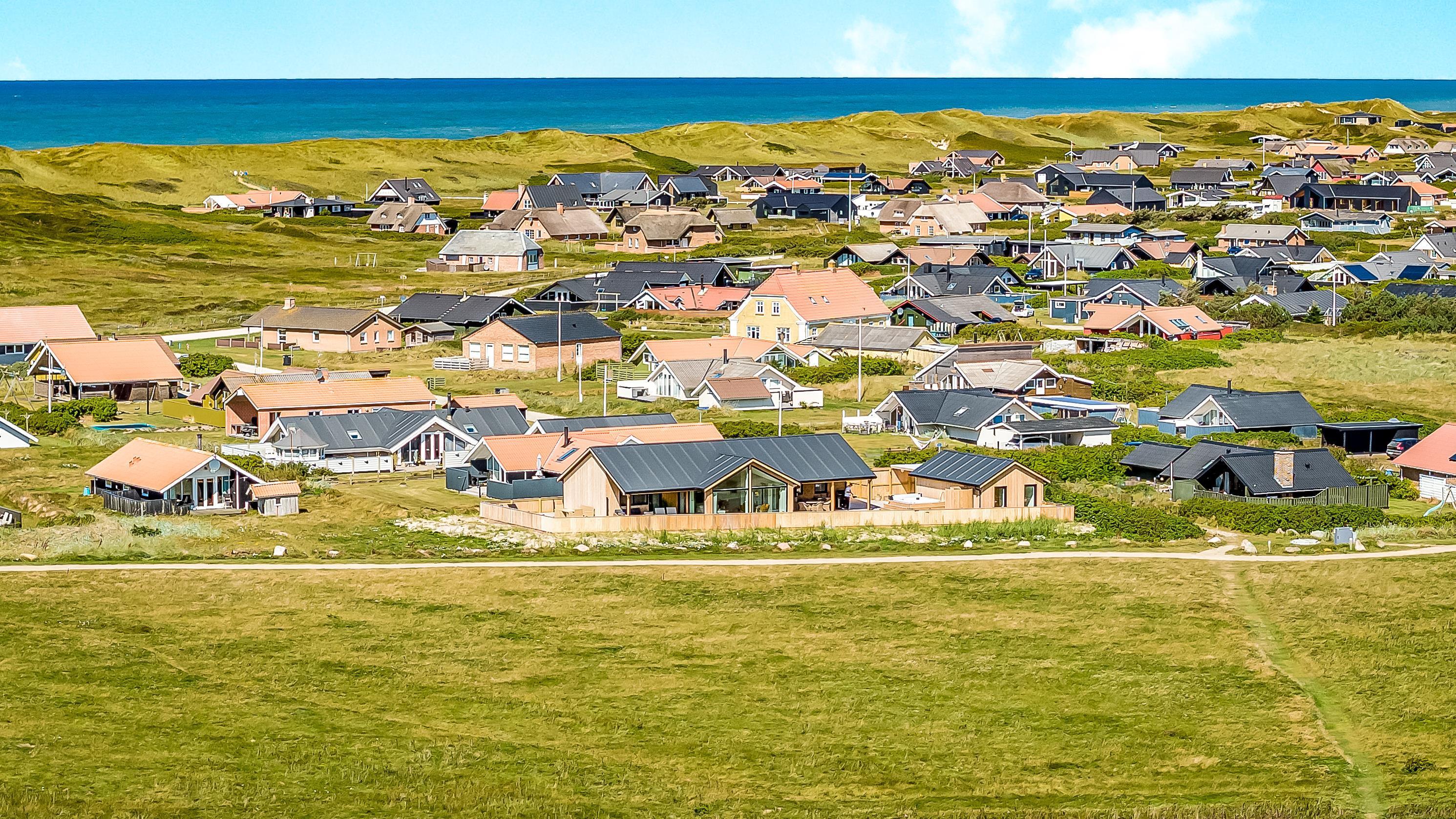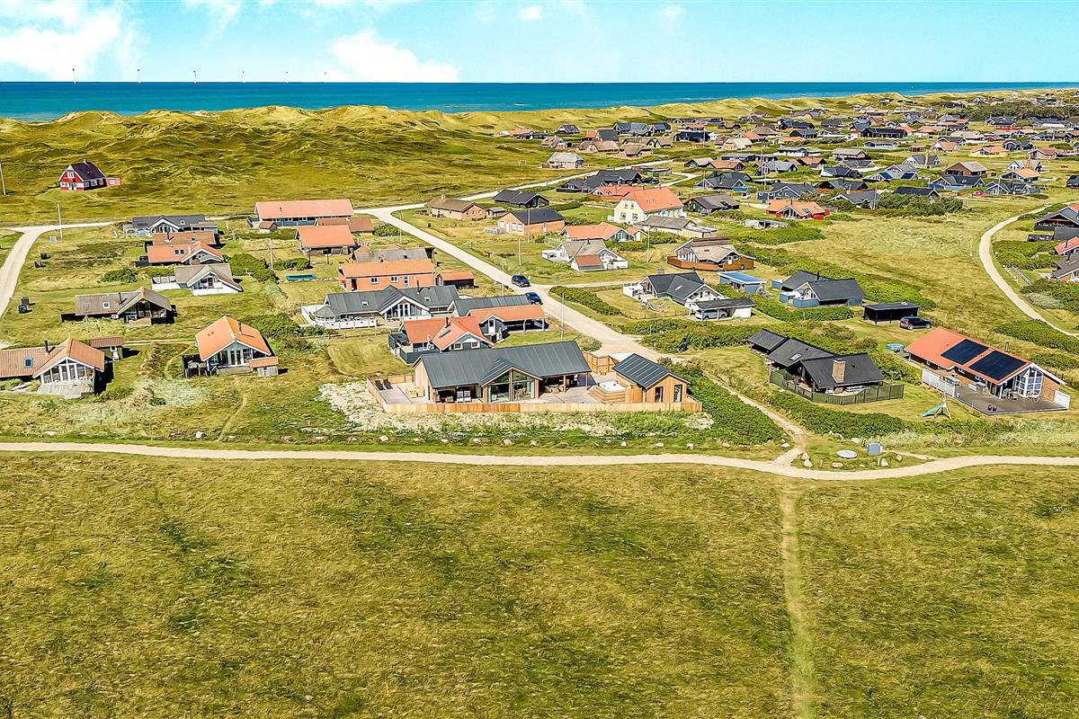 Es gibt viel Platz auf dem 1.000 qm großen, einzigartigen Naturgrund; auf der großartigen Terrassen-Anlage gibt es viele Möglichkeiten, einen Platz in der Sonne oder im Schatten zu finden. Die Außenbereiche sind ein Kapitel für sich. Die etwa 150 qm große, gepflegte und teilweise überdachte Terrasse ist mit einer Außen-Küche, Whirlpool und Gartenmöbeln ausgestattet. Auch von hier gibt es einen tollen Blick und es ist an das Meiste gedacht. Schöne Außen-Küche mit großem Grill, Waschbecken mit kaltem warmem Wasser, so dass die Möglichkeit besteht, auf der Terrasse das Essen zuzubereiten und gleichzeitig mit der Familie/Freunden zusammen zu sein; es gibt viele Gartenmöbel und Sonnenliegen. Ein Gang in den Außen-Whirlpool schafft ein besonderes Erlebnis, besonders am dunklen Abend mit klarem Sternenhimmel; außerdem gibt es auf der Terrasse 2 Außen-Duschen, wovon die eine am Anbau beim Whirlpool liegt, damit man direkt vor dem Besuch des Whirlpools duschen kann. Ein einzigartiges Erlebnis, die reinste Therapie für Körper und Seele. Das Haus ist auf einem der besten Grundstücke in Vejlby Klit gelegen, fast ganz ungestört und weit von der Straße entfernt. Im Anbau gibt es eine schöne Sauna und einen Aktivitätsraum mit z.B., Tischfussball, Dart und ein Heimtrainer, so dass es auch insoweit viele Aktivitätsmöglichkeiten im Urlaub gibt, es gibt auch im Anbau ein Abstellraum wo Sie abschliessen können. Von dem Grundstück aus können Sie auf einem kleinen Weg durch das Naturschutzgebiet einfach zum Ferring See gelangen, der bloß 80 m weit entfernt liegt. Um den Ferring See herum gibt es einen Wanderweg, wo Sie dicht an die Natur gelangen. Die Nordsee liegt bloß 300 m vom Haus entfernt, so dass es ist nicht weit ist zu Strandvergnügungen wie etwa Baden, Drachen steigen lassen, Angeln oder Wanderungen an der frischen Luft, wo Sie sich zwischendurch vom Wind durchblasen lassen können. Die Nordseewasserkante ist bloß 300 m vom Haus entfernt. Außerdem liegt das Haus in der Nähe der schönsten Fahrrad-Wanderrouten Westjütlands, wo Sie die Möglichkeit haben, See und Meer gleichzeitig zu sehen, und in der Nähe von Einkaufsmöglichkeiten und Restaurant. Das nächste saisonale Lebensmittelgeschäft ist nur 400 m entfernt am Vejlby Torv gelegen, wo es auch ein Café / Restaurant gibt. Wir empfehlen auch einen Besuch der Hafenstadt Thyborøn, 15 km nördlich des Sommerhauses, oder der alten Marktstadt Lemvig, 13 km östlich. Dieses Haus bietet eine einzigartige Lage und Aussicht und eignet sich für Paare oder Familien, die in Meeresnähe auf einem einzigartigen Grundstück wohnen und ein ganz besonderes Erlebnis wünschen, das sie nie vergessen werden.