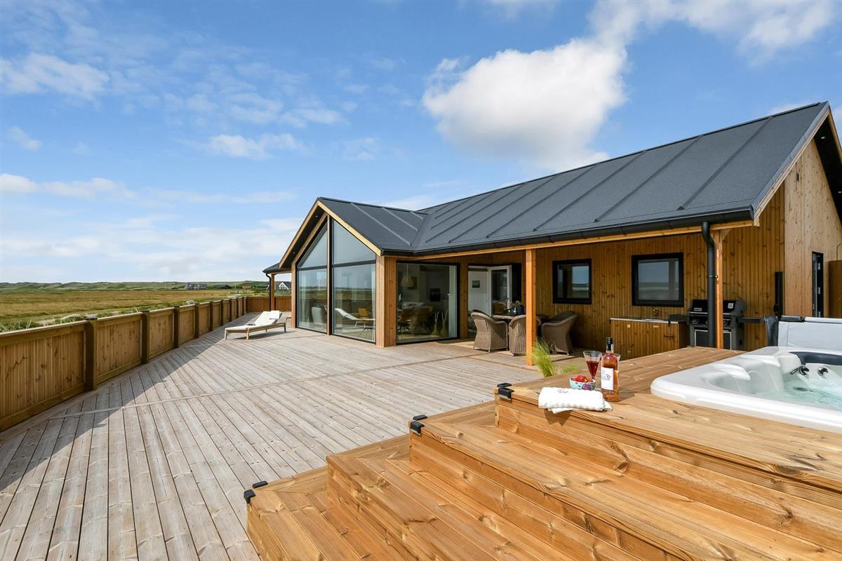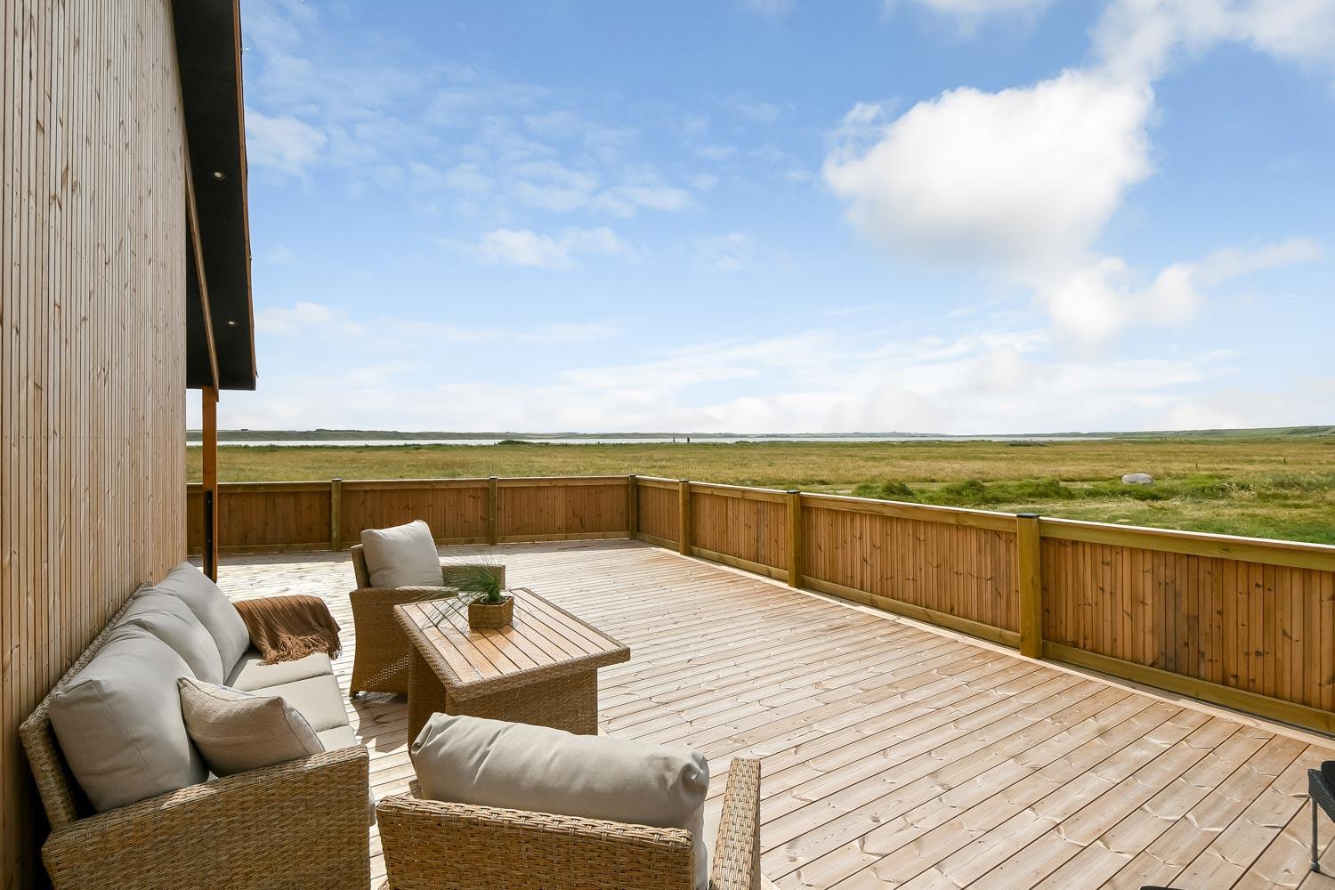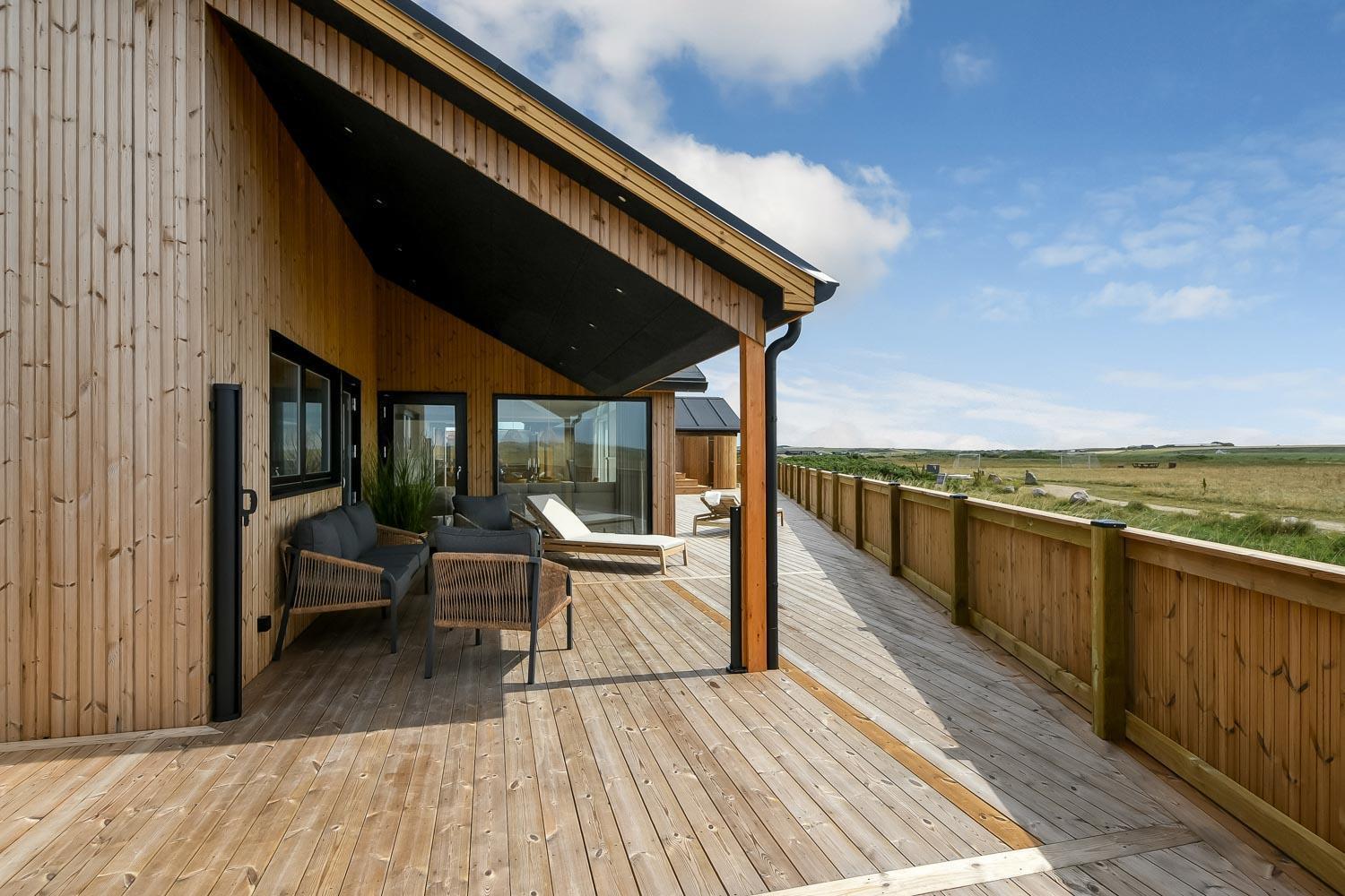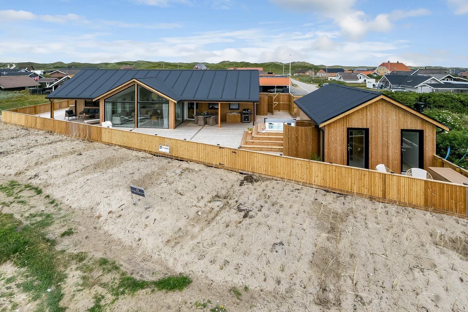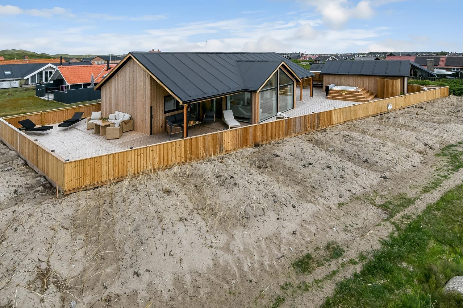 Ein vom Architekten entworfenes, neugebautes Luxushaus in einzigartiger, fantastischer Lage. Das Haus liegt als erstes Haus zum Naturschutzgebiet und dem Ferring See; vom Haus und der Terrasse haben Sie einen großartigen Panoramablick. Dieses schöne Ferienhaus aus Holz ist etwas ganz Besonderes. Es gibt eine sehr große eingezäunte Terrasse um das Haus herum, die teilweise überdacht ist und z.B. über einen Außen-Whirlpool und 2 Außen-Duschen mit Kalt- und Warmwasser verfügt. Es gibt freies Glasfasernetz im Haus. Das Haus ist für 6 Personen eingerichtet, die diesen Luxus genießen können. Eine ruhige Zeit, ein Platz in der Sonne sind etwas, das das Haus bietet. Das Haus ist topisoliert und aus bestem Material hergestellt; es ist deswegen - egal zu welcher Jahreszeit - sehr geeignet für Ihren Urlaub.