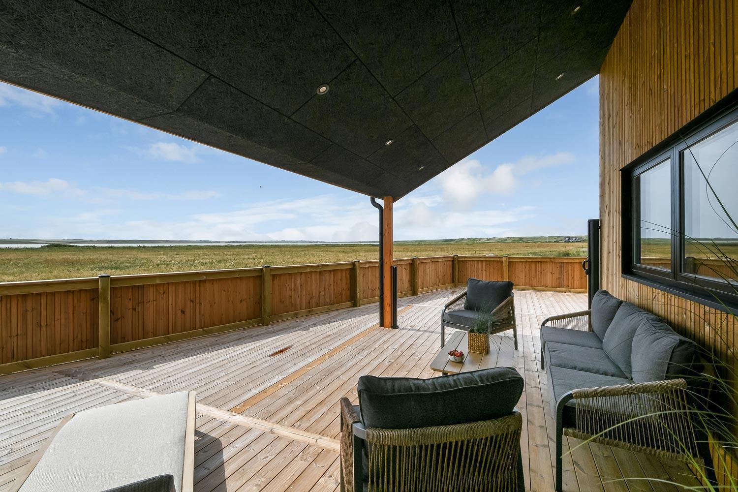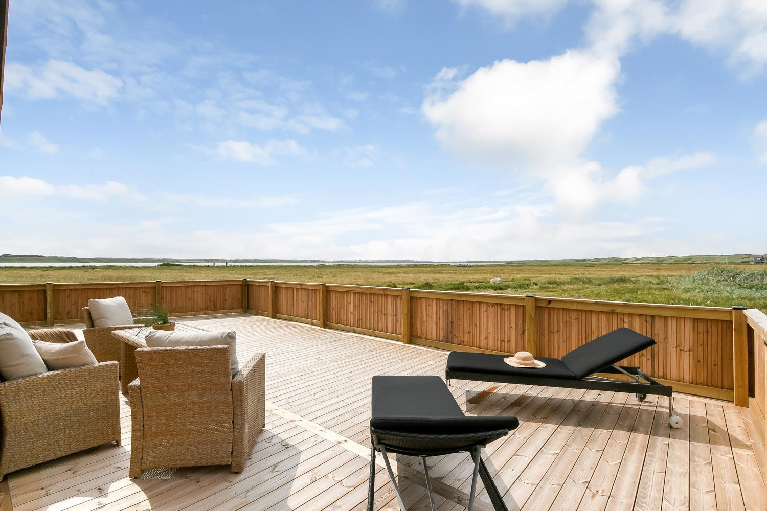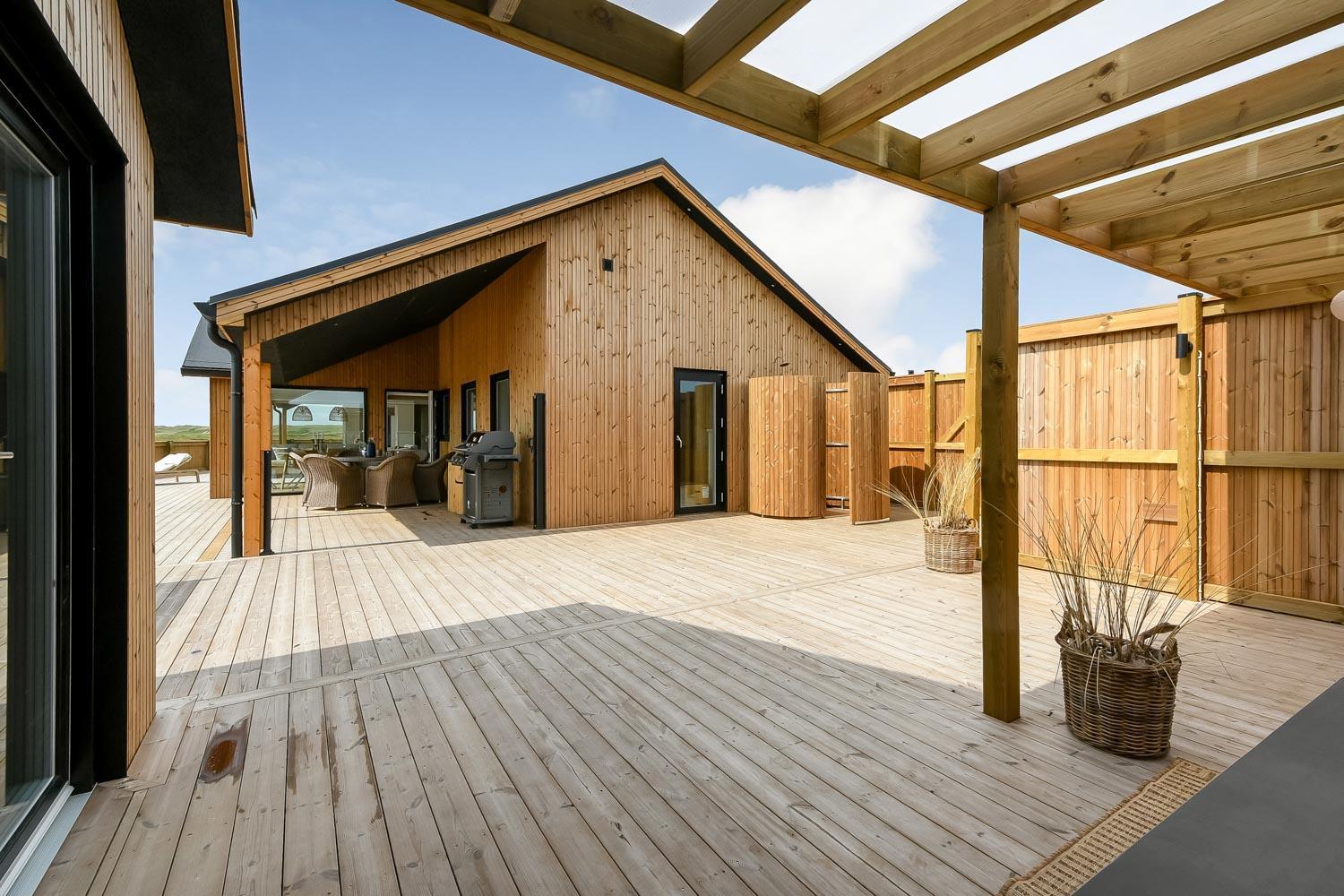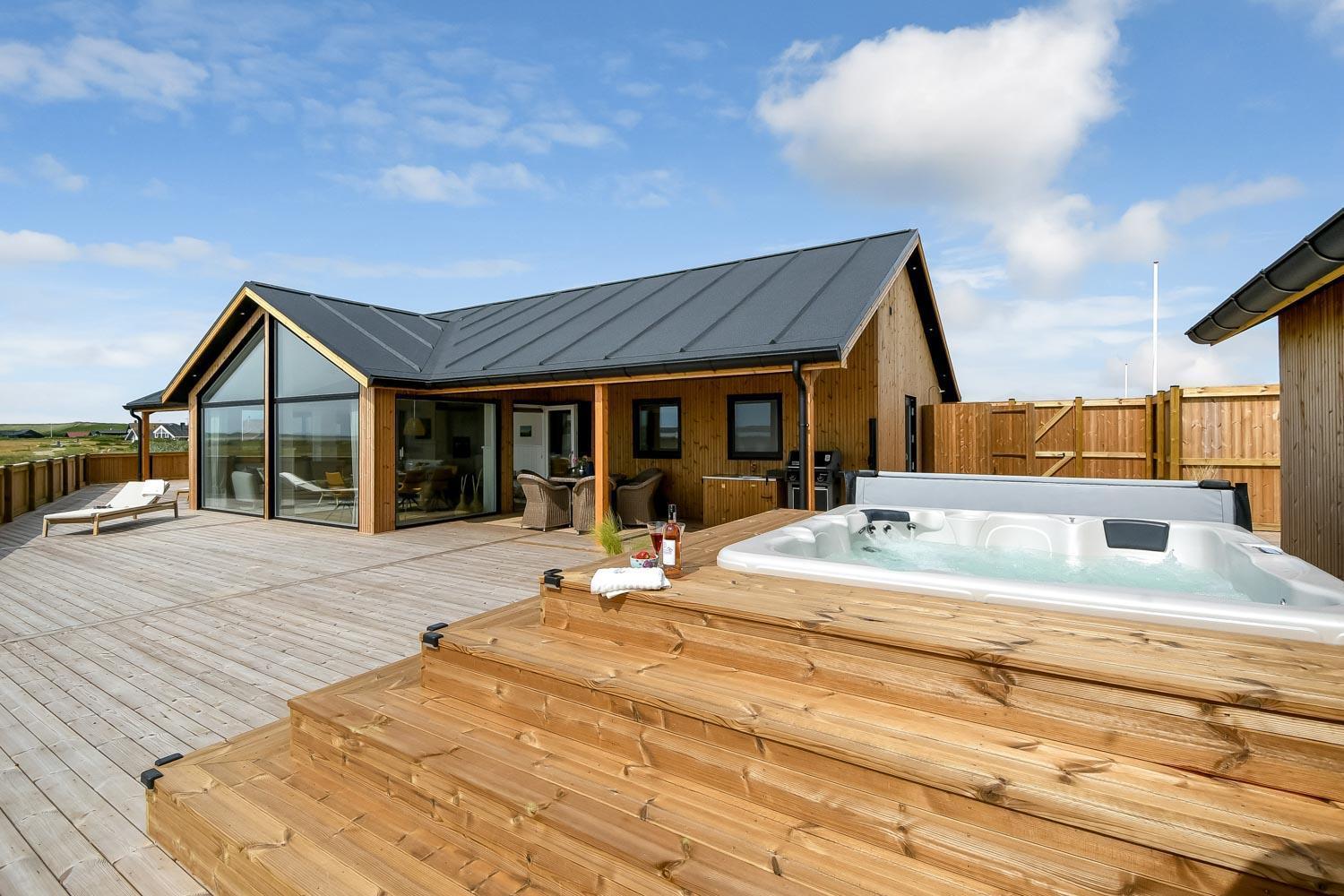 Ein vom Architekten entworfenes, neugebautes Luxushaus in einzigartiger, fantastischer Lage. Das Haus liegt als erstes Haus zum Naturschutzgebiet und dem Ferring See; vom Haus und der Terrasse haben Sie einen großartigen Panoramablick. Dieses schöne Ferienhaus aus Holz ist etwas ganz Besonderes. Es gibt eine sehr große eingezäunte Terrasse um das Haus herum, die teilweise überdacht ist und z.B. über einen Außen-Whirlpool und 2 Außen-Duschen mit Kalt- und Warmwasser verfügt. Es gibt freies Glasfasernetz im Haus. Das Haus ist für 6 Personen eingerichtet, die diesen Luxus genießen können. Eine ruhige Zeit, ein Platz in der Sonne sind etwas, das das Haus bietet. Das Haus ist topisoliert und aus bestem Material hergestellt; es ist deswegen - egal zu welcher Jahreszeit - sehr geeignet für Ihren Urlaub.