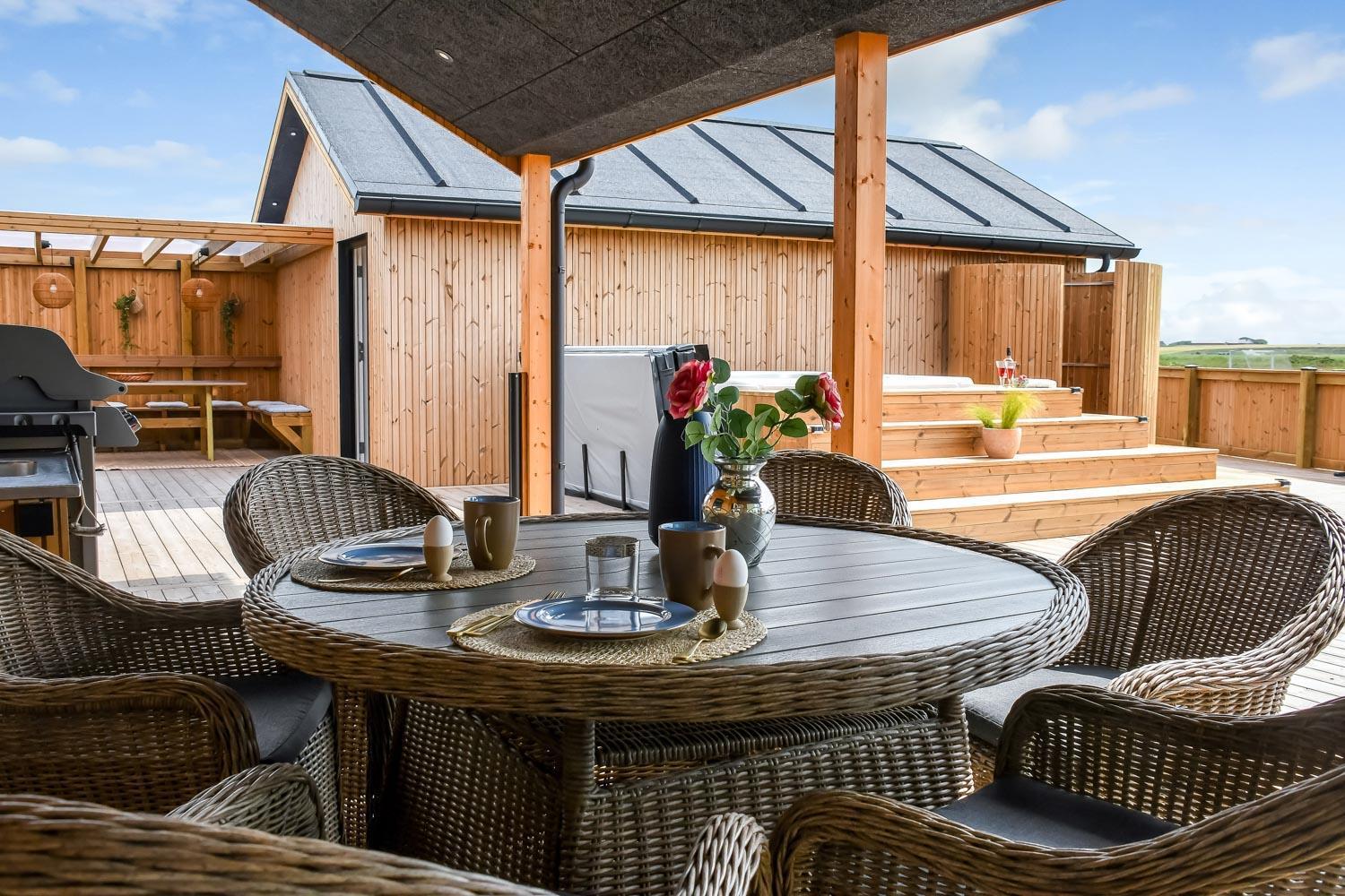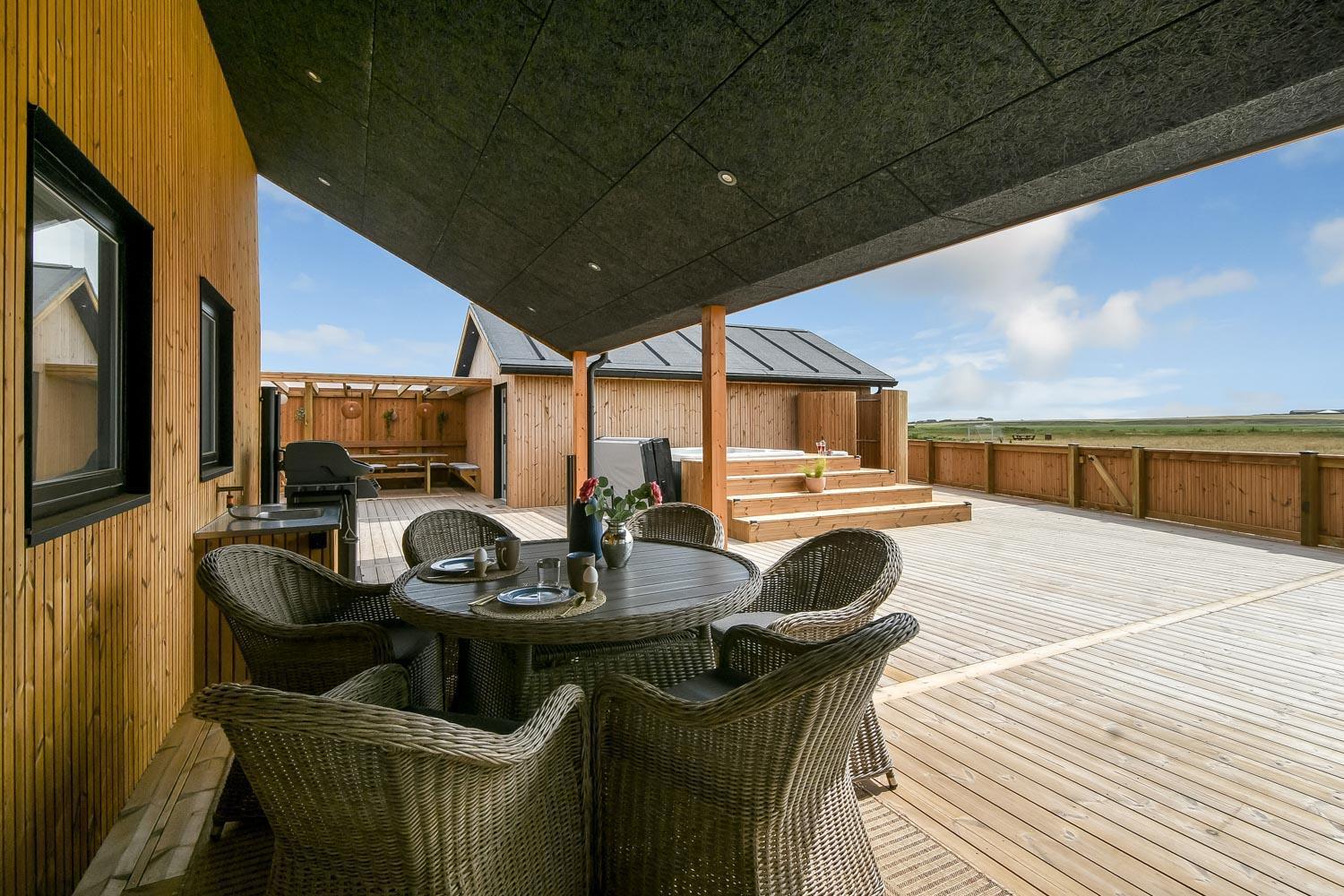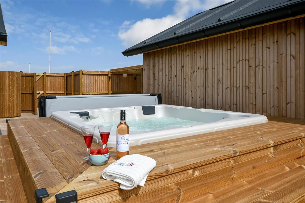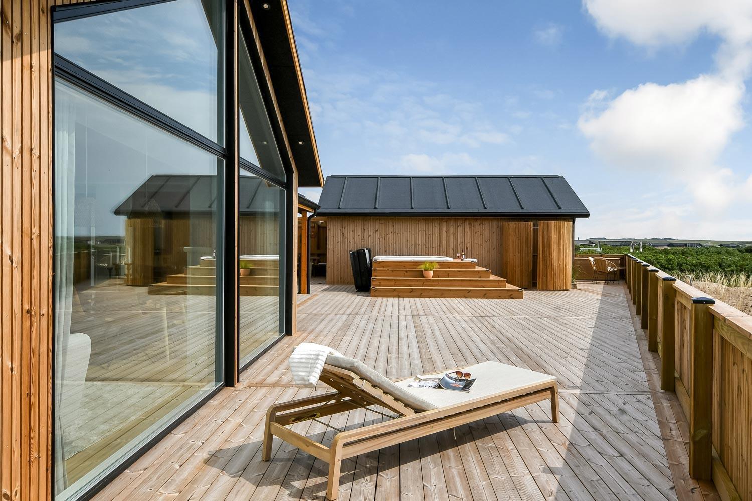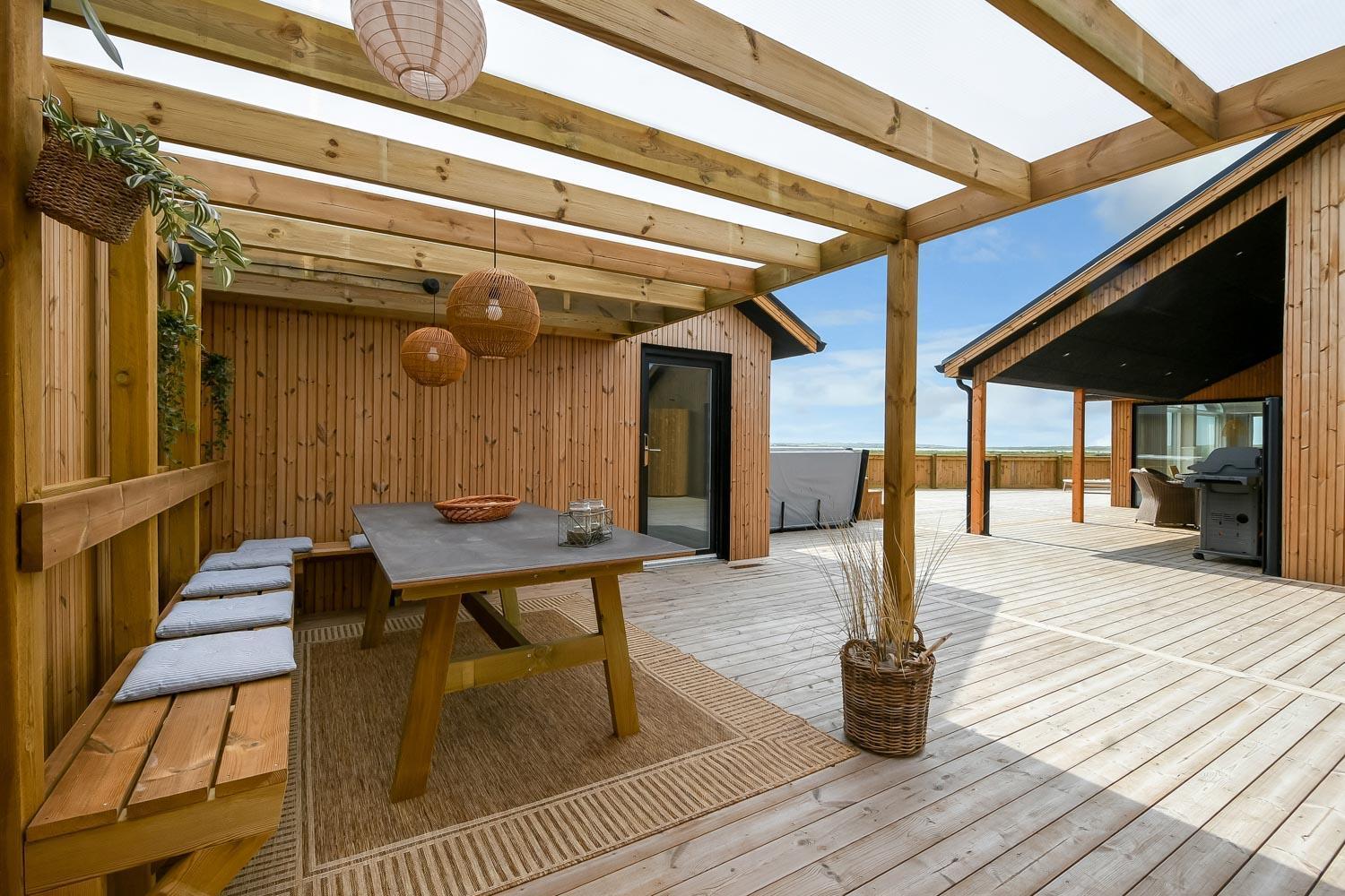 Ein vom Architekten entworfenes, neugebautes Luxushaus in einzigartiger, fantastischer Lage. Das Haus liegt als erstes Haus zum Naturschutzgebiet und dem Ferring See; vom Haus und der Terrasse haben Sie einen großartigen Panoramablick. Dieses schöne Ferienhaus aus Holz ist etwas ganz Besonderes. Es gibt eine sehr große eingezäunte Terrasse um das Haus herum, die teilweise überdacht ist und z.B. über einen Außen-Whirlpool und 2 Außen-Duschen mit Kalt- und Warmwasser verfügt. Es gibt freies Glasfasernetz im Haus. Das Haus ist für 6 Personen eingerichtet, die diesen Luxus genießen können. Eine ruhige Zeit, ein Platz in der Sonne sind etwas, das das Haus bietet. Das Haus ist topisoliert und aus bestem Material hergestellt; es ist deswegen - egal zu welcher Jahreszeit - sehr geeignet für Ihren Urlaub.