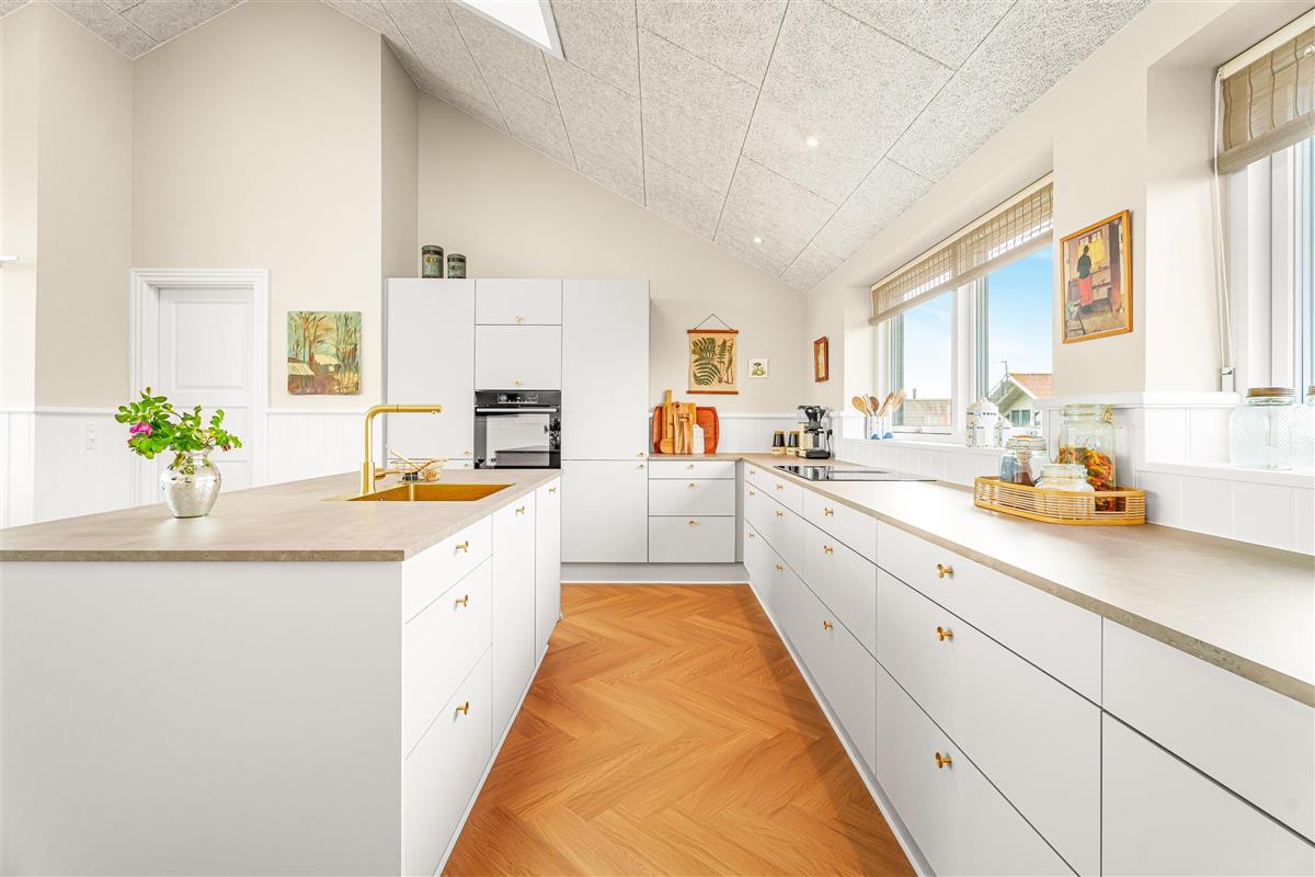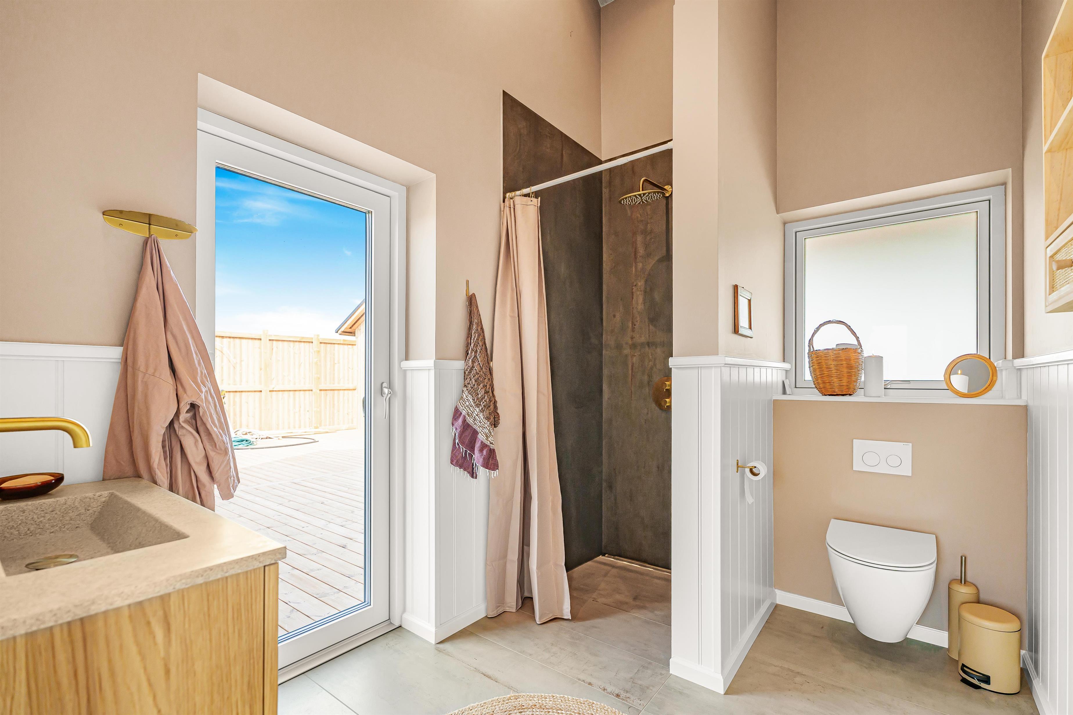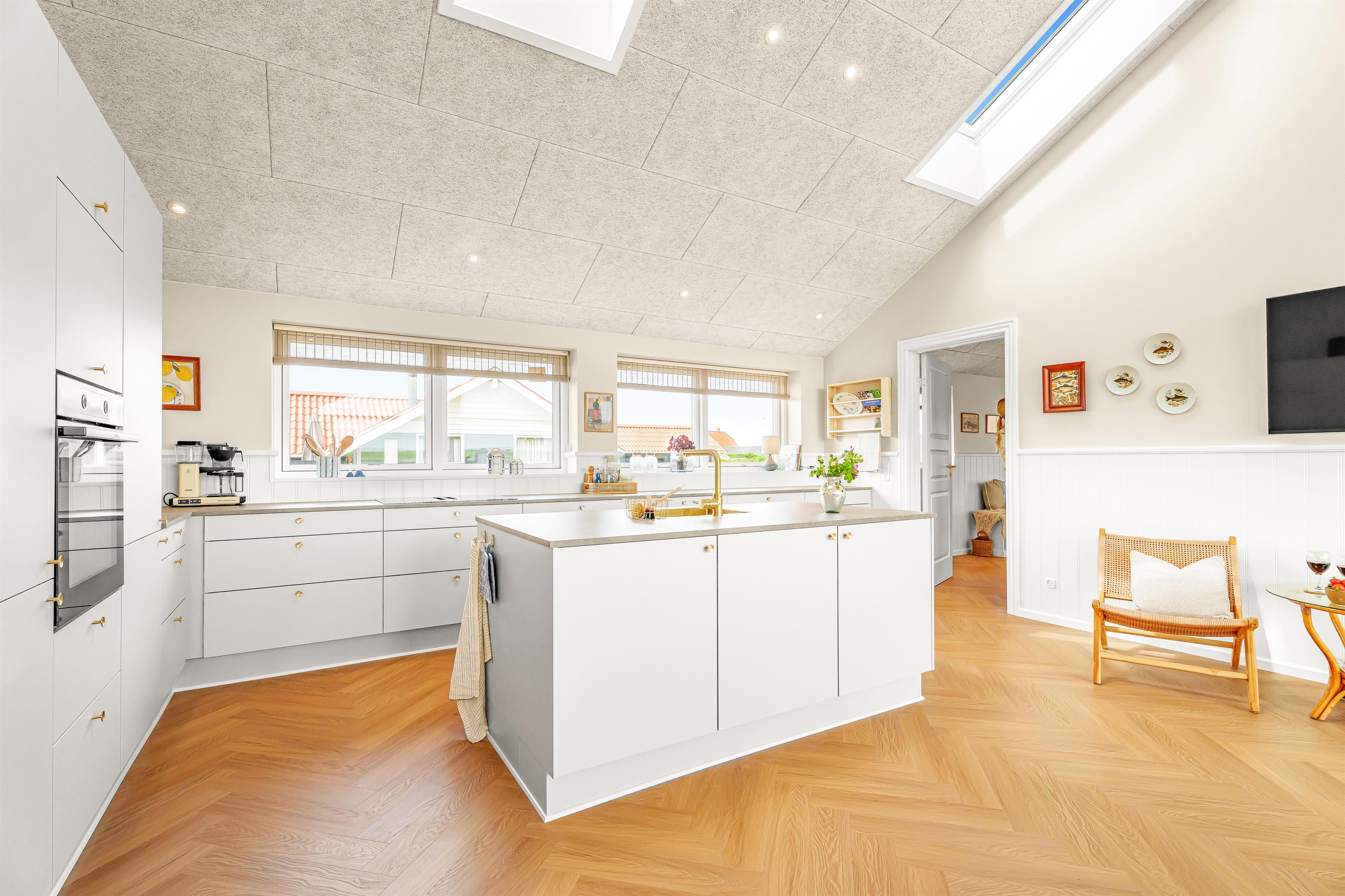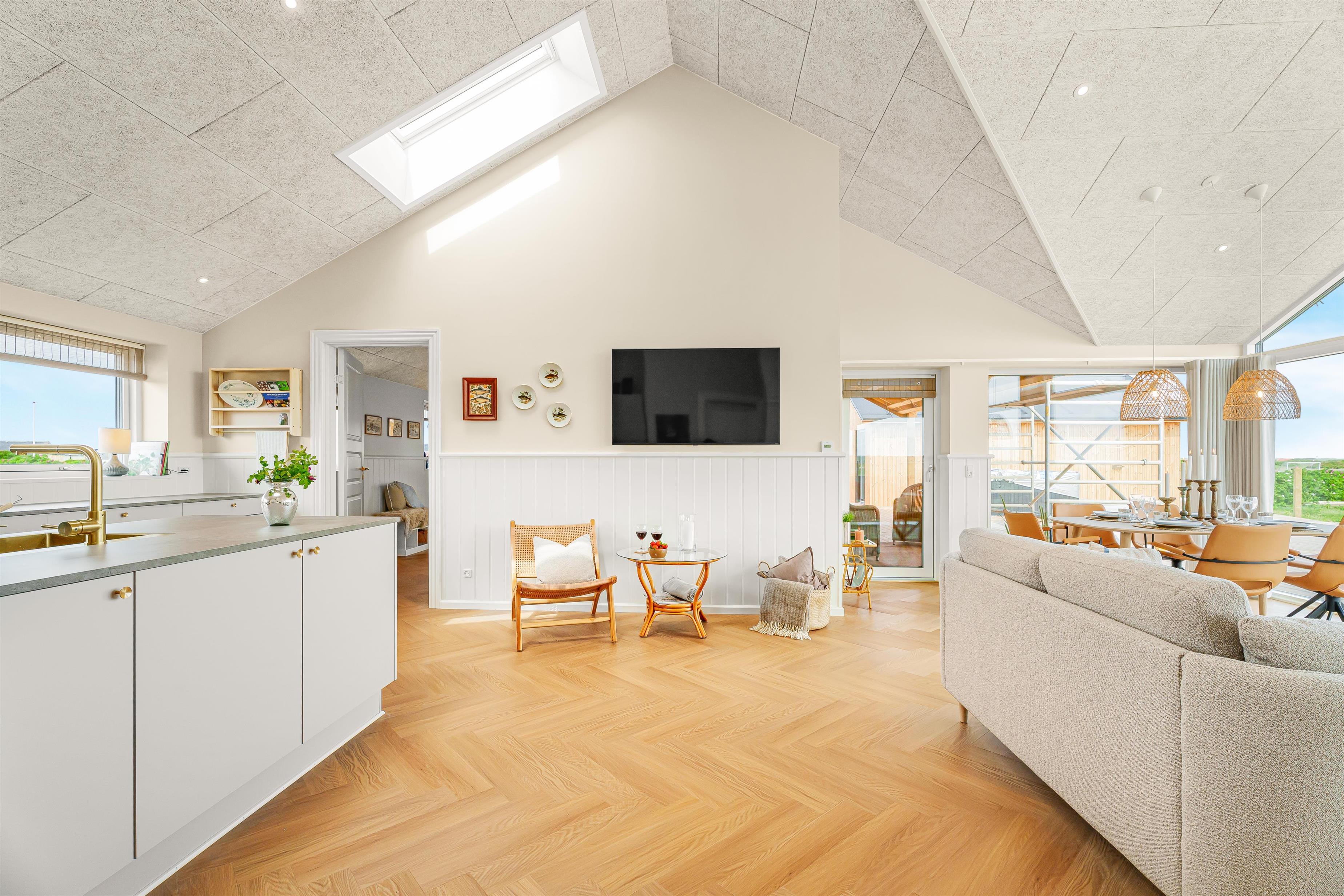 Schon wenn Sie mit dem Auto wenige Minuten vom Haus den Kiesweg erreichen, wird klar, dass die Lage und das Haus etwas Besonderes sind. Das Haus liegt auf einem Naturgrundstück am Ende einer Sackgasse. Das Haus ist etwa 155 qm groß und hat 3 schöne Schlafräume: 1DB + 1DB + 1DB, alle mit neuen, guten Betten ausgestattet. Im Herz des Hauses gibt es eine große, sehr gut ausgestattete Küche/Essraum mit allem an Geschirr und Kochgeschirr. Genießen Sie Ihr Essen am Esstisch, der dicht an der Küche steht. Die Küche ist mit einem Induktionsherd mit eingebauter Abzugshaube, eingebautem Ofen, Mikrowelle, Kühl-/Gefrierschrank und vielem mehr ausgestattet. Lassen Sie sich verzaubern, indem Sie aus den Fenstern schauen und die Aussicht auf den Ferring See und die Umgebung genießen. Entspannen Sie sich in den neuen Qualitätsmöbeln. Schauen Sie auf dem Smart-TV des Hauses fern, der über integrierte dänische und deutsche Fernsehprogramme über Glasfasernetz, Radio und die Möglichkeit von Streaming-Diensten verfügt, für die Sie selbst ein Abonnement haben. Es gibt praktischen Laminatboden in allen Aufenthaltsräumen mit Fußbodenheizung; die Badezimmer sind mit Fliesenboden mit Fußbodenheizung ausgestattet. Von dem großen Schlafraum gibt es einen Ausgang zur teilweise überdachten Terrasse. Es gibt eine Wärmepumpe der für eine gute und günstige Wärme sorgen. Die Decken im Haus sind offen und verfügen über eingebaute Strahler. Die großen Fensterpartien geben zusammen mit zwei Oberlichtern über dem Küchenbereich einen guten Lichteinfall im ganzen Raum. Vom Wohnraum/Essbereich gibt es einen Ausgang zu der großen und tollen Terrassenanlage, die teilweise überdacht ist. Hier gibt es einen Außen-Whirlpool und 2 Außen-Duschen mit kaltem und warmem Wasser. 2 Badezimmer, beide mit Toilette, Waschbecken, Dusche und Fußbodenheizung. In einem der Badezimmer gibt es Waschmaschine und Trockner. Von dem einen Badezimmer gibt es einen Ausgang zu der Terrasse mit der Dusche, so dass Sie, wenn Sie vom Meer kommen, draußen dan Sand unter der Dusche abspülen können, um danach direkt ins Badezimmer zu gehen. Das Haus wird nicht an Jugendgruppen vermietet. Haben Sie ein Elektroauto oder Plug in Hybrid, dann gibt es eine Ladestation beim Haus. Nichtraucher-Haus. Haustiere nicht erlaubt. Obligatorische Endreinigung.