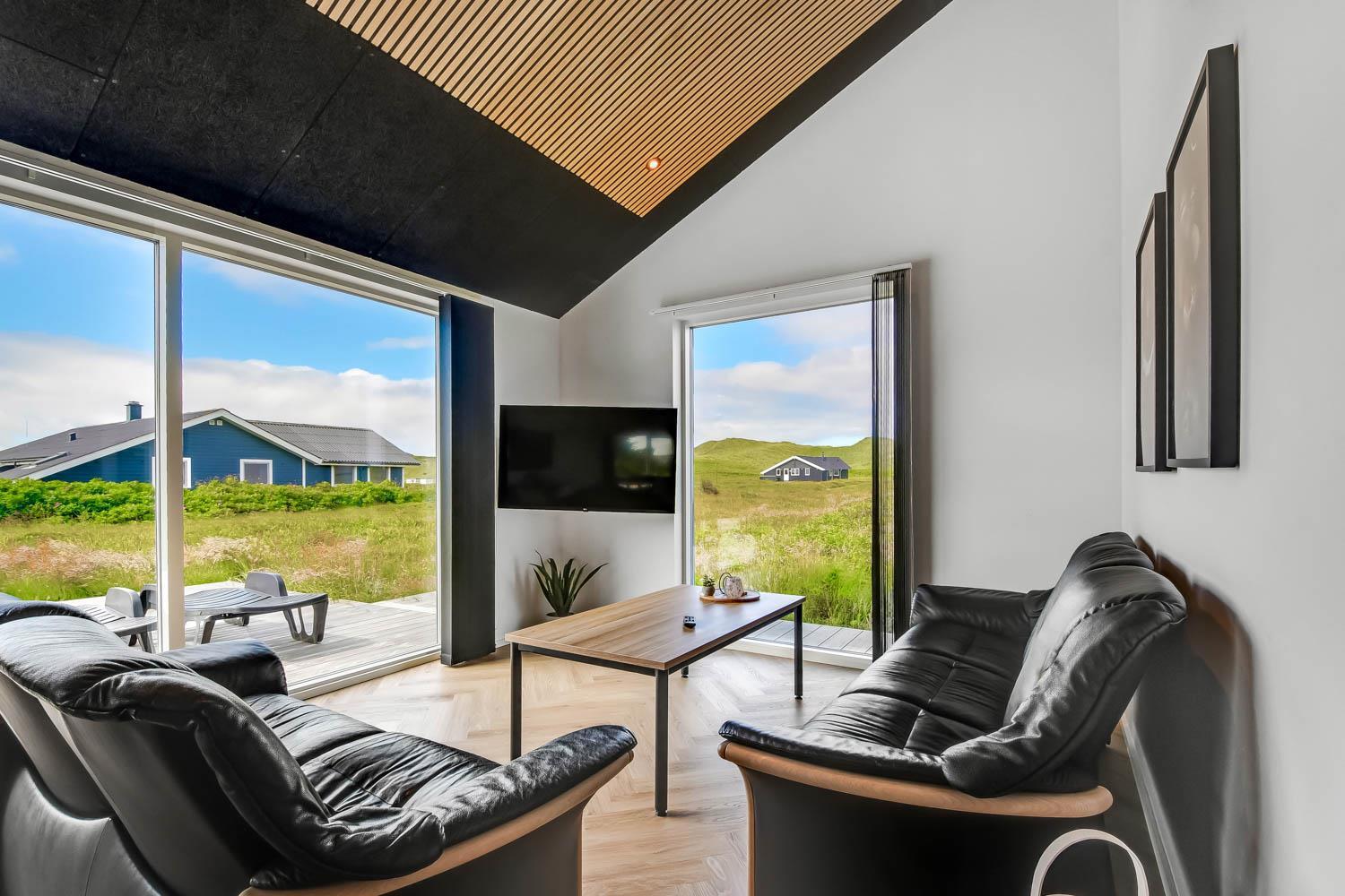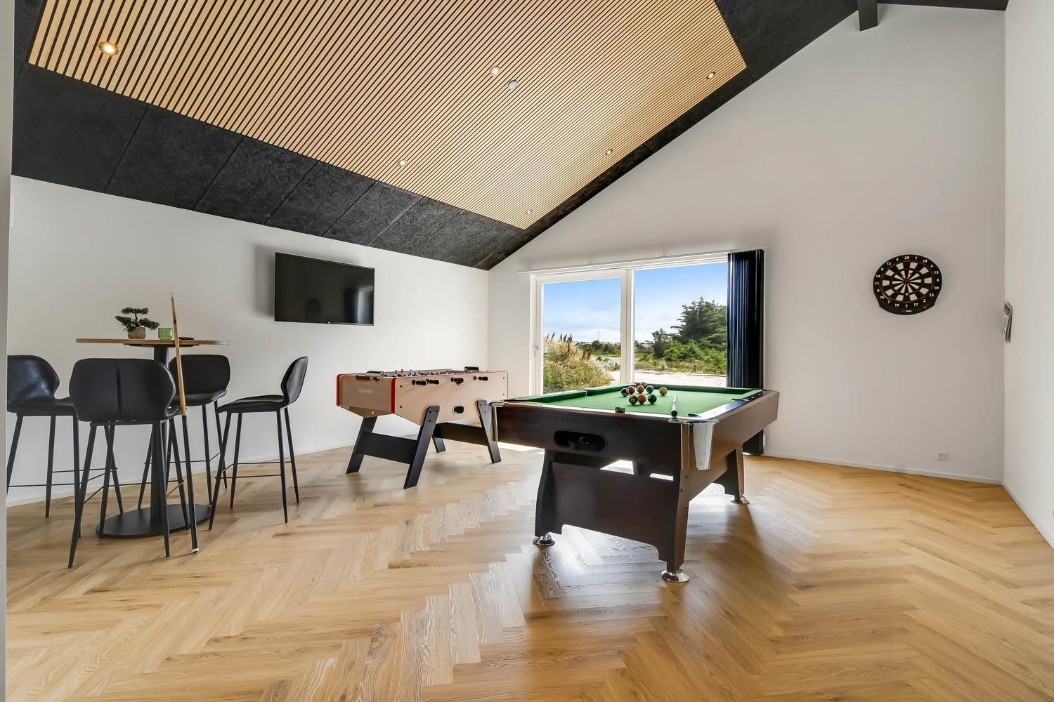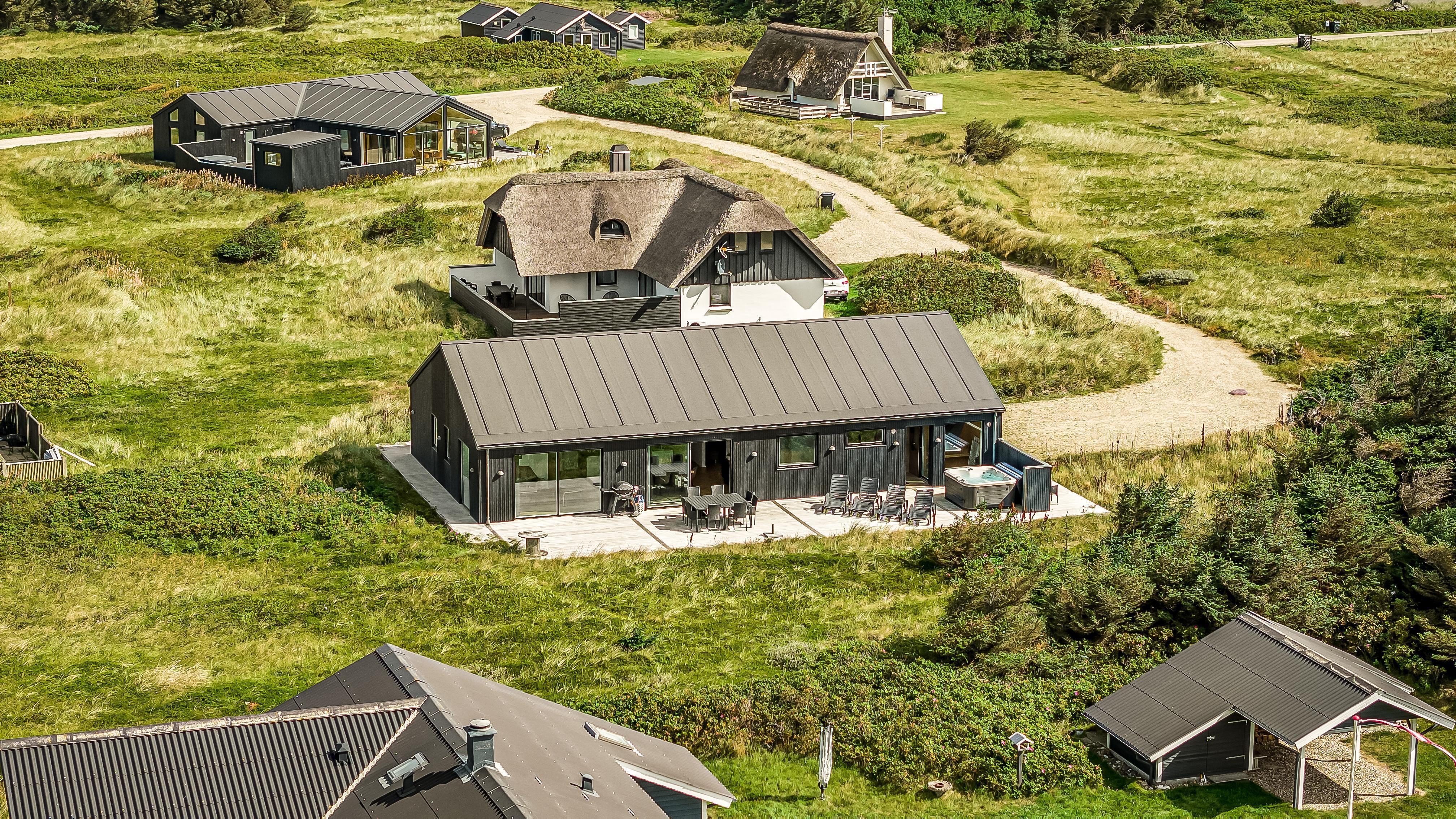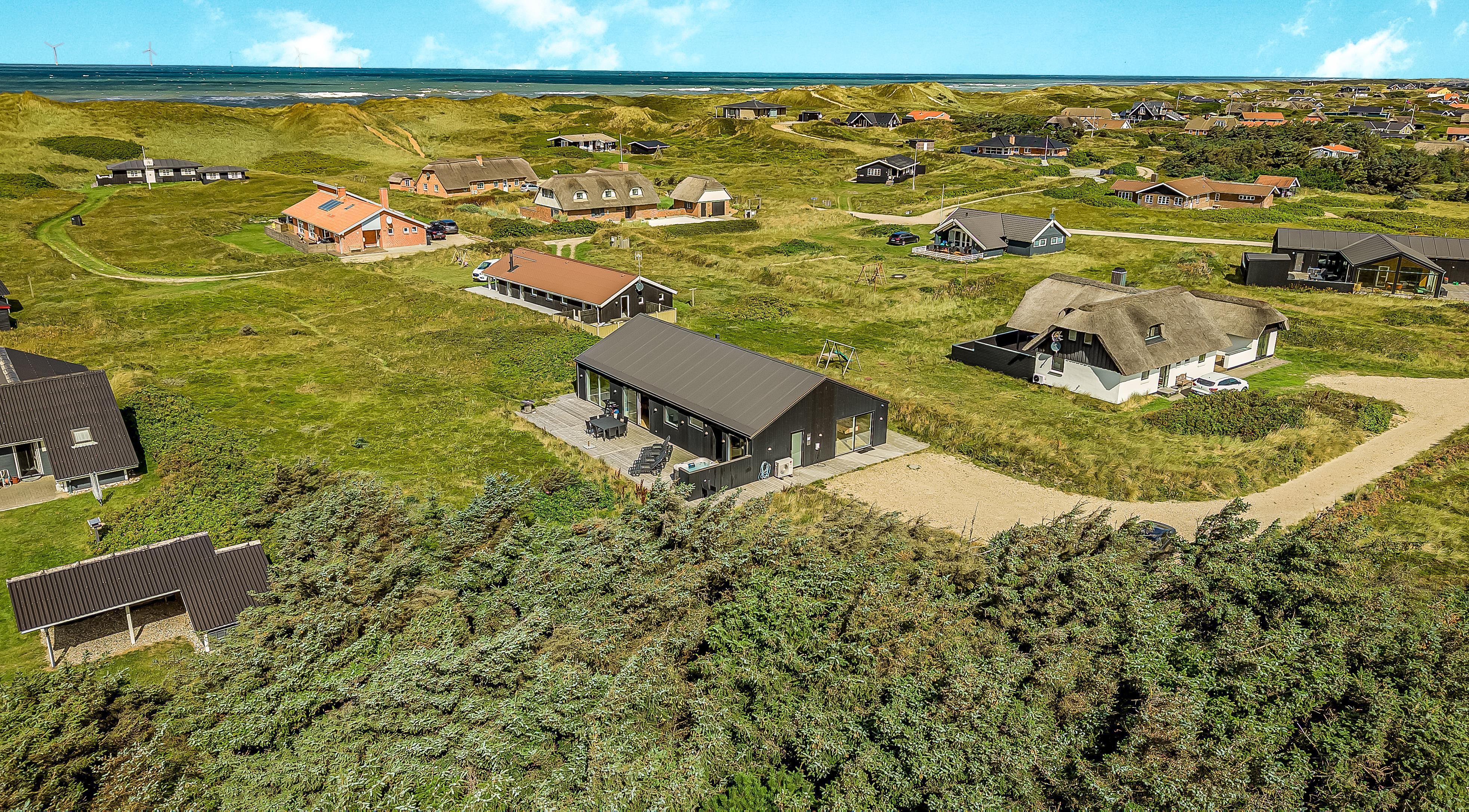 Schon wenn Sie den Kiesweg nur wenige Meter zum Haus begehen, merken Sie bereits, dass die Lage des Hauses ganz speziell ist. Das Haus liegt auf einem sehr für sich gelegenen Grundstück mit hoher Bepflanzung und am Ende einer geschlossenen Sackgasse. Das Haus ist 120 qm groß und hat 4 schöne Schlafräume: 1DB + 1DB + 1DB + 1DB – alle Zimmern sind mit Einzelbetten ausgestattet, die Sie nach Bedarf umstellen können. Im Herz des Hauses befindet sich eine große gut ausgestattete Küche/Wohnraum mit allem an Geschirr und Kochgeschirr. Die offene Küche hat z.B. einen Herd mit Cerankochfeld, einen eingebauten Ofen, große Abzugshaube, Geschirrspüler, Mikrowelle, Kühlschrank mit Gefrierfach, Weinkühler, Eiswürfelmaschine und vieles mehr. Genießen Sie Ihr zubereitetes Essen am Esstisch, der dicht an der Küche steht. Genießen Sie den tollen Blick zu den Dünen an der Nordsee. Entspannen Sie sich in den bequemen Qualitätsmöbeln. Schauen Sie auf einem der Smart-TV mit Soundbar, dänischen und deutschen TV-Programmen, Radio und Streaming-Diensten. Es gibt praktische Hartfußböden mit Fußbodenheizung im ganzen Haus, die auch sehr leicht zu reinigen sind. Schöne praktische Akustikpaneele sorgen für eine gedämpfte und angenehme Lautstärke für alle. Die Wellness-Abteilung hat z.B. einen Innenwhirlpool. Es gibt einen Ausgang zu der großen und wunderbaren Terrassenanlage, wo es auch einen Außenwhirlpool und eine Sauna gibt. Der separate Aktivitätsraum enthält: Tischfußball und Billard. Hier können Sie viele Stunden verbringen. 2 Badezimmer mit Doppel-Duschkabine in jedem Badezimmer, Toilette, Waschbecken und Fußbodenheizung. Waschmaschine und Trockner sind selbstverständlich. Eine Luft zu Wasser Wärmepumpe macht das Haus energiefreundlich und bewirkt auch einen günstigeren Energieverbrauch. Das Haus wird nicht an Jugendgruppen vermietet. Haben Sie ein Elektro-Auto oder Plug-in-Hybrid dann gibt es auch eine Ladebox für Typ 2 Ladestecker, die bis 11 kWh aufladen kann. Nichtraucher-Haus. Max. 1 Haustier ist erlaubt.