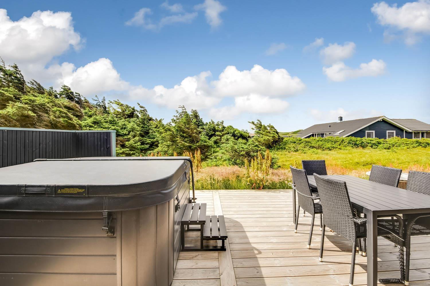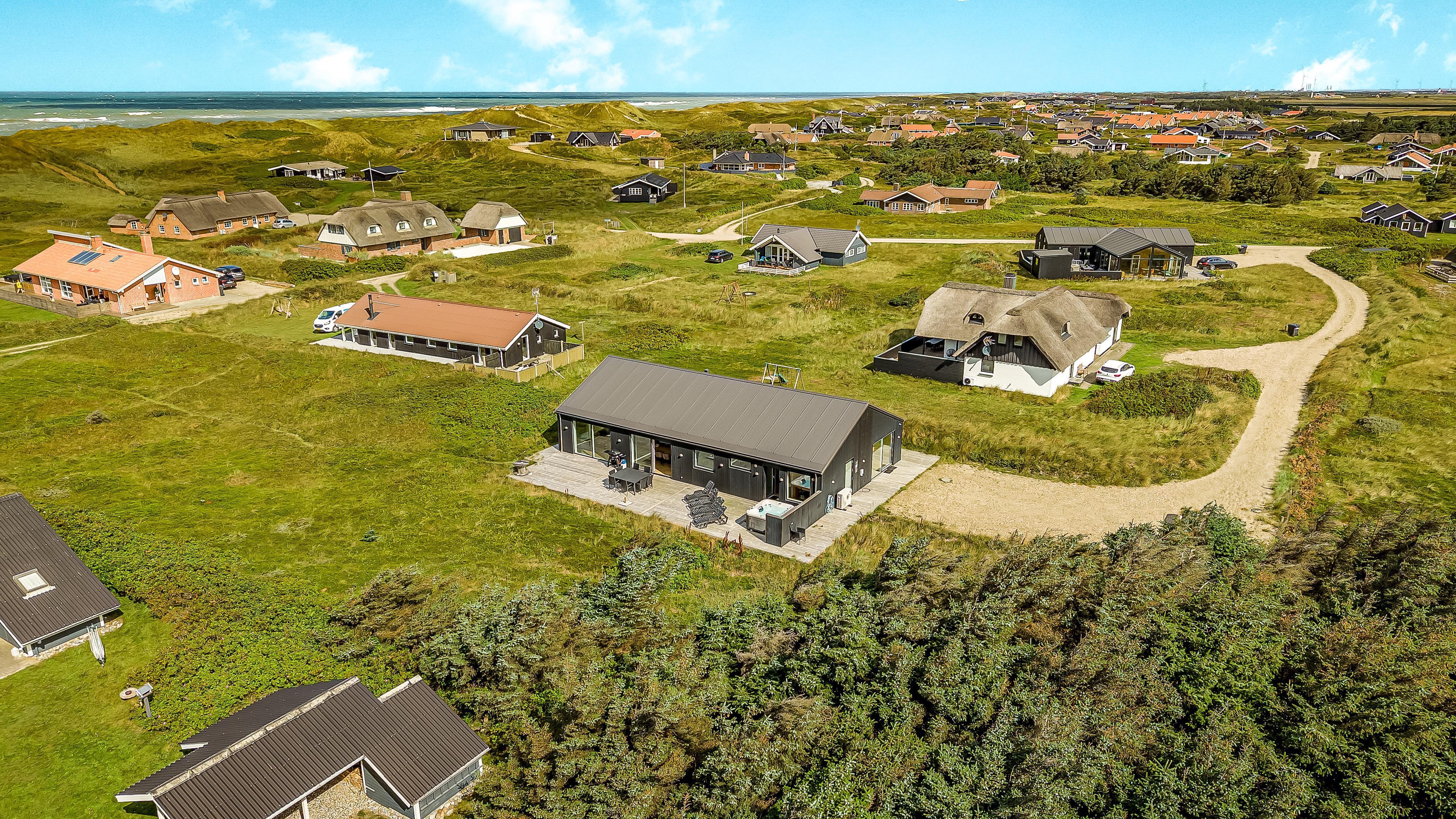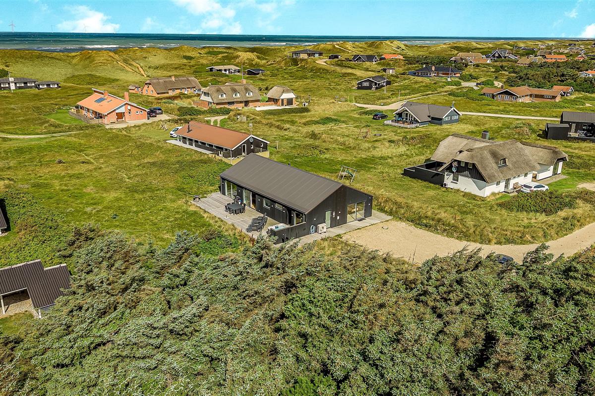 Es gibt viel Platz auf dem 1.200 qm großen einzigartigen Grundstück. Auf der prachtvollen Terrassenanlage gibt es viele Möglichkeiten, einen Platz in der Sonne oder im Schatten zu finden, weil die Anlage über eine 35 qm große Holzterrasse verfügt. Auch hier ist der Blick einmalig und es ist an alles gedacht. Großer Gas-Grill, viele Gartenmöbel und Sonnenliegen. Eine Benutzung des Außenwhirlpools oder der Außensauna bieten Ihnen ein ganz spezielles Erlebnis, auch besonders in den dunklen Abendstunden mit einem klaren Sternenhimmel. Dieses Erlebnis ist reine Therapie für Körper und Seele. Das Haus liegt auf einem der besten Grundstücke der Gegend und weit entfernt von der Straße. Vom Grundstück kommen Sie über Kieswege direkt über die Dünen zur Nordsee. So ist es nicht weit zu Strandvergnügungen wie baden, Drachen steigen lassen, Angeln oder einer Wanderung in der frischen Luft. Die Wasserkante von der Nordsee ist etwa 200 m vom Haus entfernt. Außerdem liegt das Haus dicht an einer von Westjütlands schönsten Fahrrad-/Wanderrouten. Es bietet z. B die Möglichkeit, See und Nordsee zur gleichen Zeit zu beobachten und und es ist unweit von Einkauf und Restaurant. Der nächste saisonal geöffnete Kaufladen liegt bloß 400 m entfernt, hier gibt es auch ein kleines Cafe/Restaurant. Wir empfehlen auch einen Besuch in dem Hafenort Thyborøn -15 km nördlich vom Ferienhaus - oder der alten Handelsstadt Lemvig - etwa 13 km östlich vom Haus - entfernt. Dieses Haus bietet einen wunderbaren Luxus und ist geeignet für Paare oder die Familie, die gerne ein einmaliges Erlebnis wünschen, das Sie nicht vergessen werden, und die dicht an der Nordsee wohnen möchten.