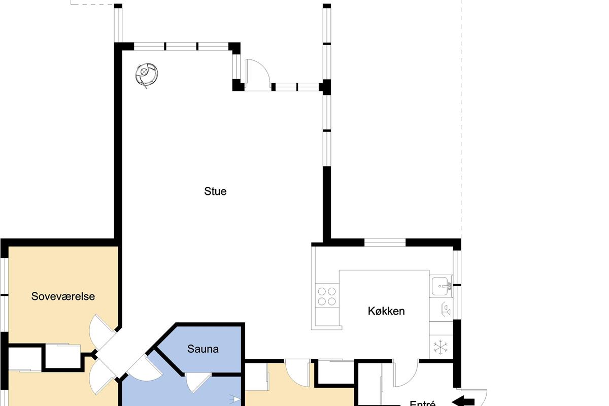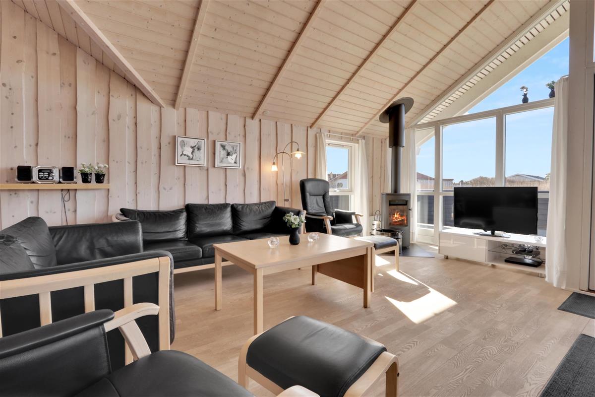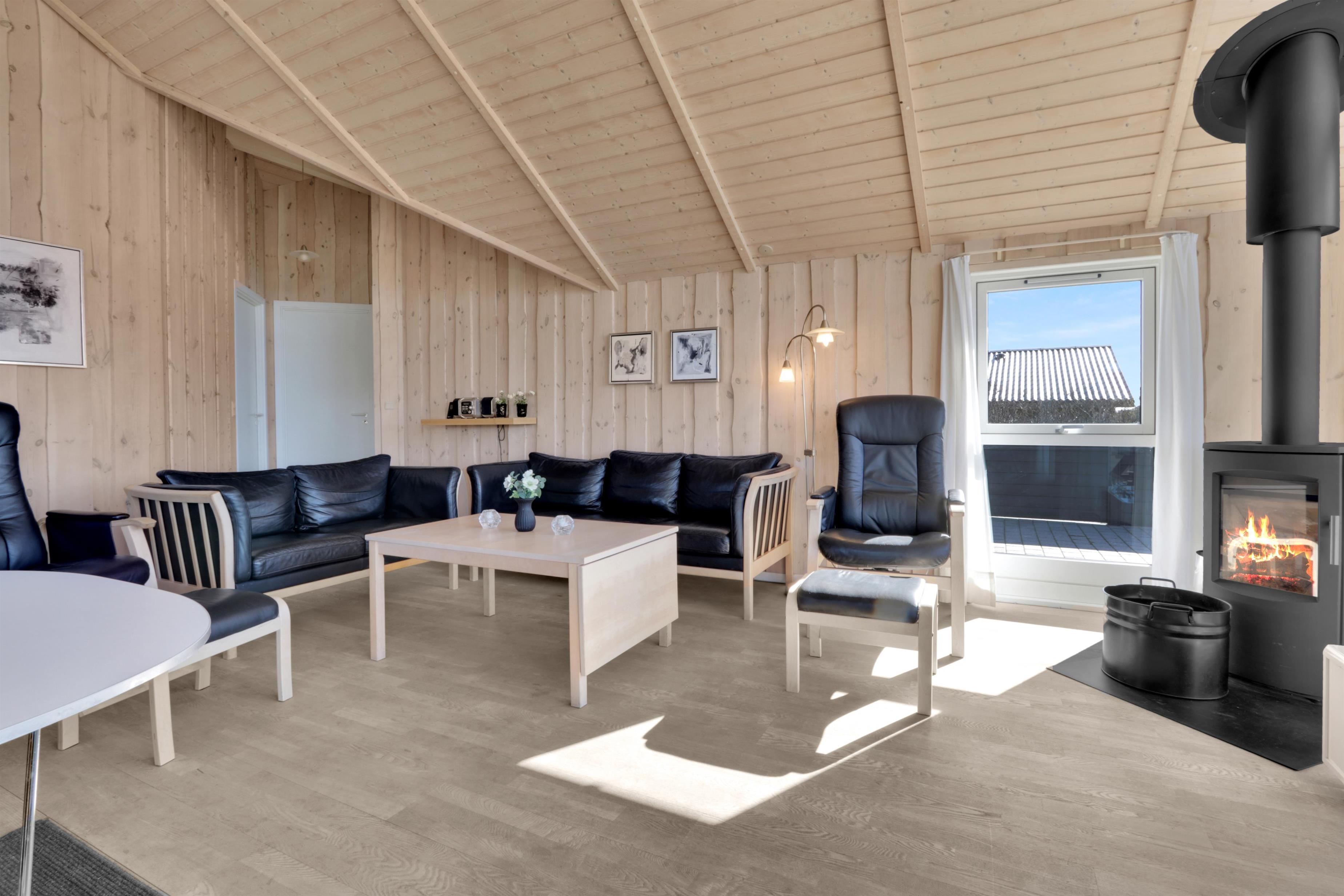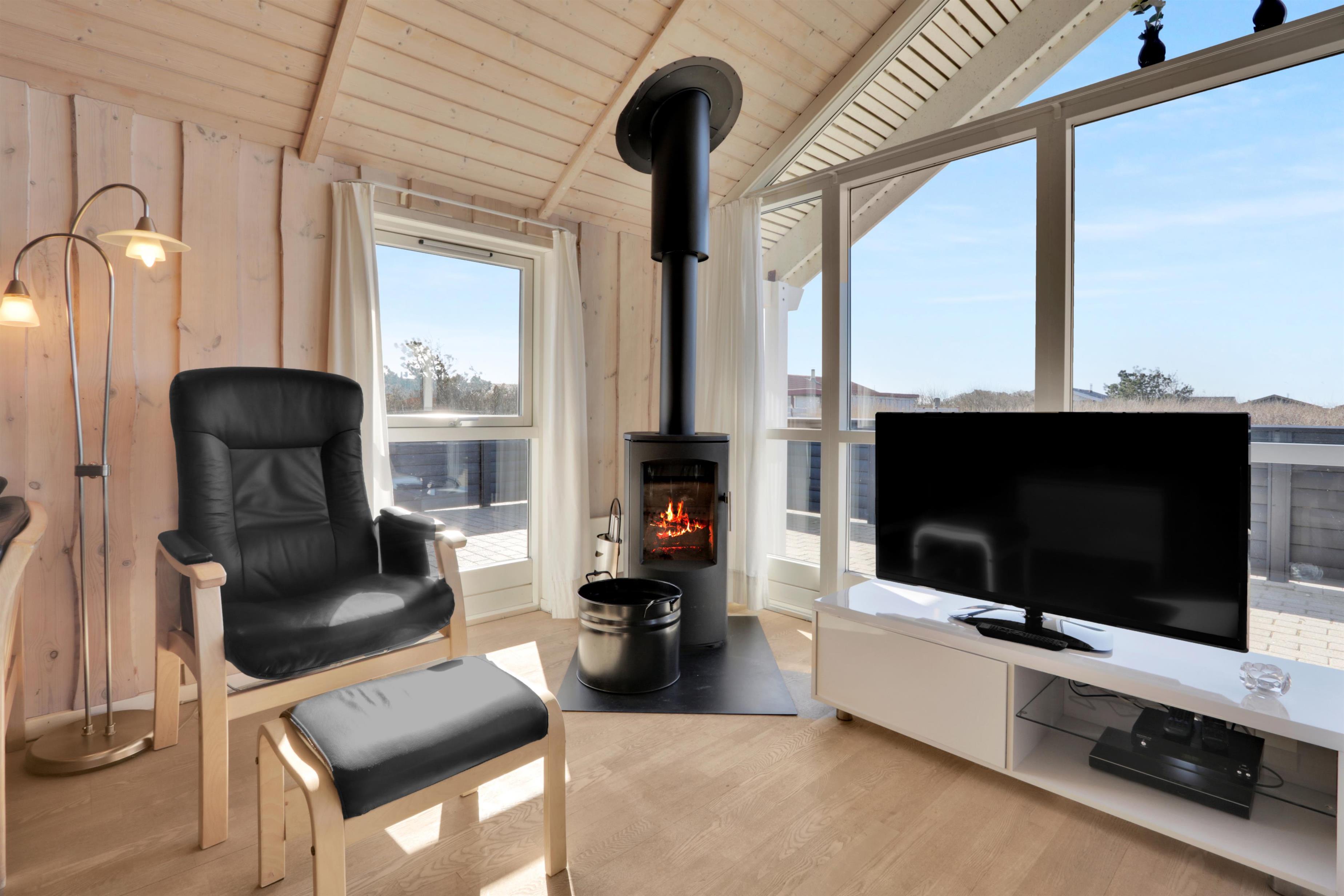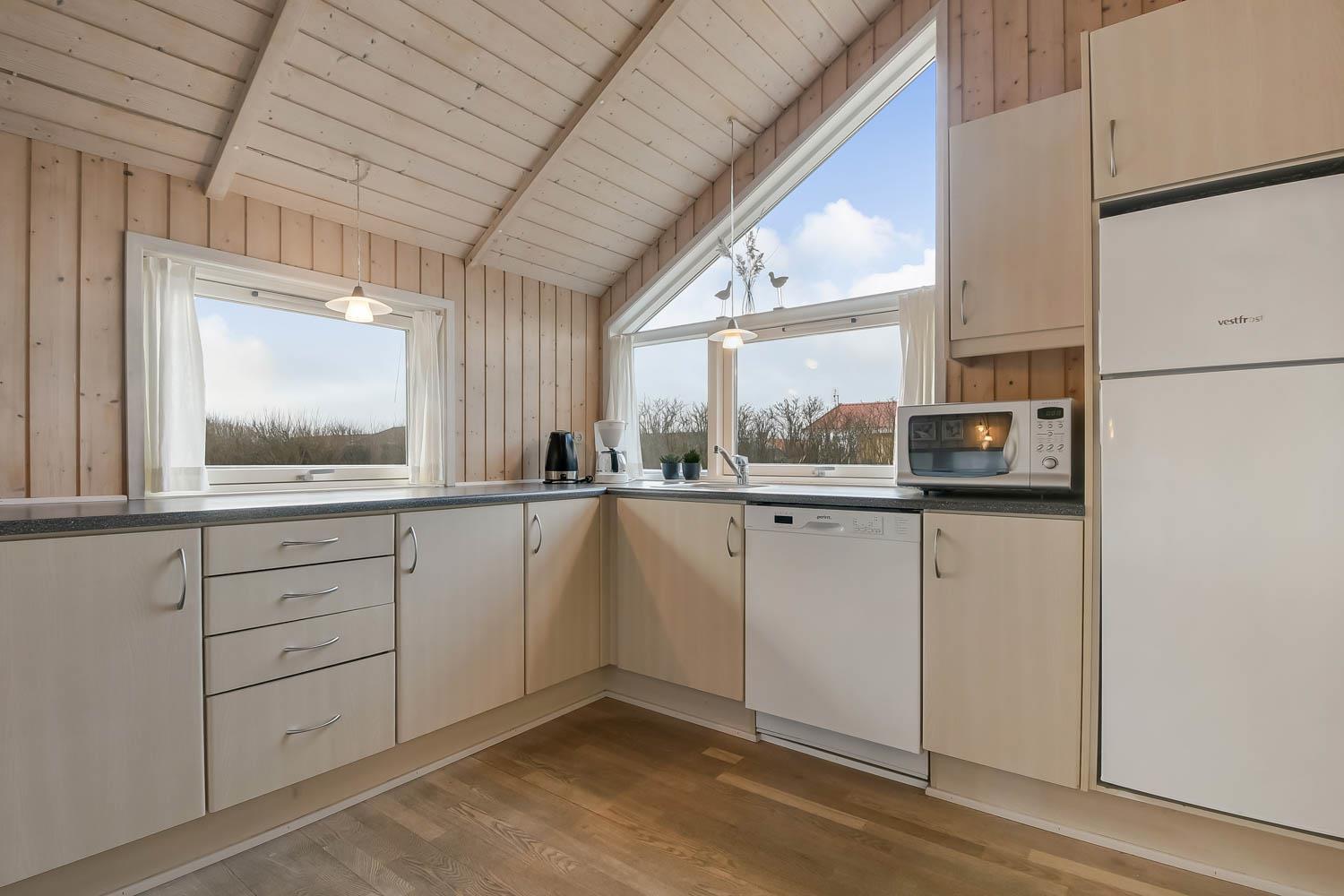 Das Haus wurde 2005 erbaut und präsentiert sich hell und einladend mit großen Fenstern und Terrassentüren, die viel Tageslicht hereinlassen. Die gut ausgestattete Küche verfügt über ein Glaskeramikkochfeld, einen Kühl-/Gefrierschrank, eine Spülmaschine und eine Mikrowelle. Sie ist offen mit dem gemütlichen Wohnzimmer verbunden, das mit modernen und komfortablen Möbeln eine entspannte Atmosphäre schafft. Ein Kaminofen sorgt zusätzlich für Wärme und Gemütlichkeit.