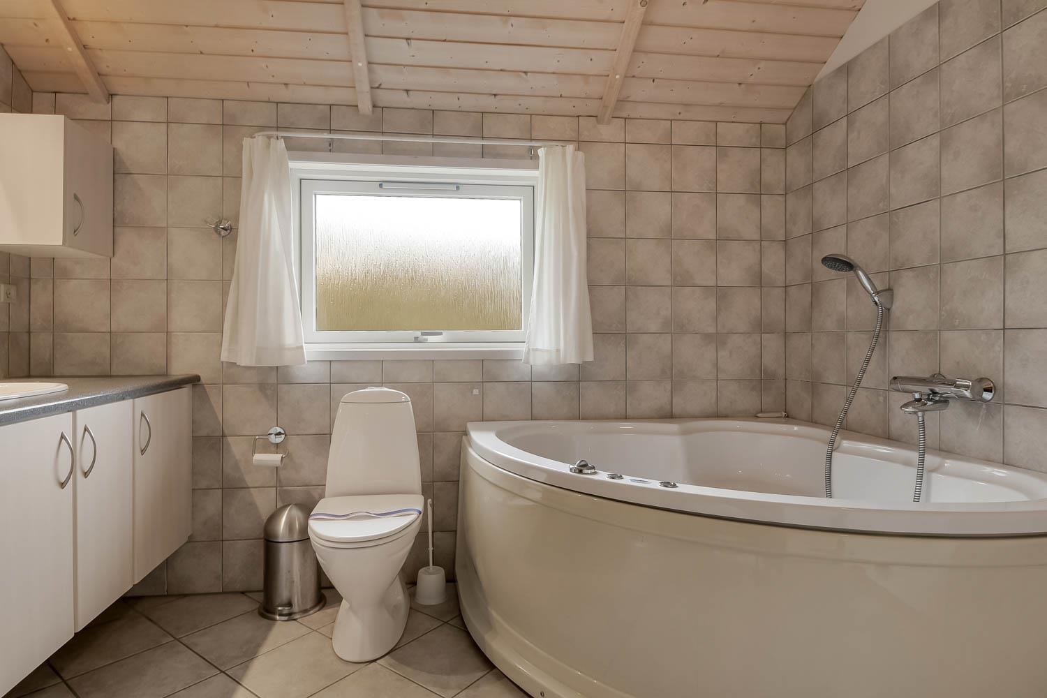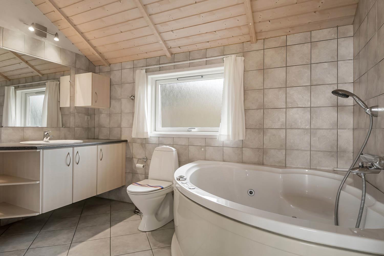 Es gibt zwei Badezimmer, eines davon mit Whirlpool und direktem Zugang zur Sauna – perfekt zur Entspannung nach einem Tag in der Natur.