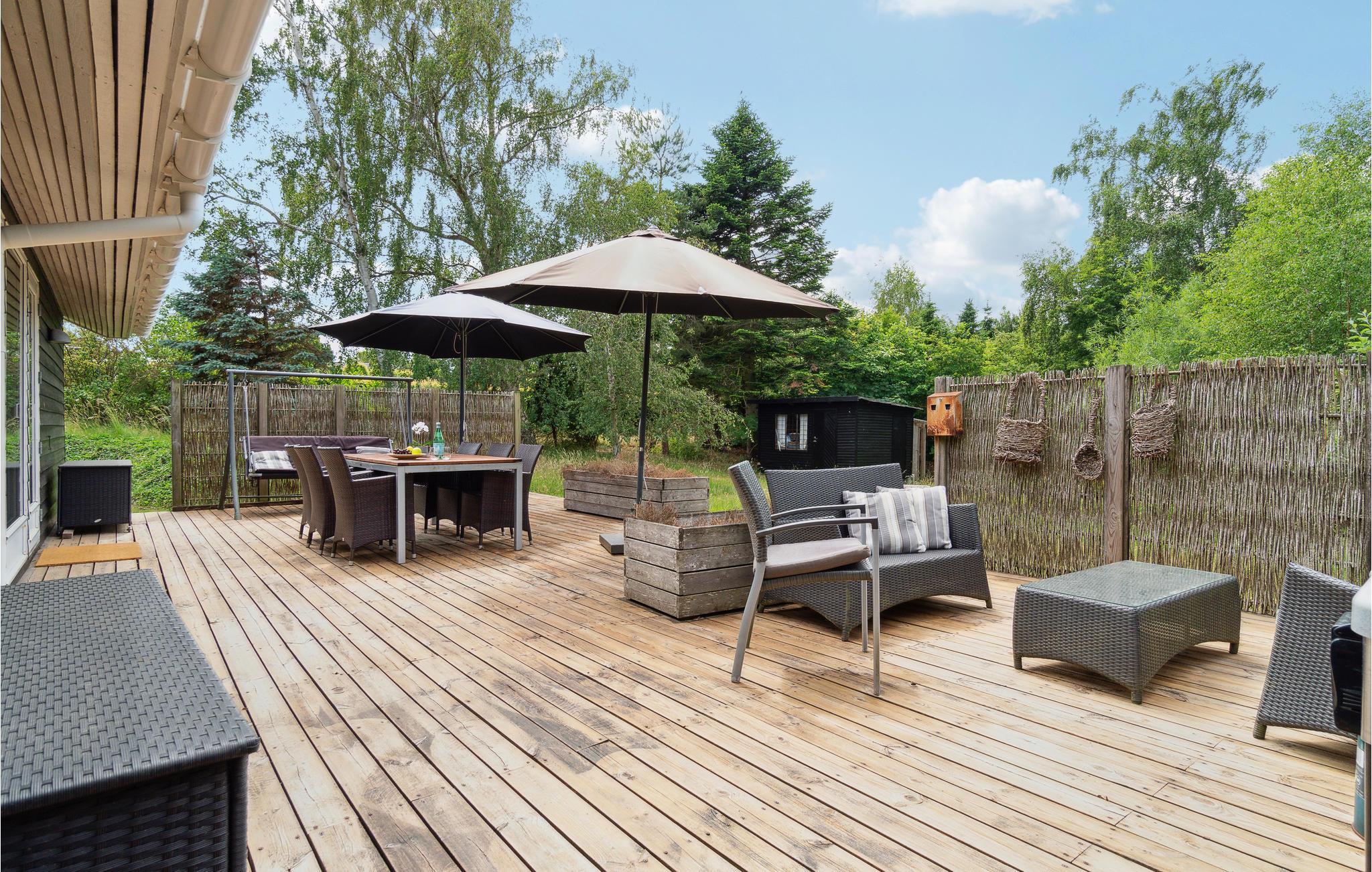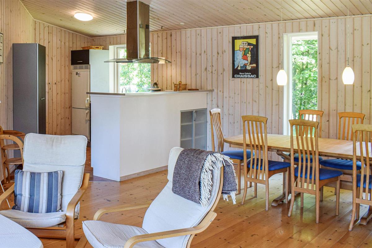 Op loopafstand van het fjord verblijft u hier in een prachtig vakantiehuis in een populaire vakantiehuisnederzetting. De architectuur en het meubilair zijn prachtig en al het meubilair is in overeenstemming met de stijl van het huis. Voor het woongedeelte ligt het terras. De 4 slaapkamers zijn 2 en 2 op vleugels. Eén badkamer is uitgerust met een whirlpool en sauna. Op het natuurlijke terrein heeft u alle ruimte voor spelletjes.