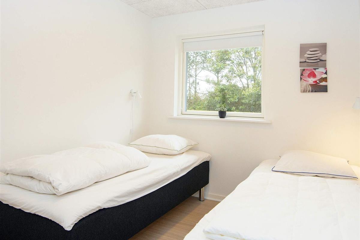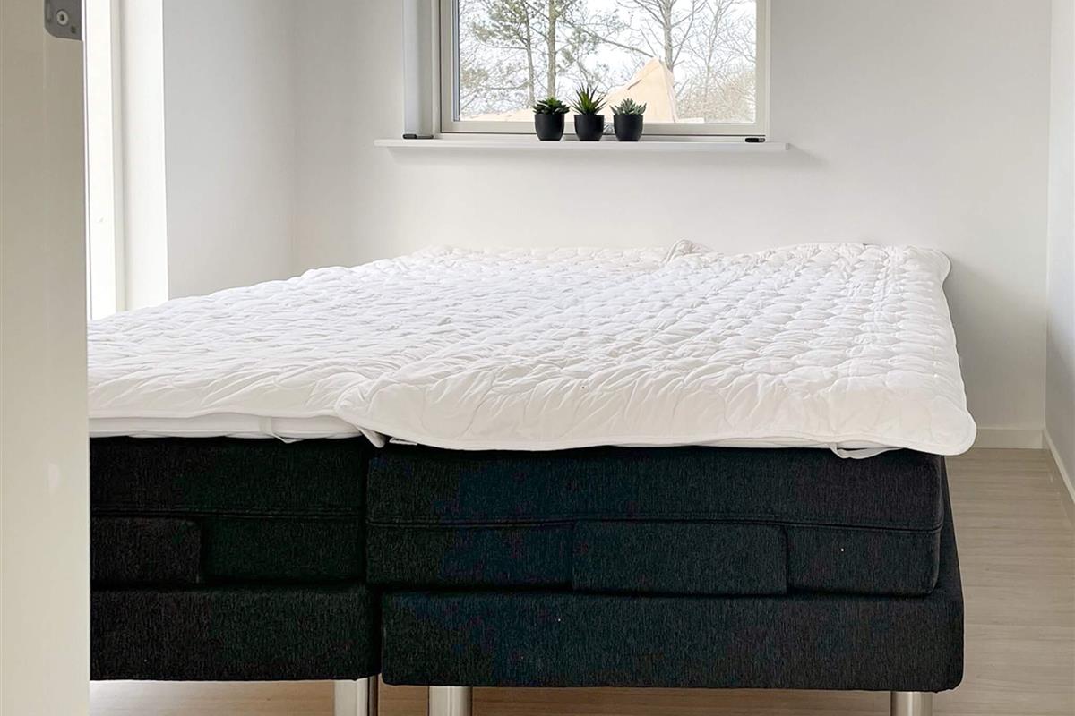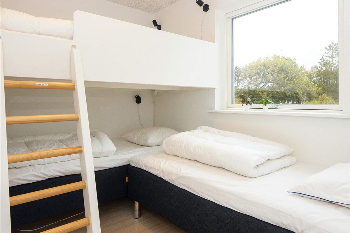 Das Ferienhaus bietet drei Schlafzimmer mit insgesamt 8 Schlafplätzen; eines mit höhenverstellbarem Doppelbett, das zweite mit zwei Einzelbetten, die man auch als Doppelbett zusammenstellen kann, das dritte mit zwei Einzelbetten sowie Etagenbett mit zwei oberen Kojen.