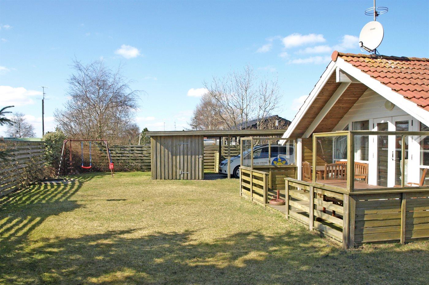 De vakantiewoning is gelegen op een 600 m² groot natuural grond. Afstand tot de zee 50 m. Dichtstbijzijnde winkel 1500 m. Bij de vakantiewoning hoort 20 m² terras. Daarnaast is er een 10 m² groot overdekt terras. Gereedschapsruimte. Schommel. Zandbak. Carport ter beschikking. Parkeerplaats bij het huis.