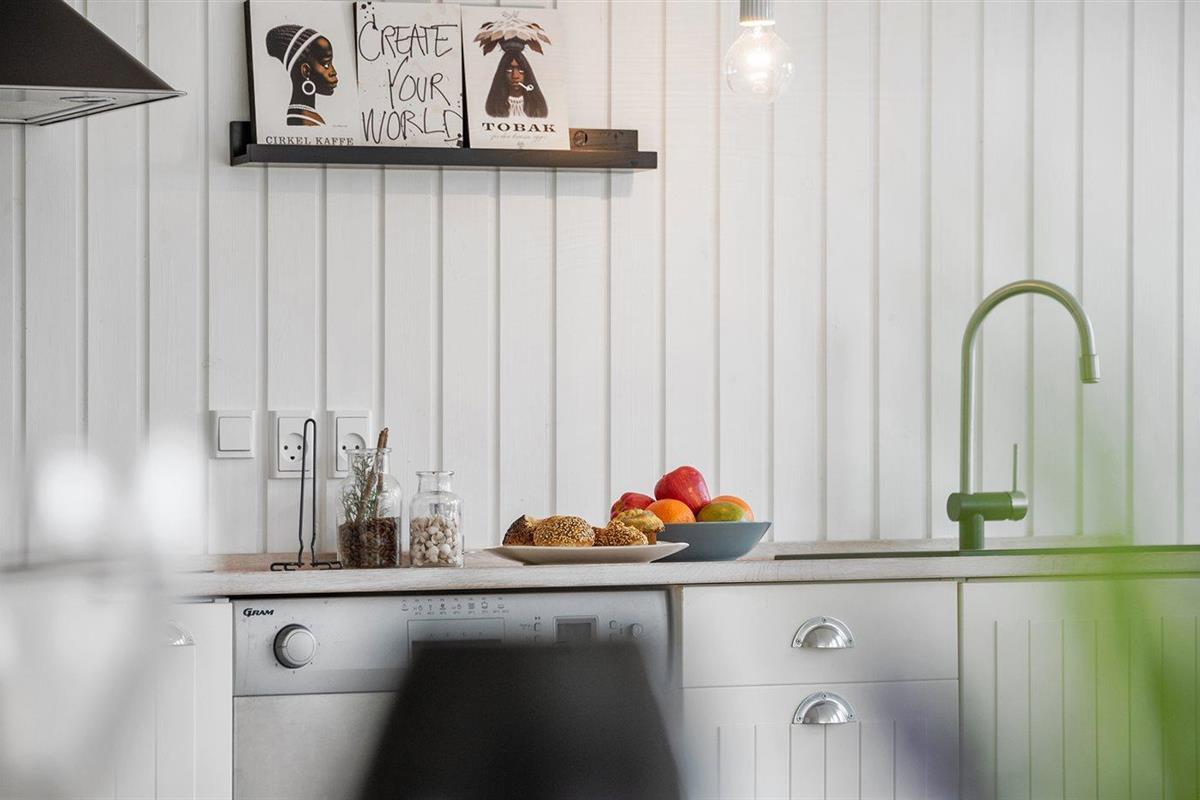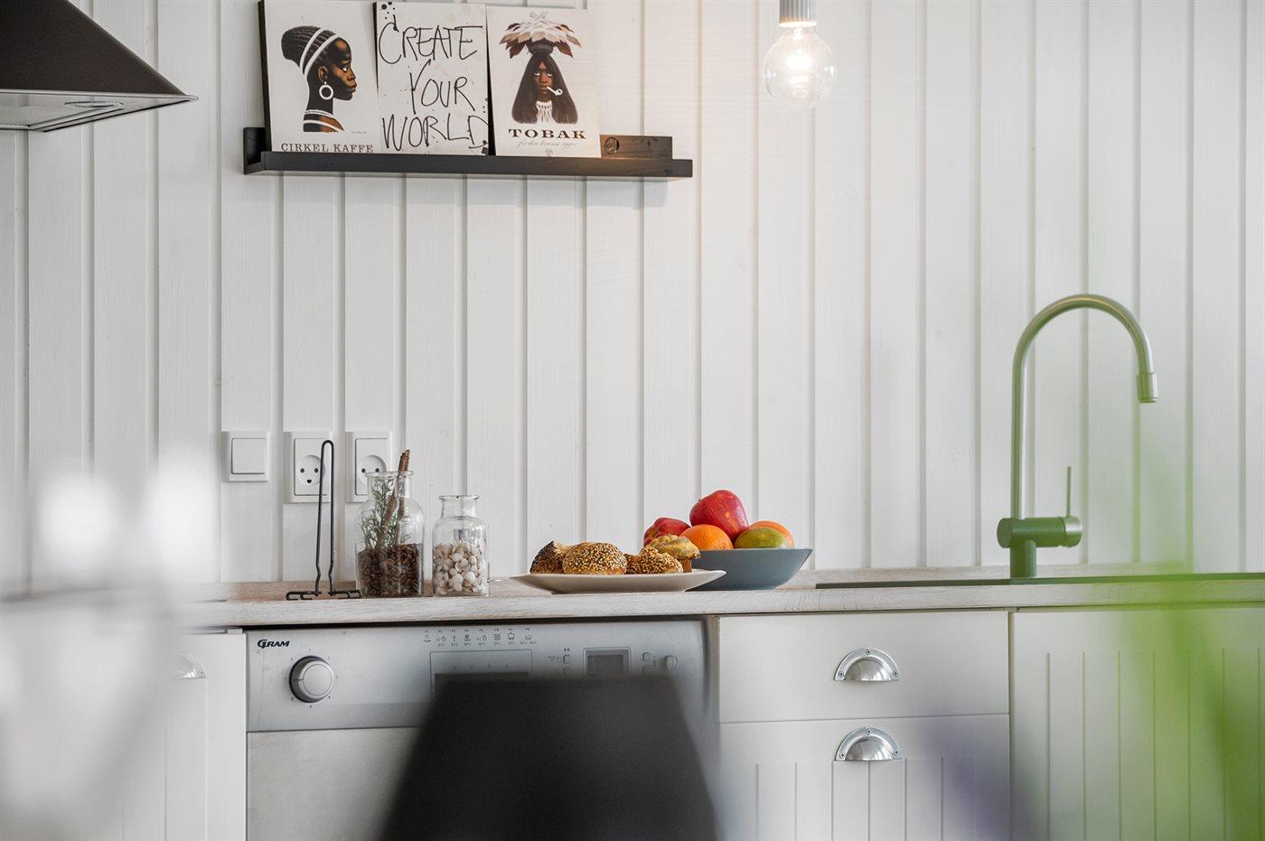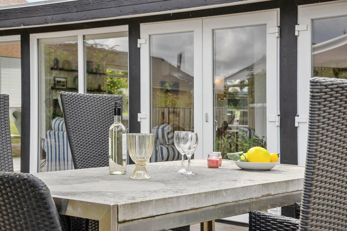 De vakantiewoning is gelegen op een 404 m² groot aangelegde tuin. Afstand tot de zee 100 m. Afstand tot de fjord 3500 m. Dichtstbijzijnde winkel 2100 m. Bij de vakantiewoning hoort 100 m² terras. Barbecue. Parkeerplaats bij het huis.
