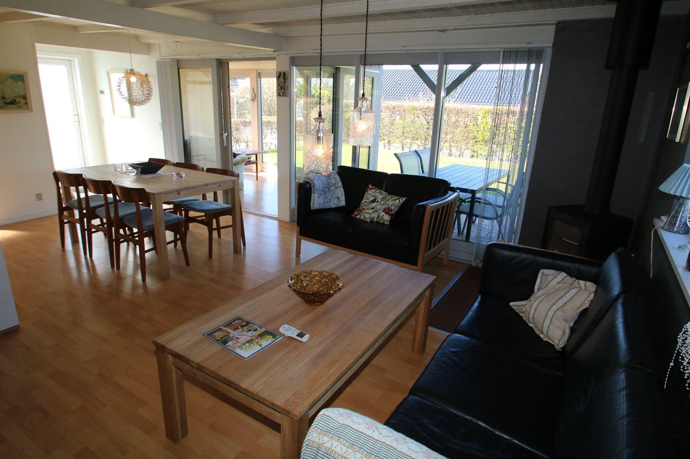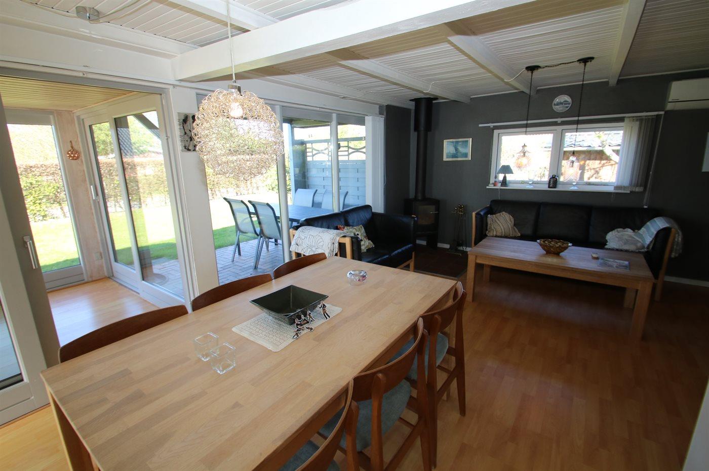 De vakantiewoning is gelegen op een 407 m² groot aangelegde tuin. Afstand tot de fjord 200 m. Dichtstbijzijnde winkel 3000 m. Bij de vakantiewoning hoort terras. Daarnaast is er een overdekt terras. Balkon. Barbecue. Parkeerplaats bij het huis.