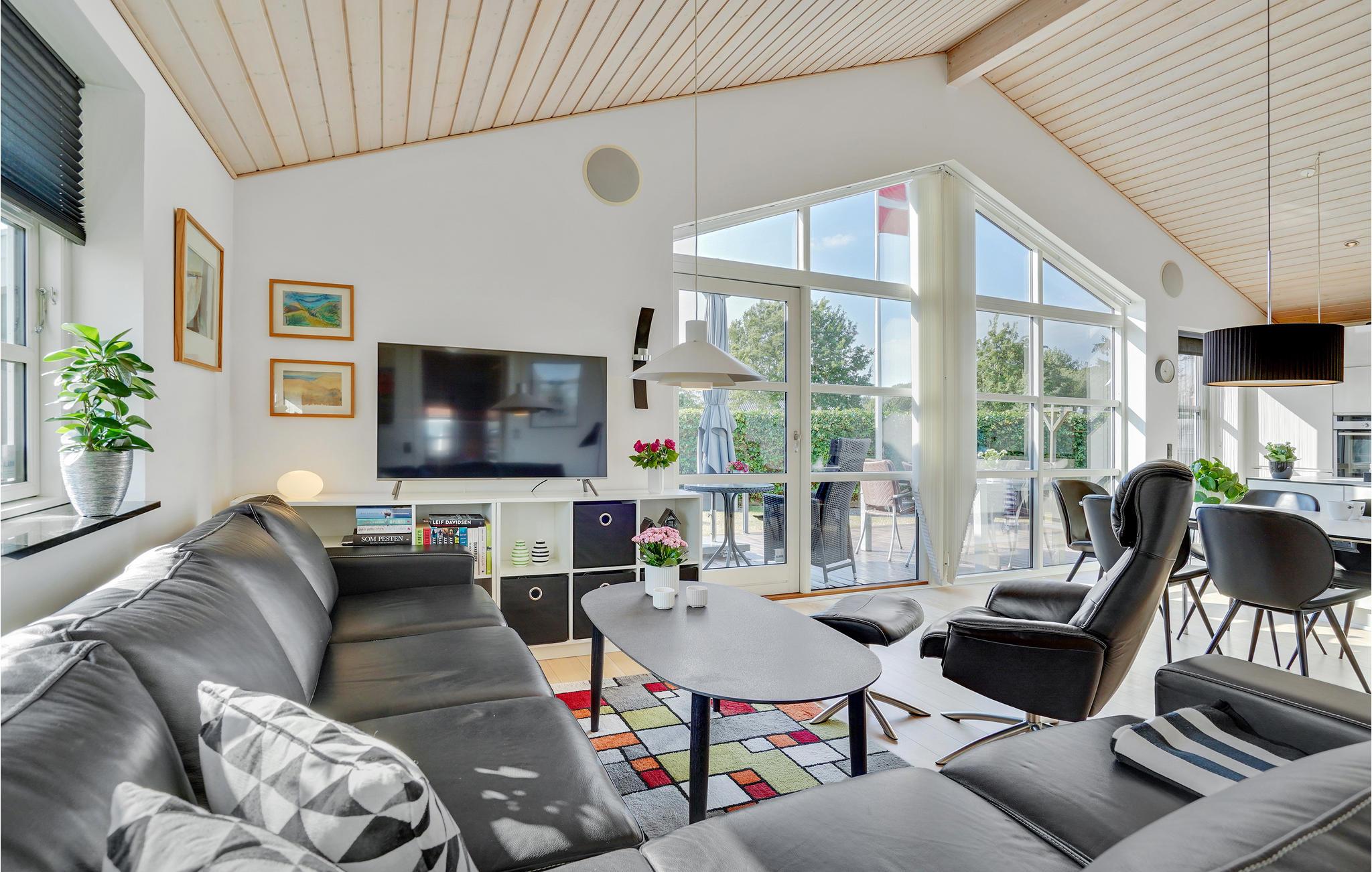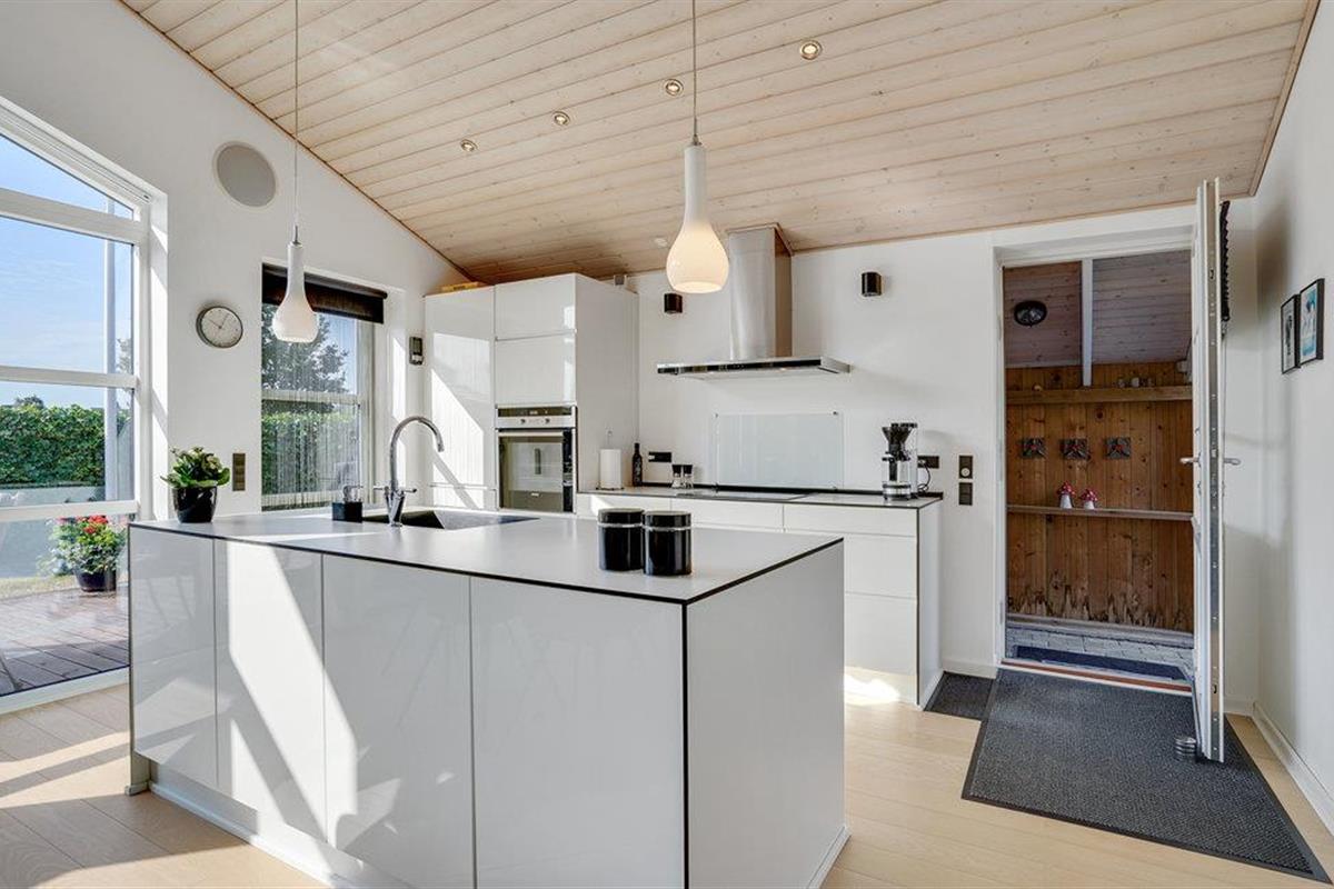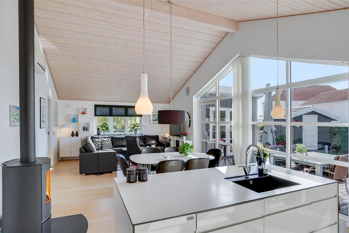 Modern vakantiehuis aan het zandstrand van Vemmingbund met veel licht en een knusse sfeer.