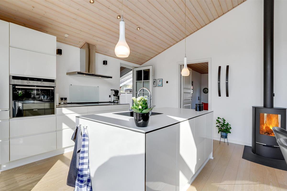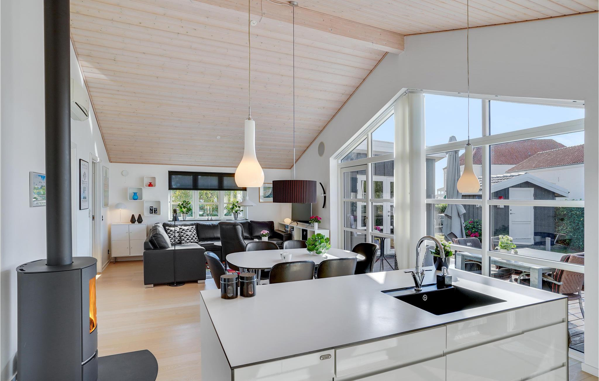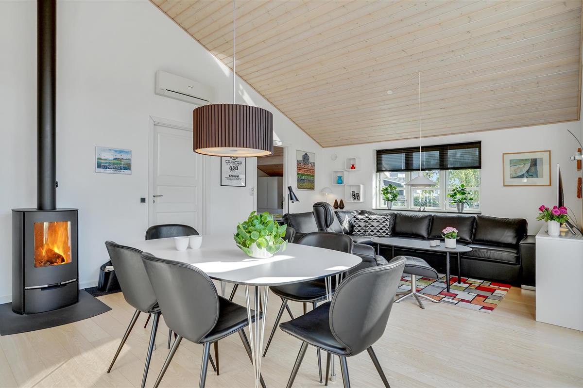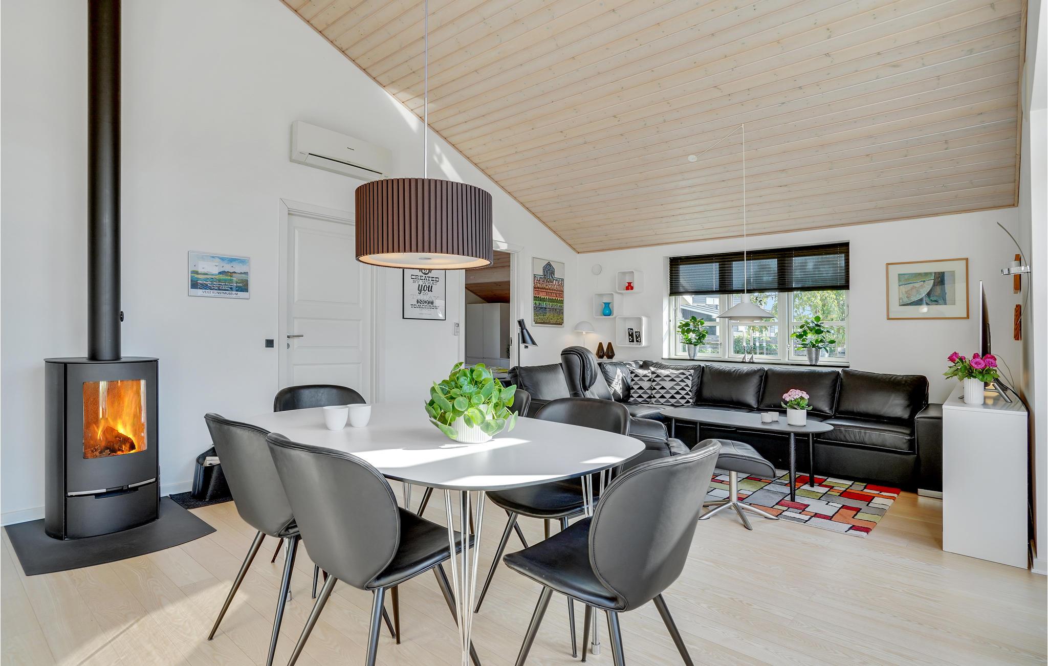 Kom hier aan en voel u meteen thuis. De grote woonkamer, die de keuken, eet- en woonkamer combineert, is de natuurlijke ontmoetingsplaats voor uw familie. De grote ramen laten veel licht binnen, wat bijdraagt aan de speciale feel-good sfeer. Geniet 's avonds van een knapperend haardvuur en kruip samen op de bank om een spannende film te bekijken. Het mooie terras naast de kamer nodigt uit tot samen barbecueën. Als het wat frisser wordt of het weer niet meewerkt, kunt u zich terugtrekken in de aangrenzende kamer met comfortabele loungemeubelen.
