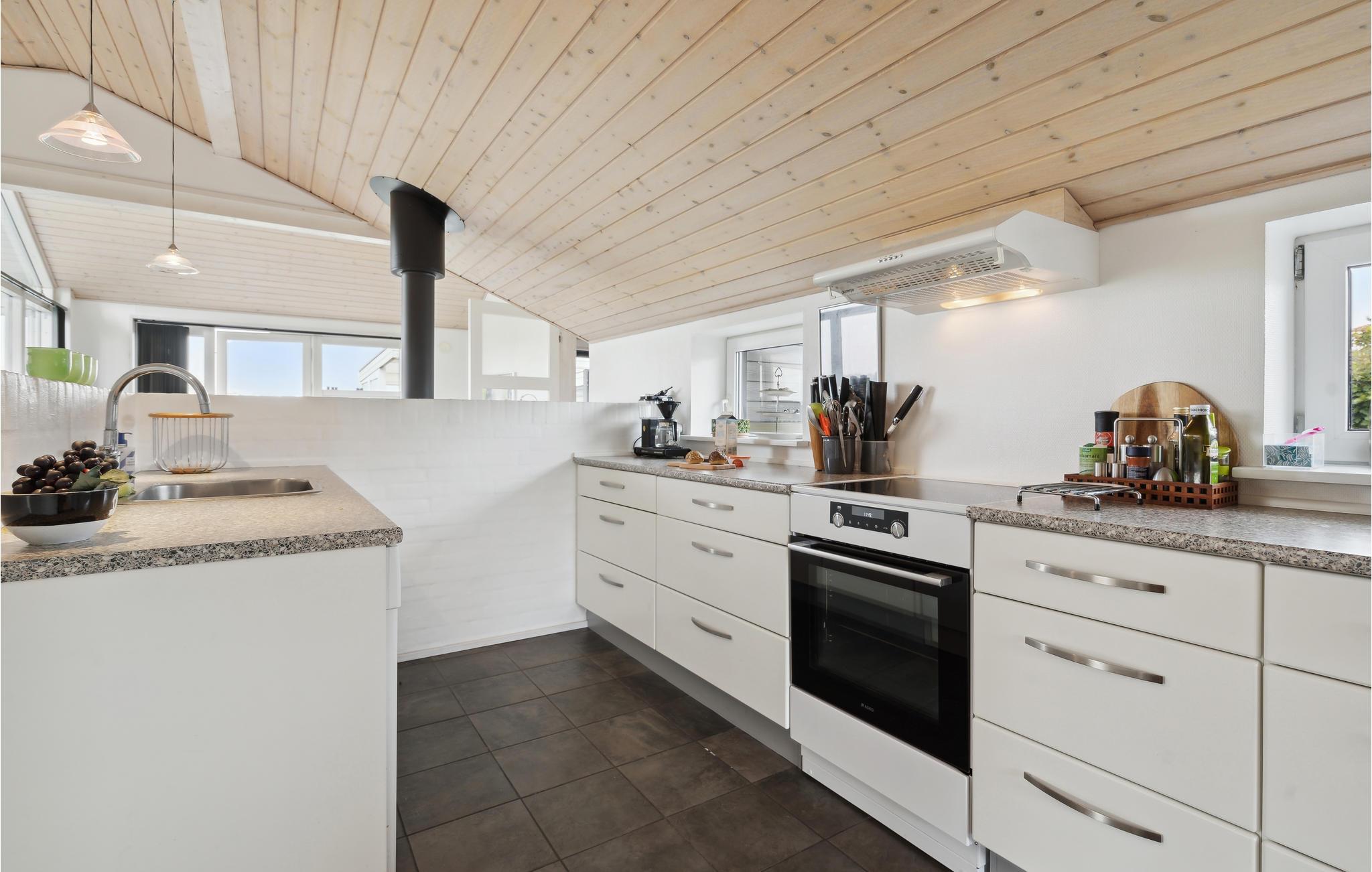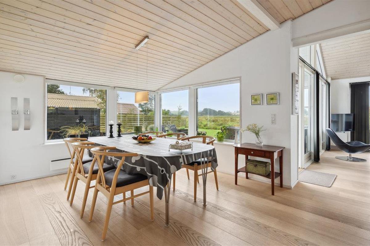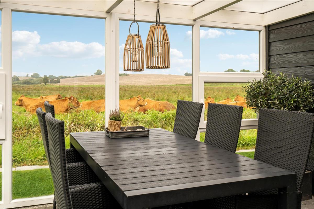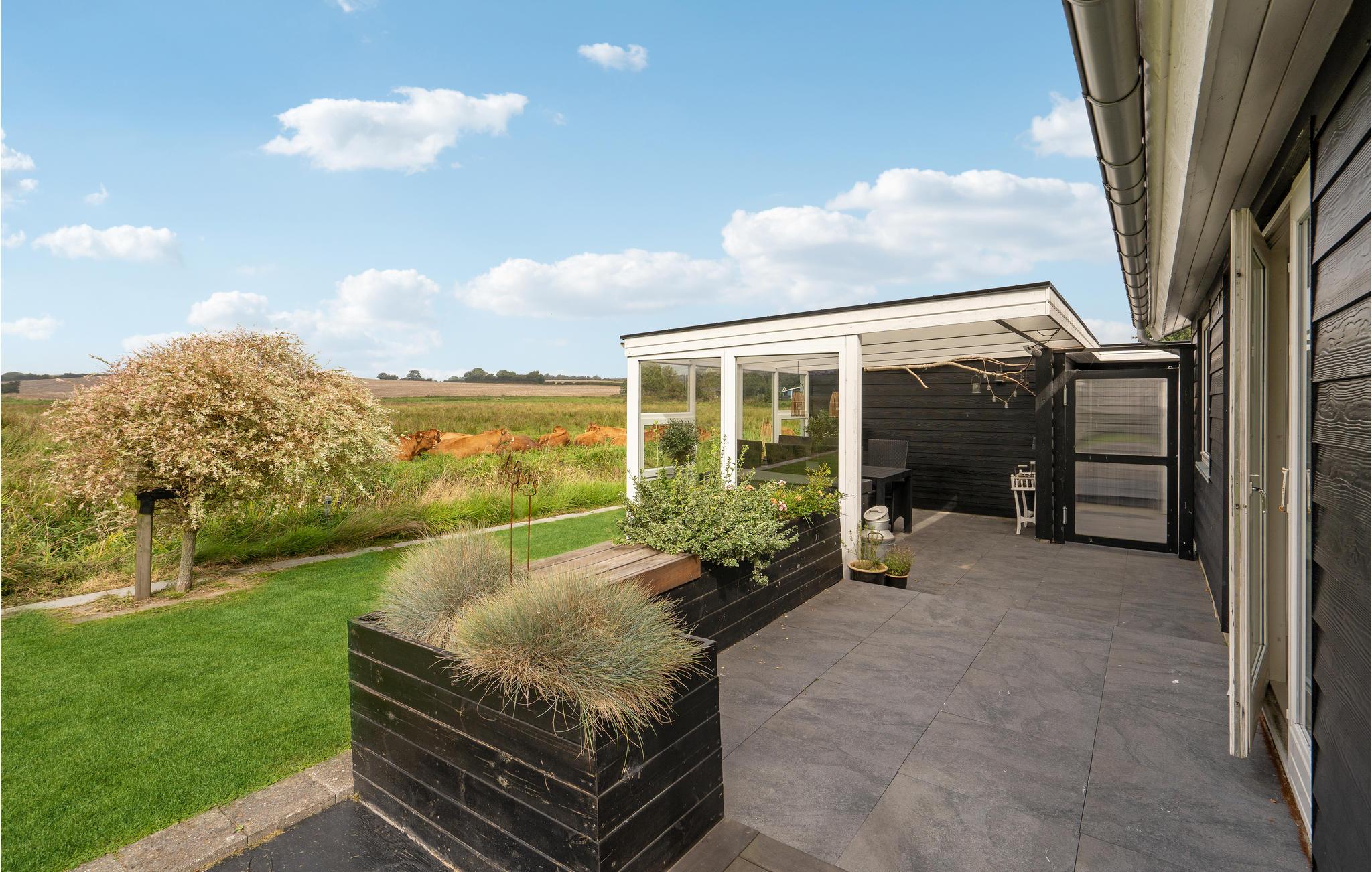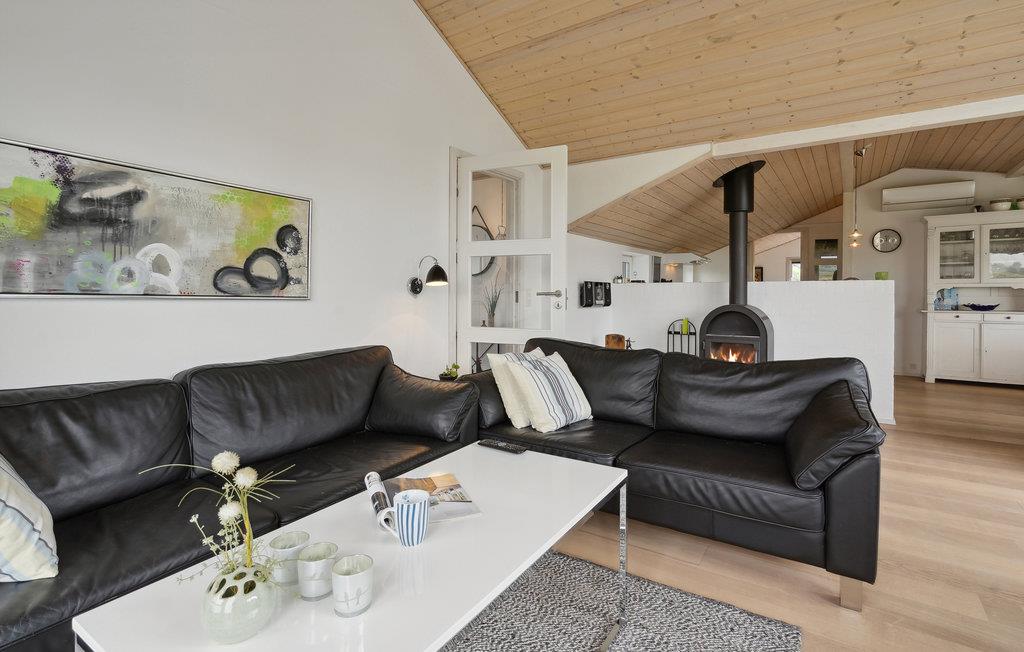 Het comfortabele huis verwelkomt je op een idyllische locatie omgeven door weilanden en velden, van hieruit bereik je een gezinsvriendelijk strand in slechts een paar minuten. Maak het jezelf en je geliefden comfortabel in de lichte kamers met gezellig modern meubilair. Grote panoramische ramen laten veel licht binnen en bieden een prachtig uitzicht. Geniet samen van maaltijden met uitzicht op het landschap en maak het jezelf 's avonds comfortabel bij de rustig ronkende open haard.