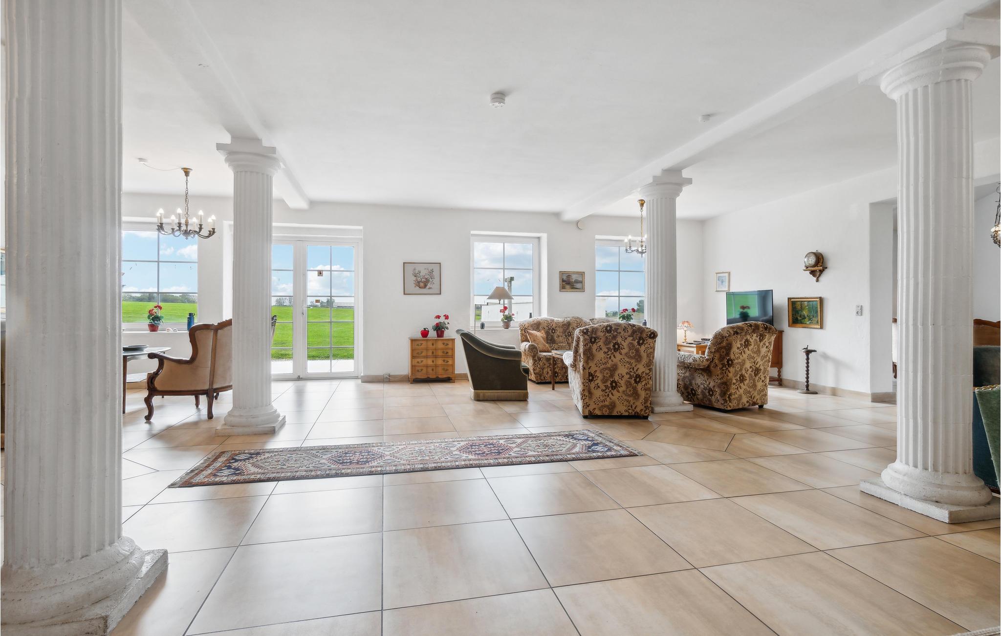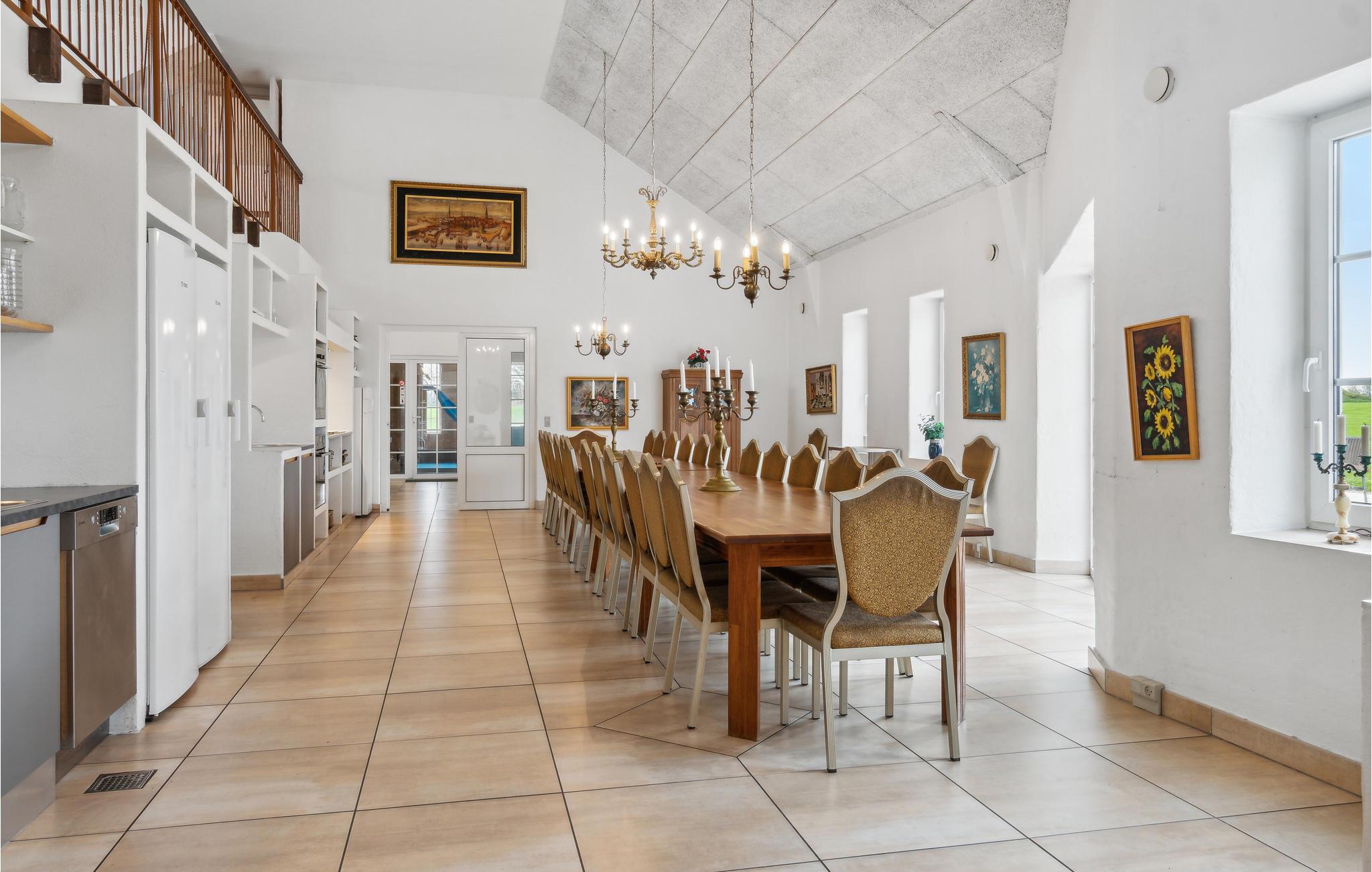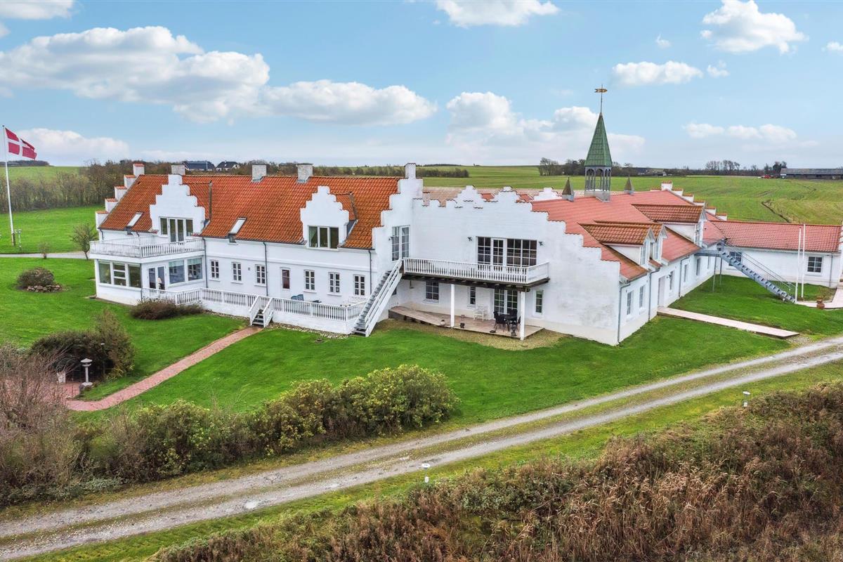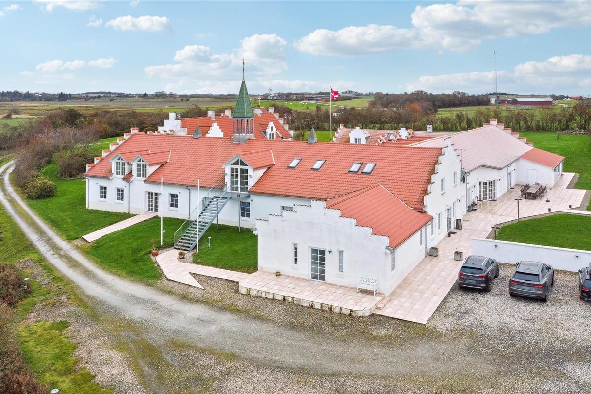 In de indrukwekkende natuur van Noord-Jutland, tussen de Noordzee en het Limfjord, ligt deze fantastische vierkante boerderij van 1000 vierkante meter in kloosterstijl met een trapgevel en torenspits, waarvan de interessante geschiedenis teruggaat tot 1604. De wens van de gasten naar luxe en comfort werd op een bijzondere manier vervuld tijdens de volledige renovatie van het pand, maar de renovatie werd met zorg uitgevoerd en de historische sfeer werd behouden.