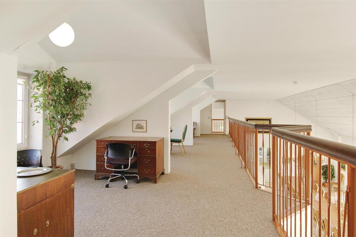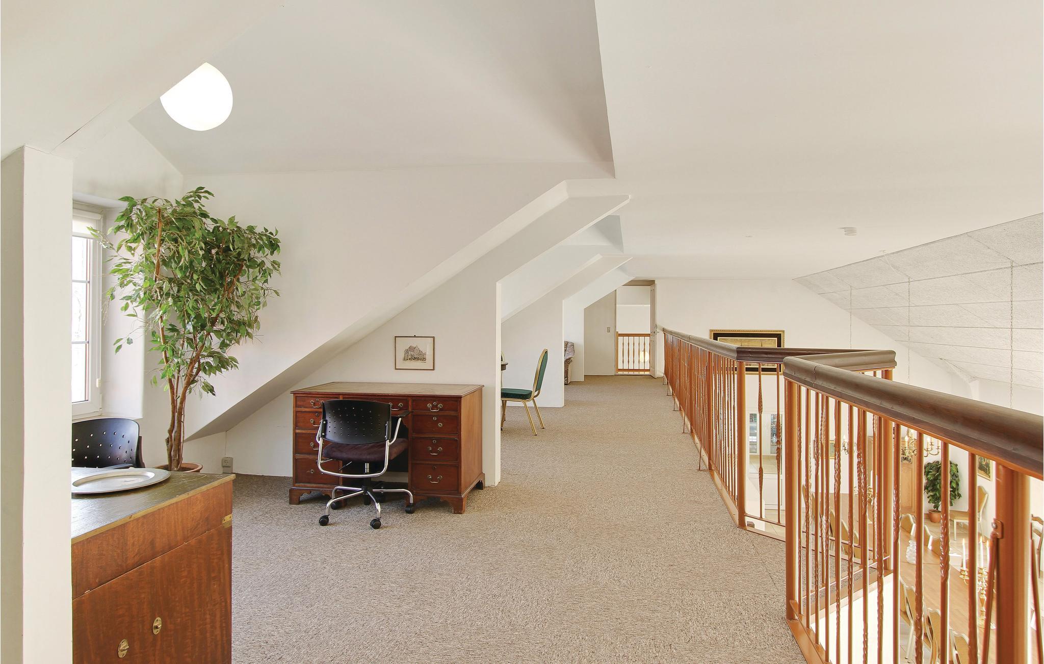 Alle kamers in het huis, op één na, bevinden zich op hetzelfde niveau. Eén zitkamer bevindt zich boven het kook- en eetgedeelte, waar een plafond is geïnstalleerd, en één kamer heeft een open plafond tot in de nok.