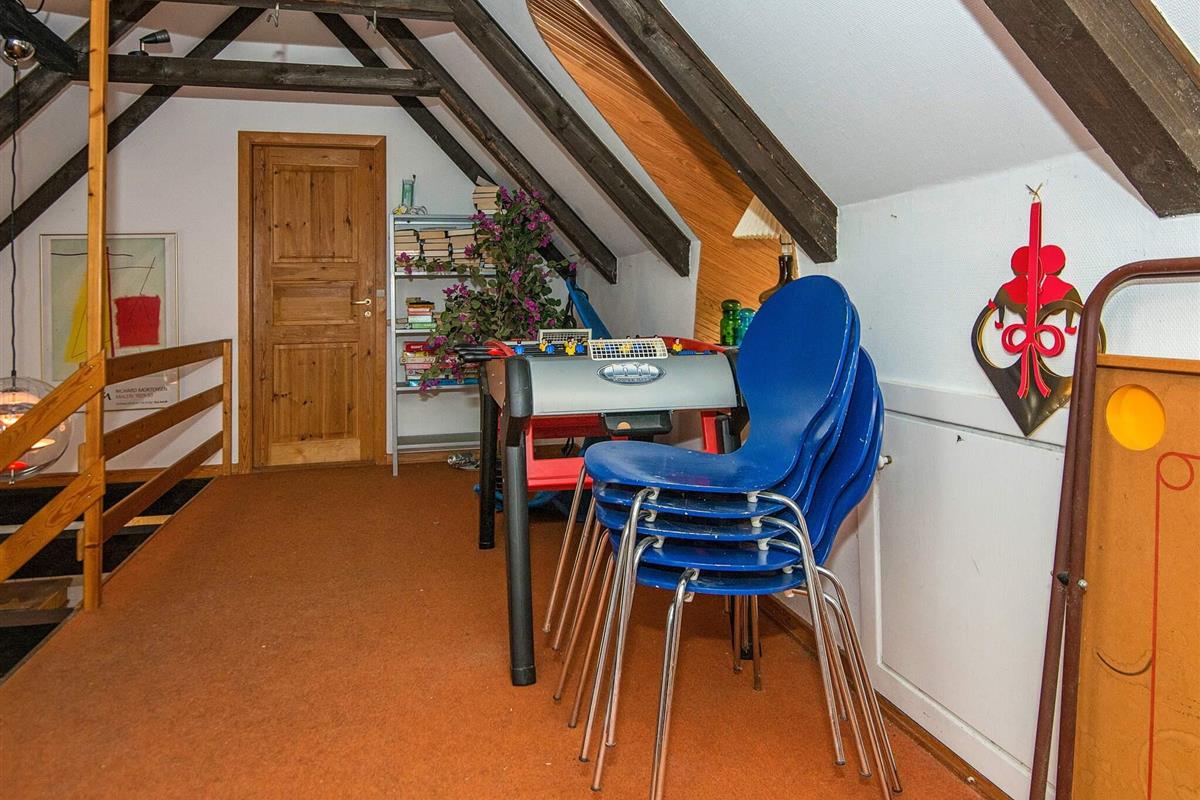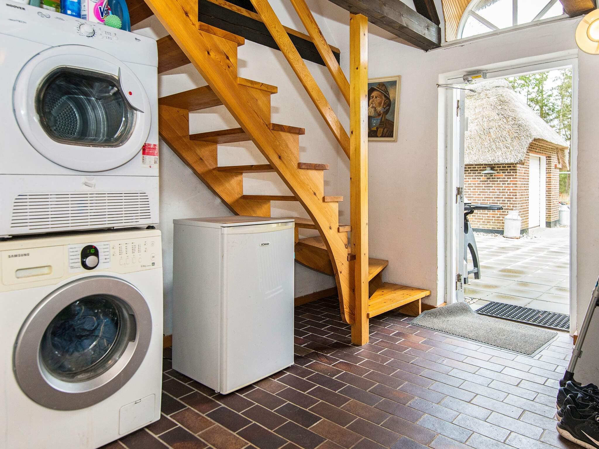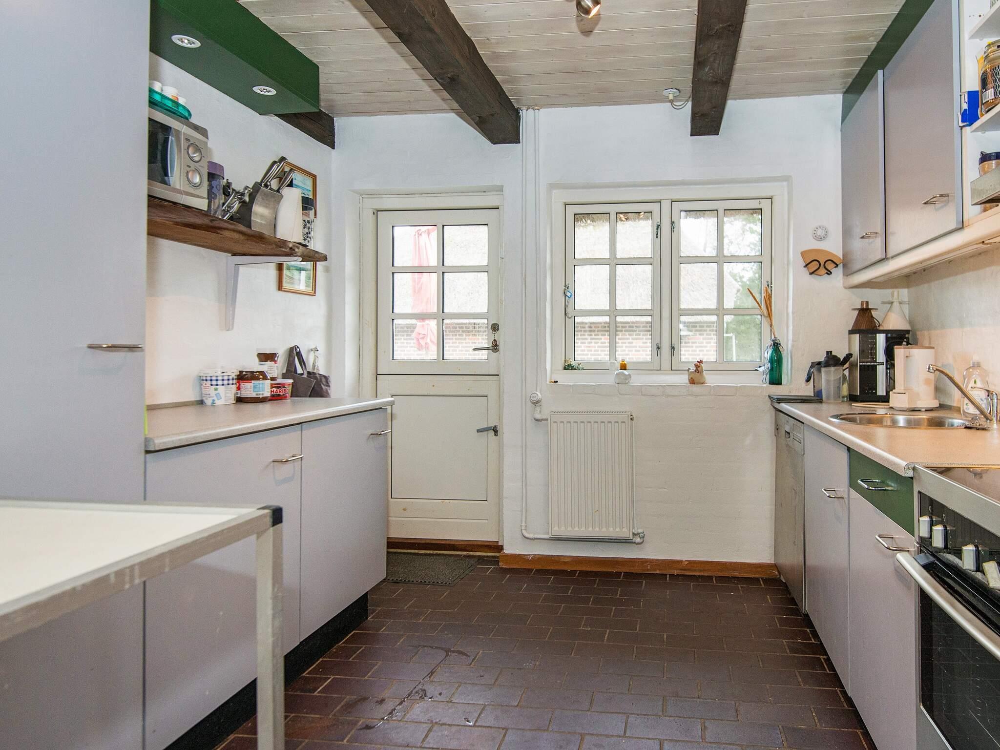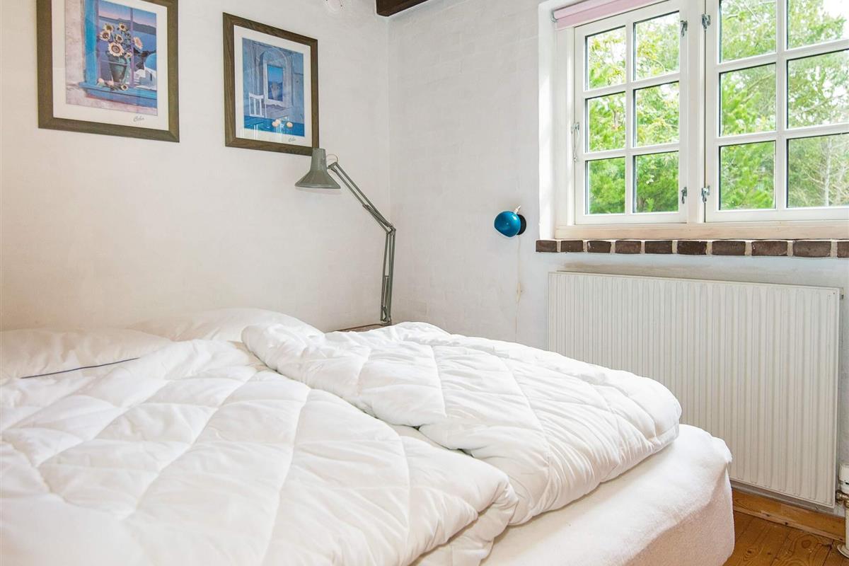 Geräumiges, reetgedecktes Ferienhaus mit Sauna im Bad sowie zwei Wohnebenen. Liegt attraktiv, im Waldgebiet von Vester Husby, auf einem 5.000 m2 großen Naturgrundstück mit Schaukel und Fußballtor für die Kinder.
