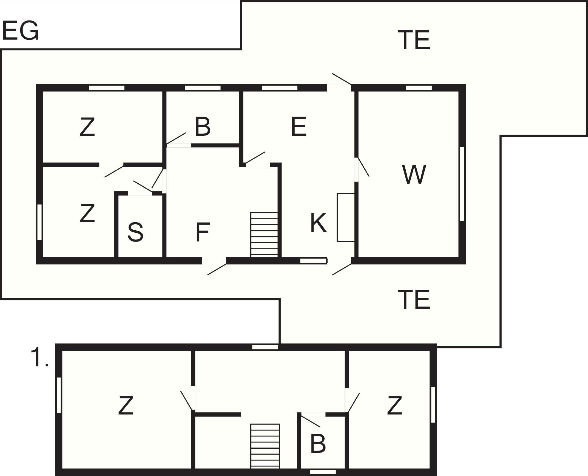 4 Schlafz.: (1DB)+(1DB)+(1DB)+(1DB), Kinderbett